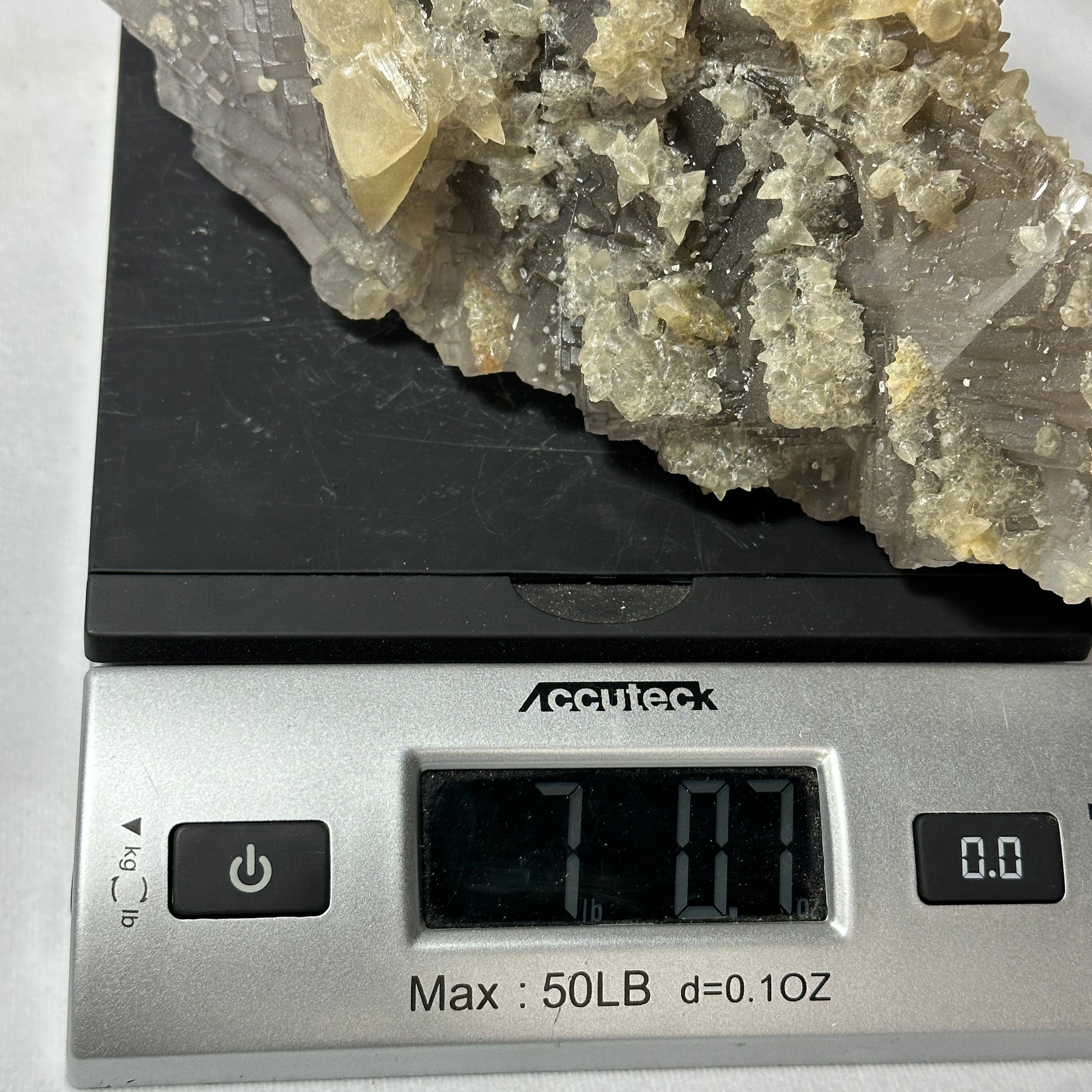 The gorgeous purple-grey cubes and stunning dogtooth calcite on this Fluorite specimen is amazing!