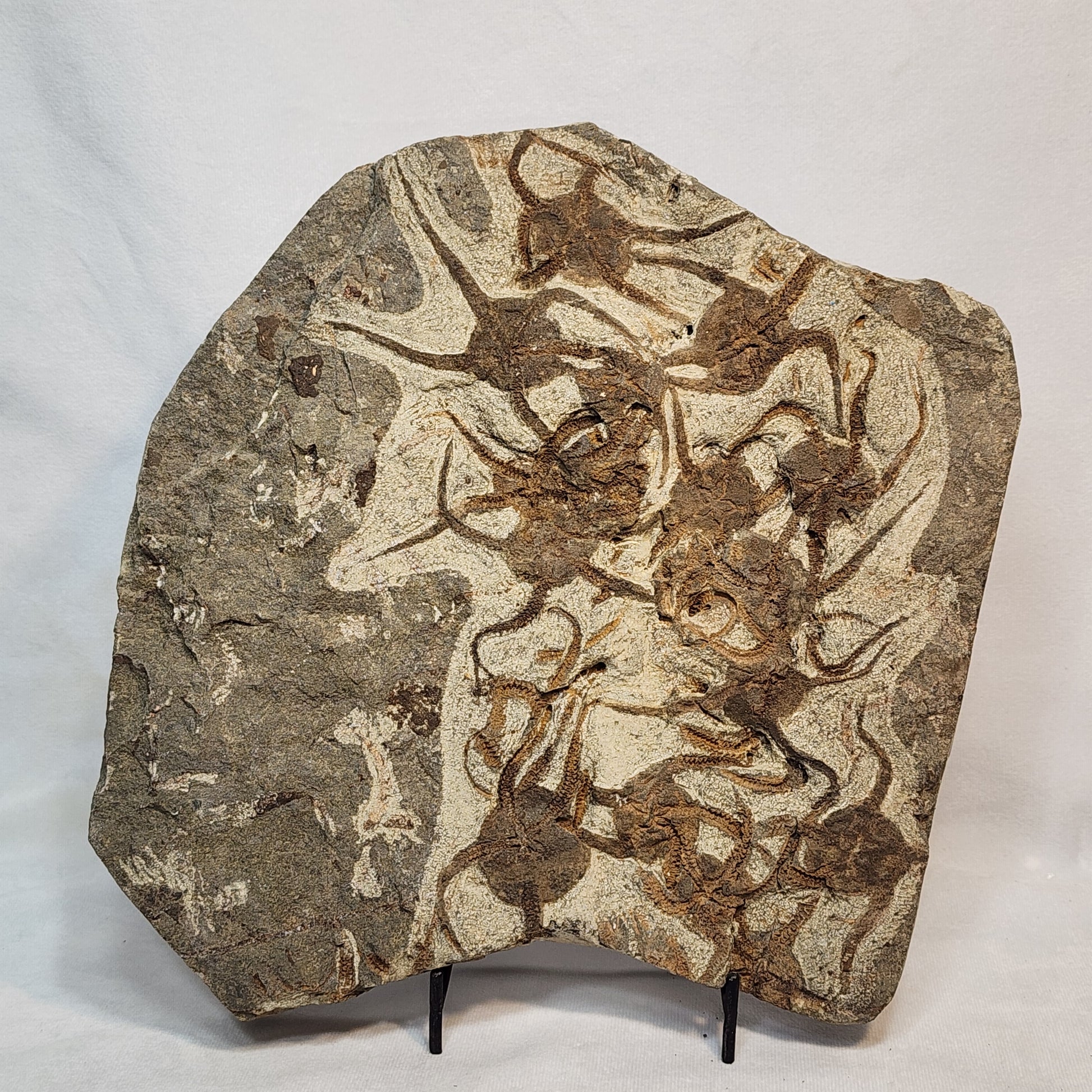 So many Brittle stars on this plate! These fossil plates make a unique collection piece and a wonderful conversation starter! Pair with our Moss Agate Spheres and Anetoceras Heteromorph Ammonite for an extra eye-catching display!