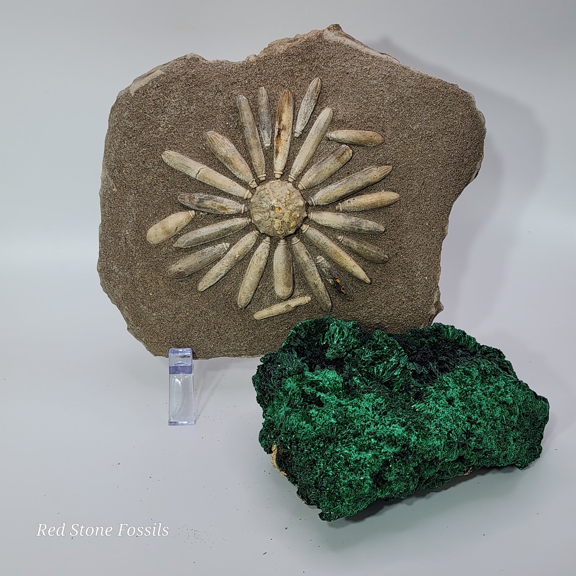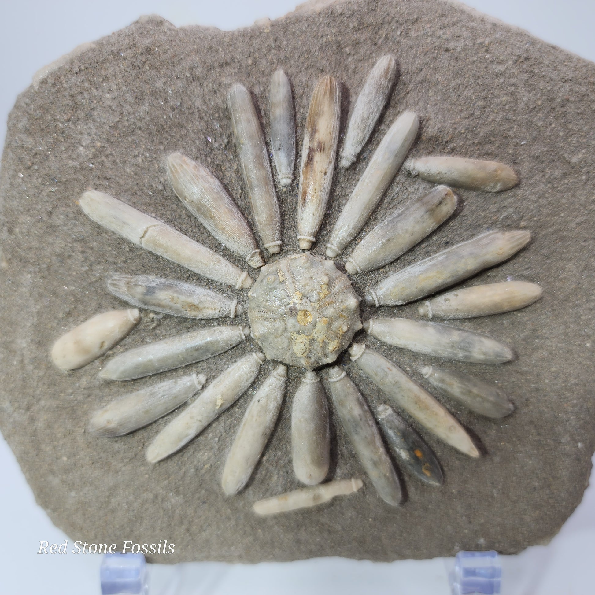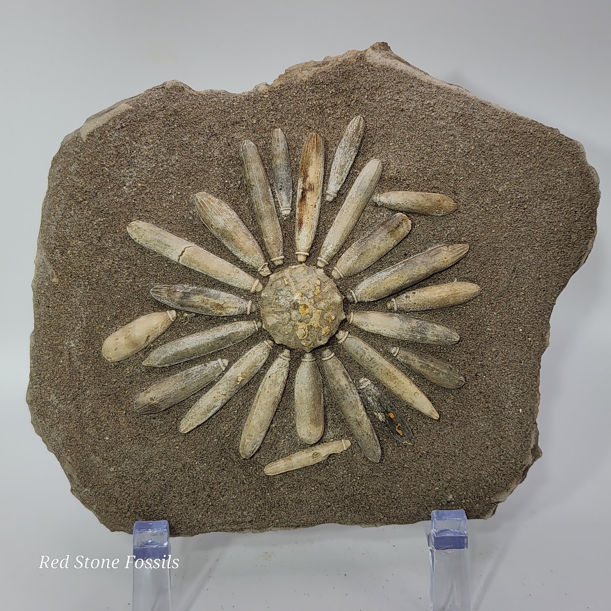 This is a restored Sea Urchin from Morocco. All of the spines have been prepared individually on this matrix in a lifelike position. These urchins are always composites because the spines break off very quickly after they die.