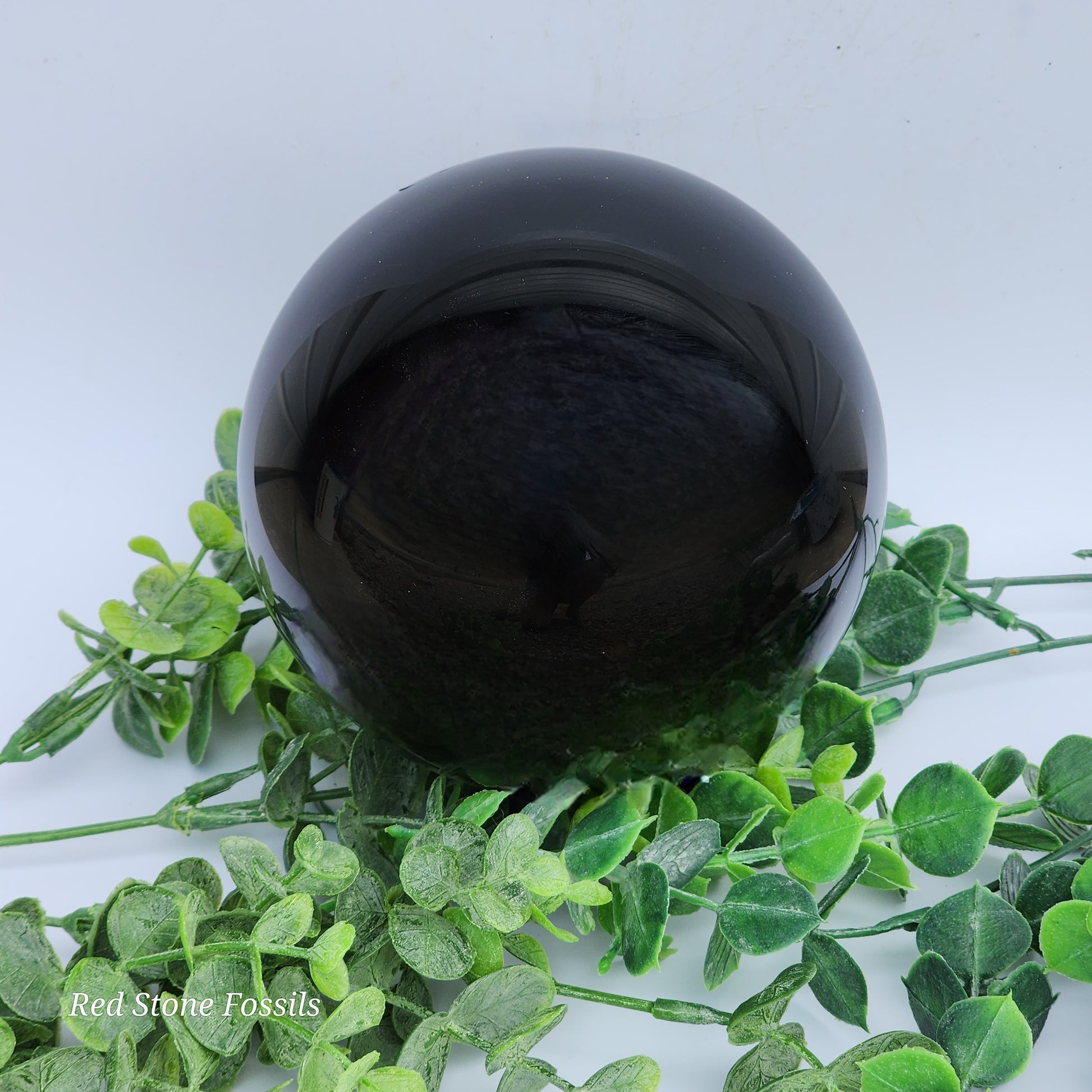 This is a beautiful Obsidian Sphere from Mexico. This obsidian specimen has been polished to a mirror finish with that perfect shine! Pair our Obsidian Spheres with our white Cave clusters and Crystal Quartz for a stunning pop of black and white adornment!