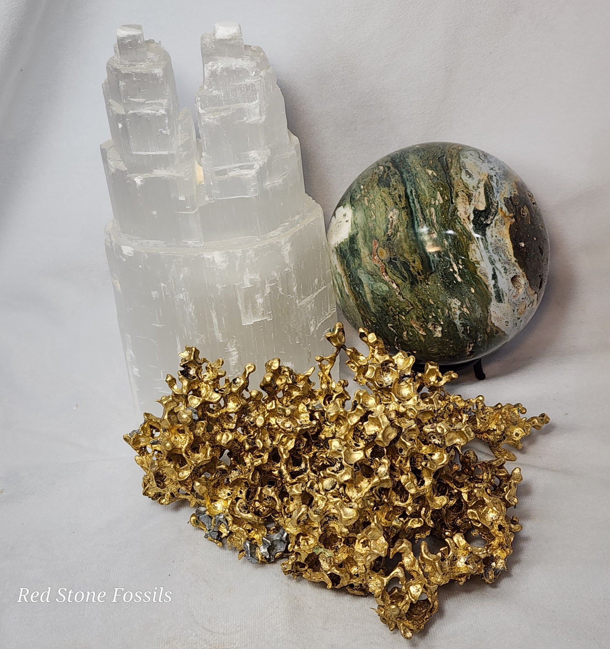 It looks stunning paired with our Selenite Towers or Ocean Jasper Sphere. It will look great displayed on any shelf! Great for art enthusiasts!