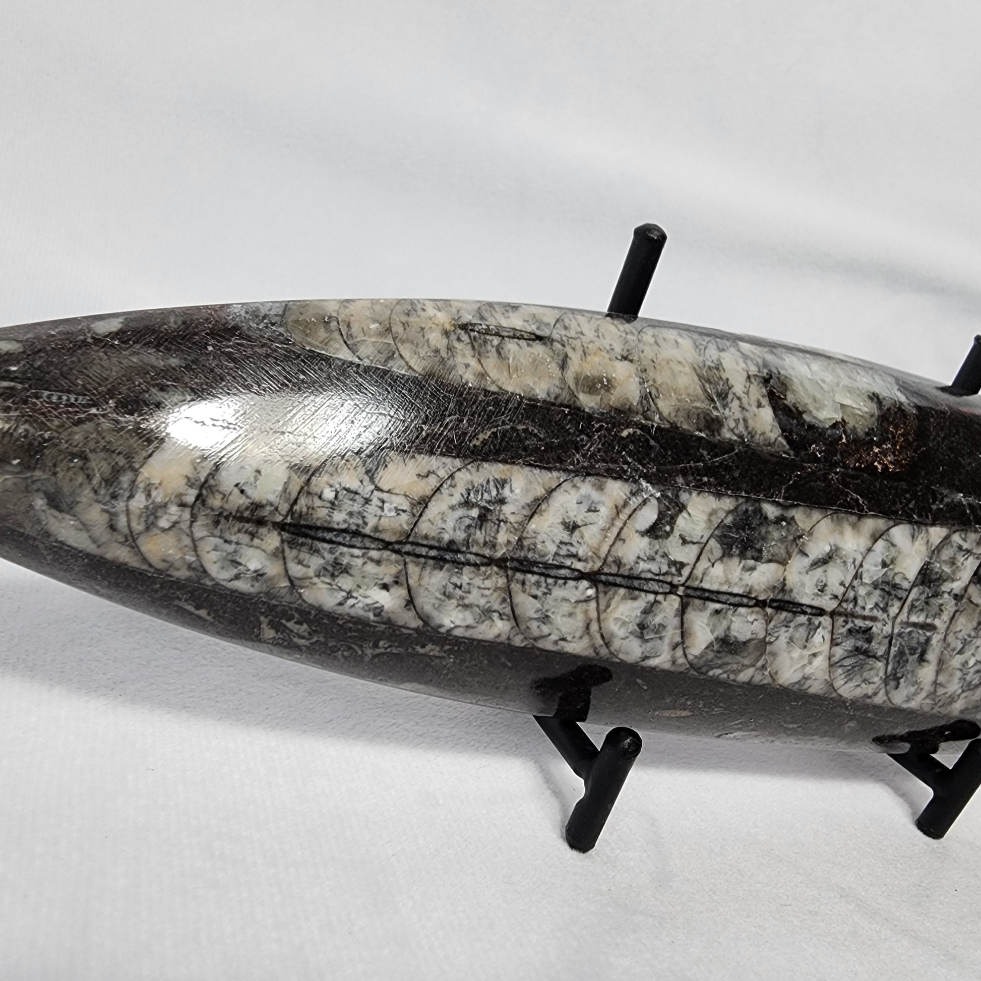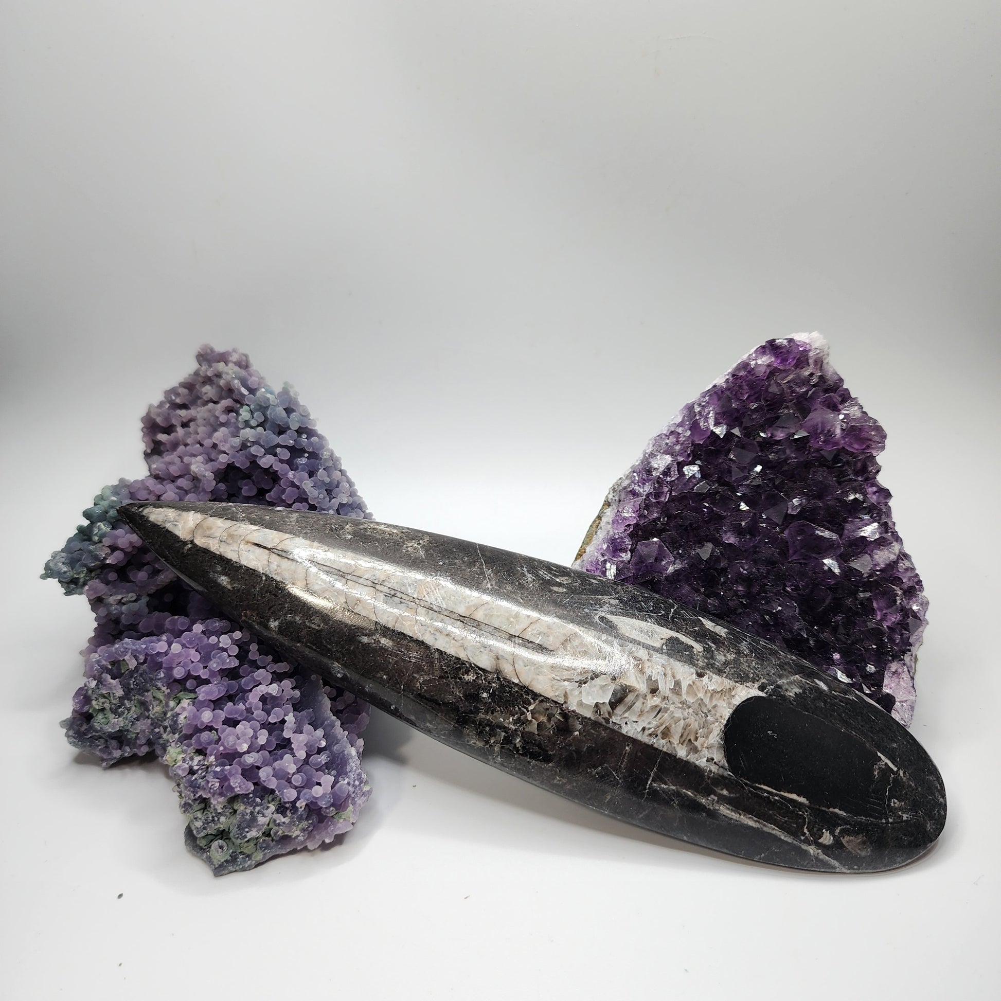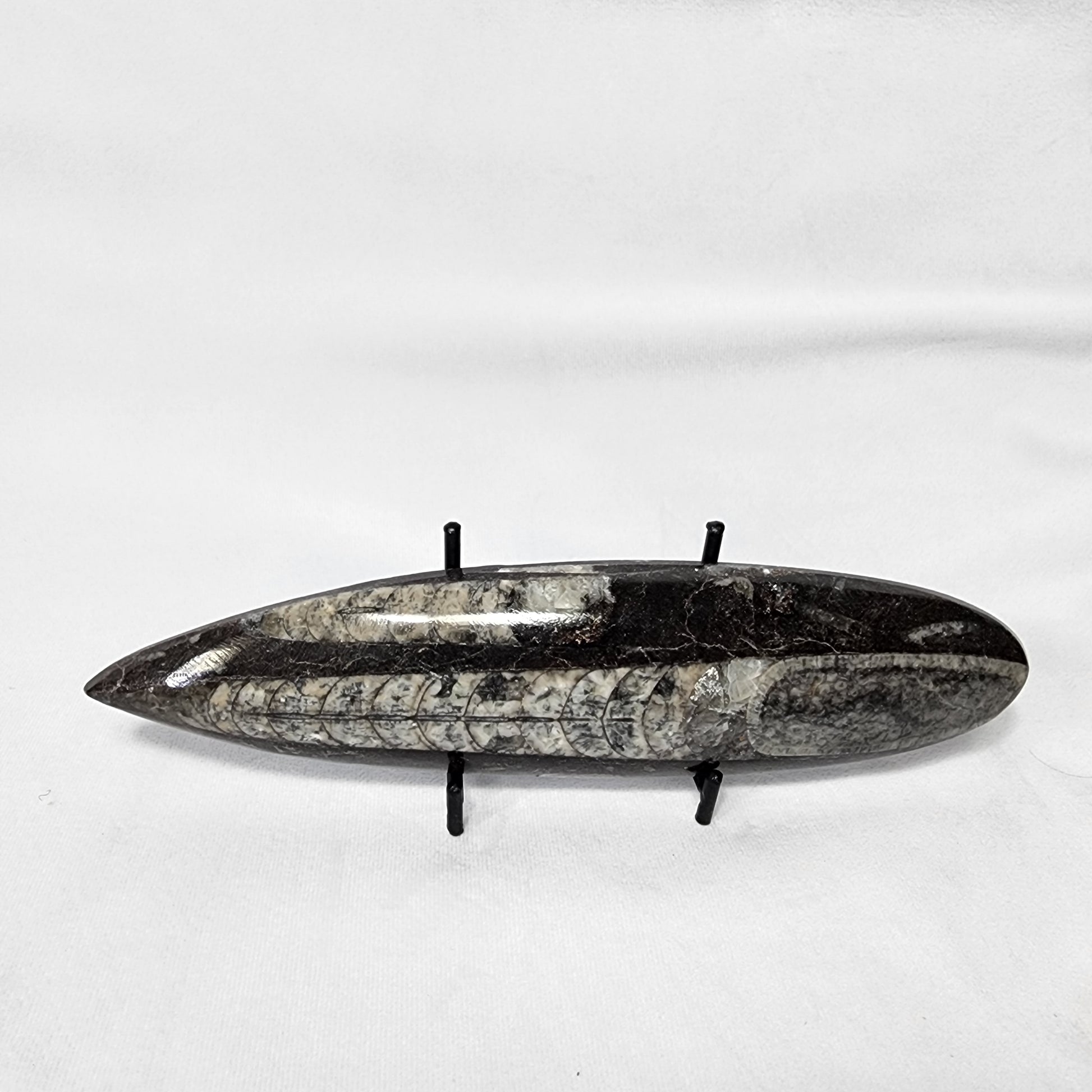 These Orthoceras single plates are the perfect addition to any fossil collection! Each one has great detail on the front, polished side, and the back! They pair nicely with our Grape Agate and Amethyst as well.