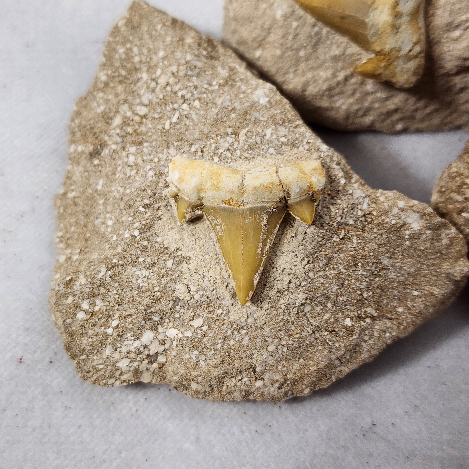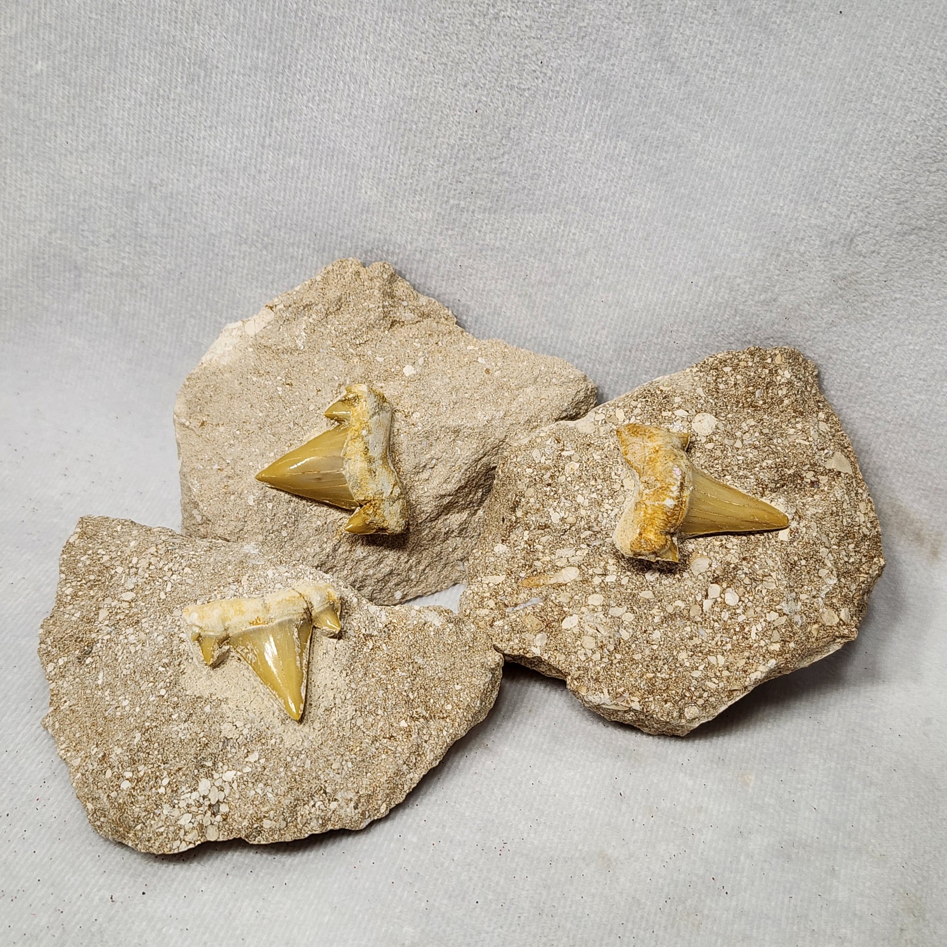 Cretolamna shark teeth in matrix! These teeth are perfect for kids and kids at heart! Each tooth is approximately 1", but each as unique as the next!