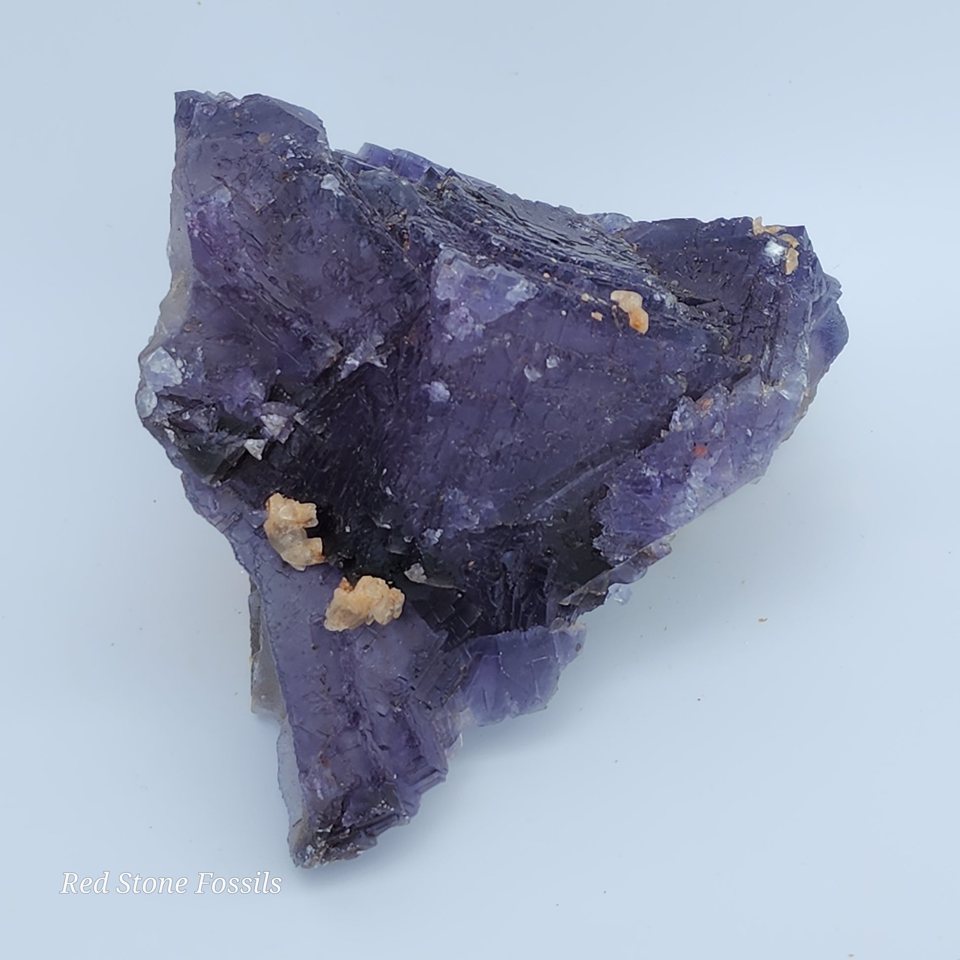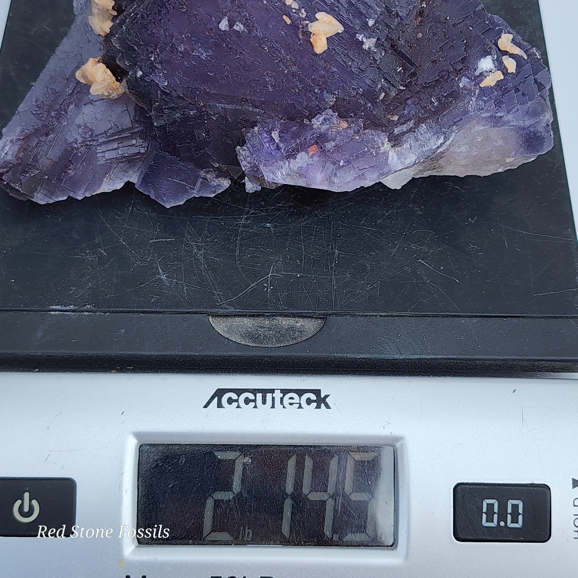 This Fluorite specimen is stunning! It has very detailed cubes that show off several shades of purple with small calcite pieces sprinkling it!