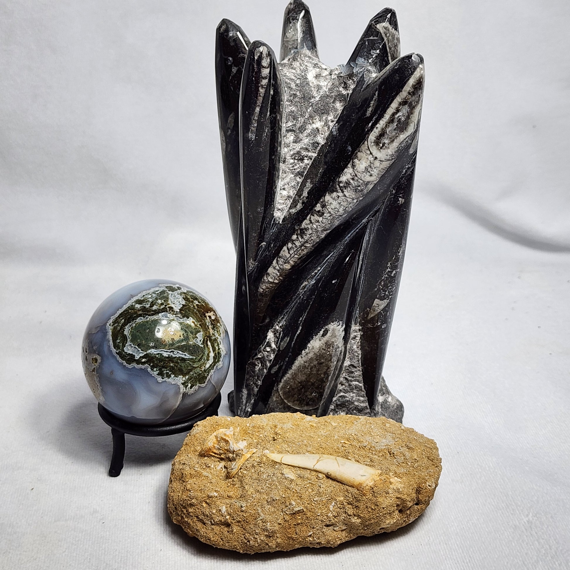 This specimen would make a great gift for that fossil lover in your life or to keep for yourself! Pair this with our Orthoceras Towers and Moss Agate Spheres for a display that will keep the conversation going.