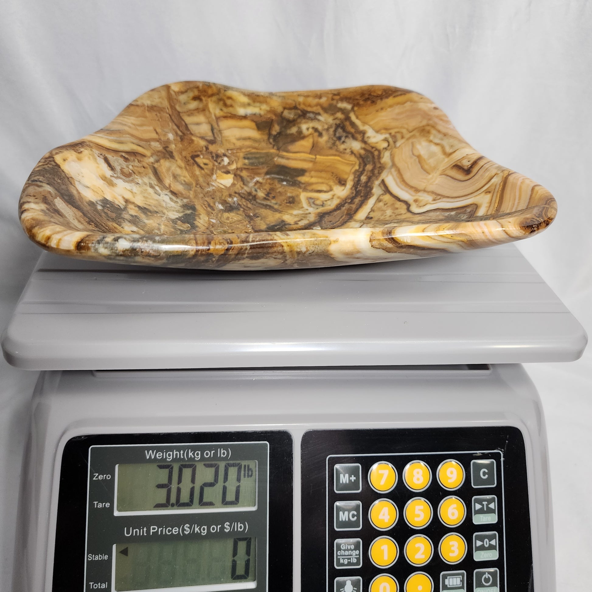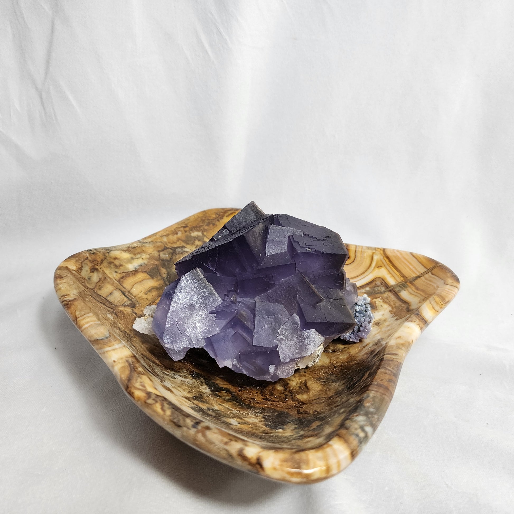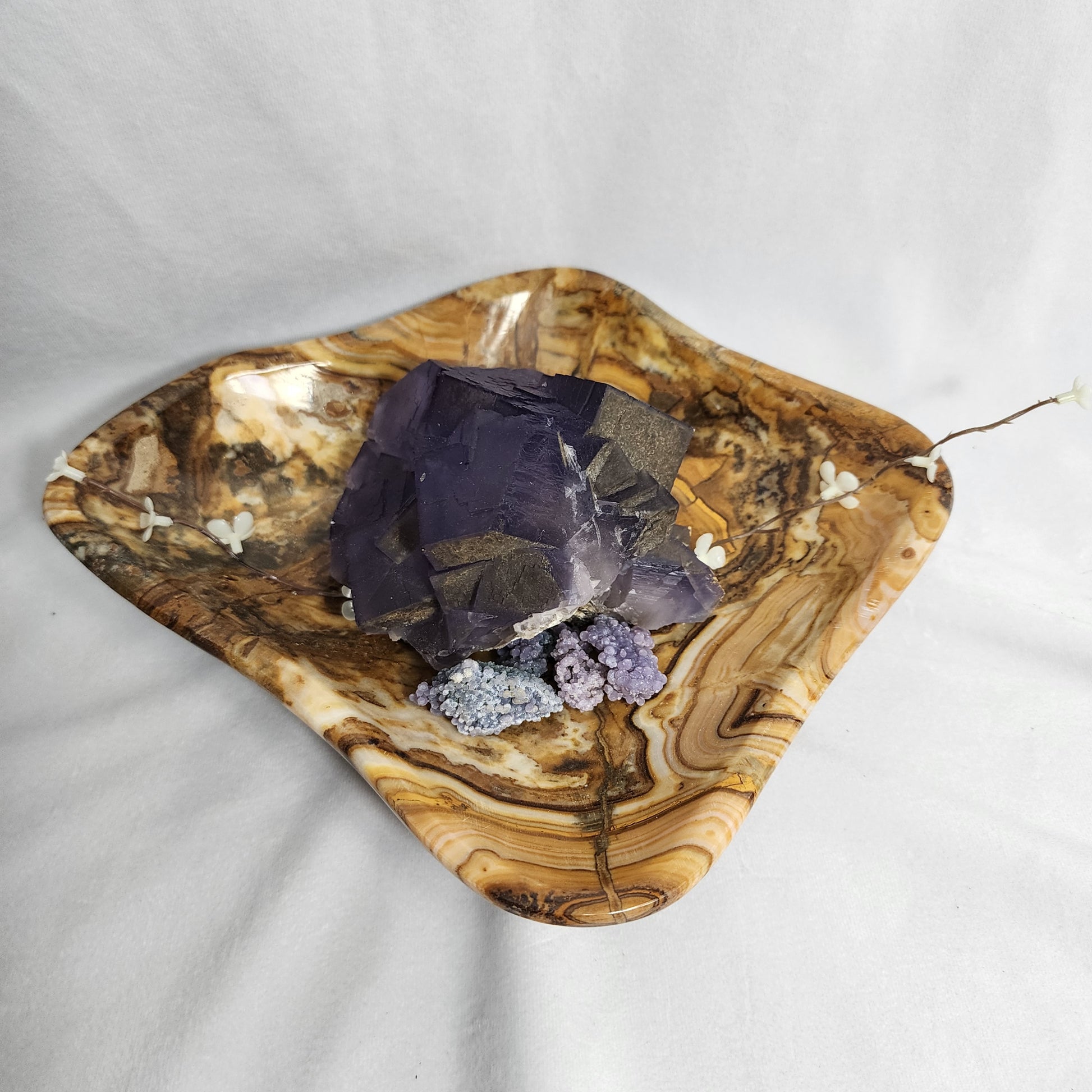 This particular piece has a gorgeous light and dark brown pattern filling the bowl. Perfect to pair with our purple Fluorite for a beautiful piece of table décor!