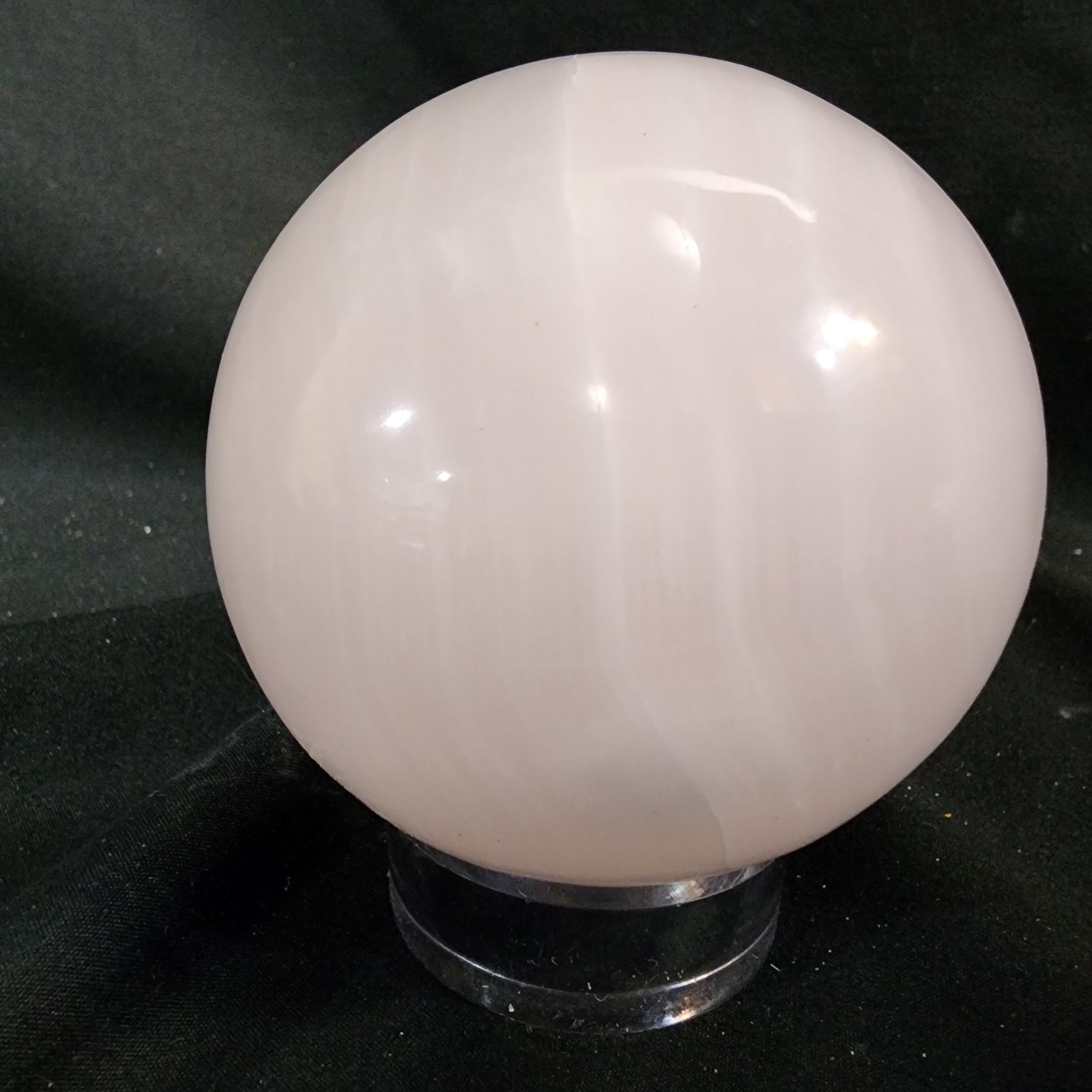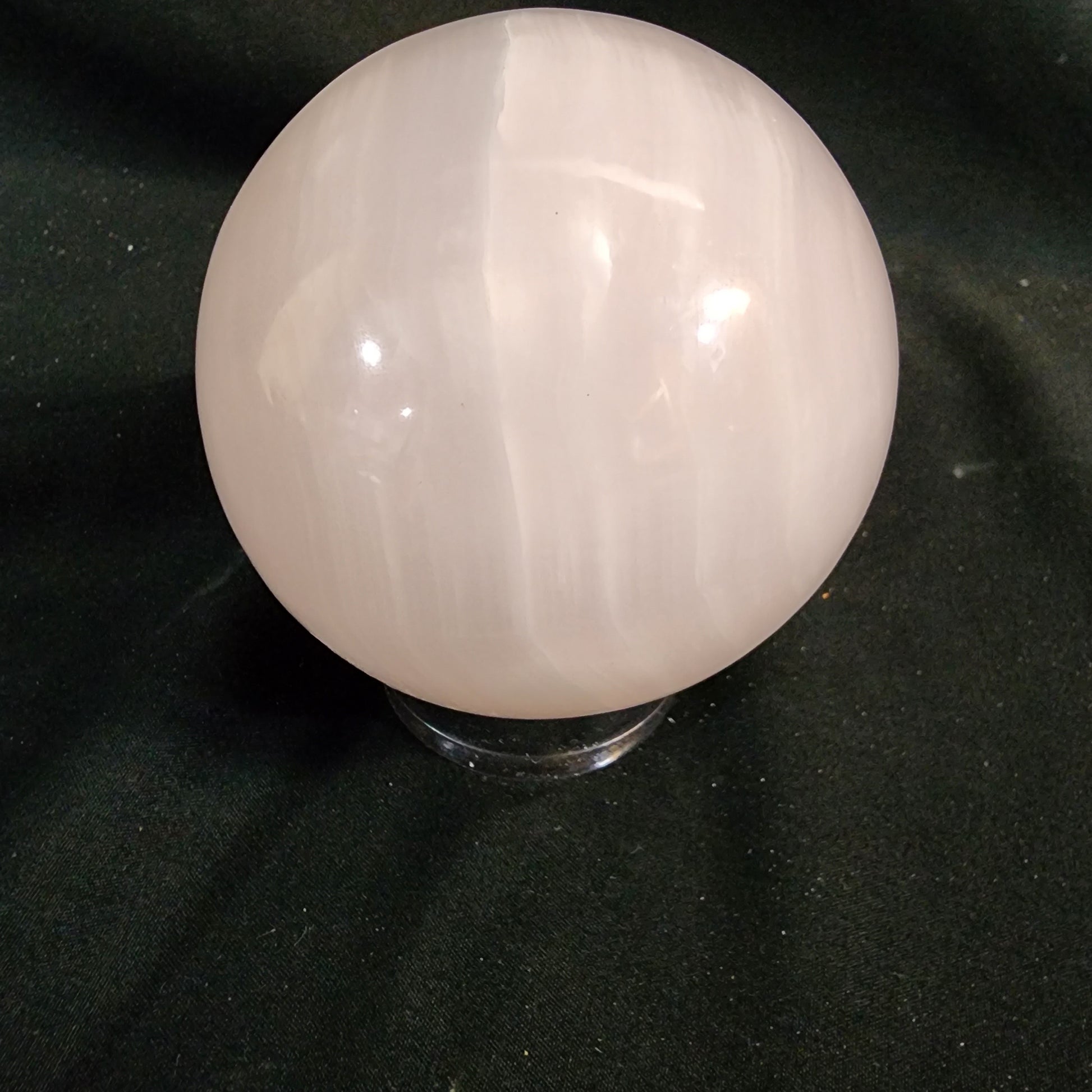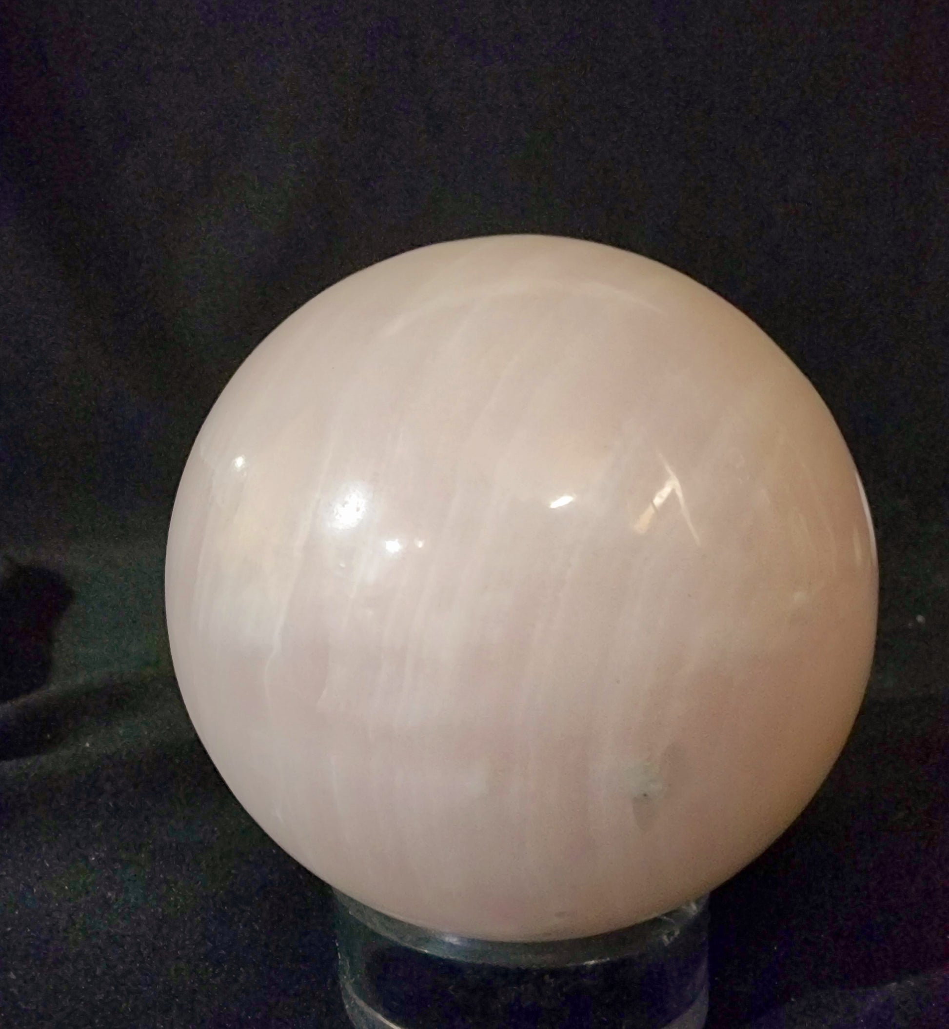 Pretty in Pink Calcite Sphere. This polished mineral has subtle shades of pink all around it.
