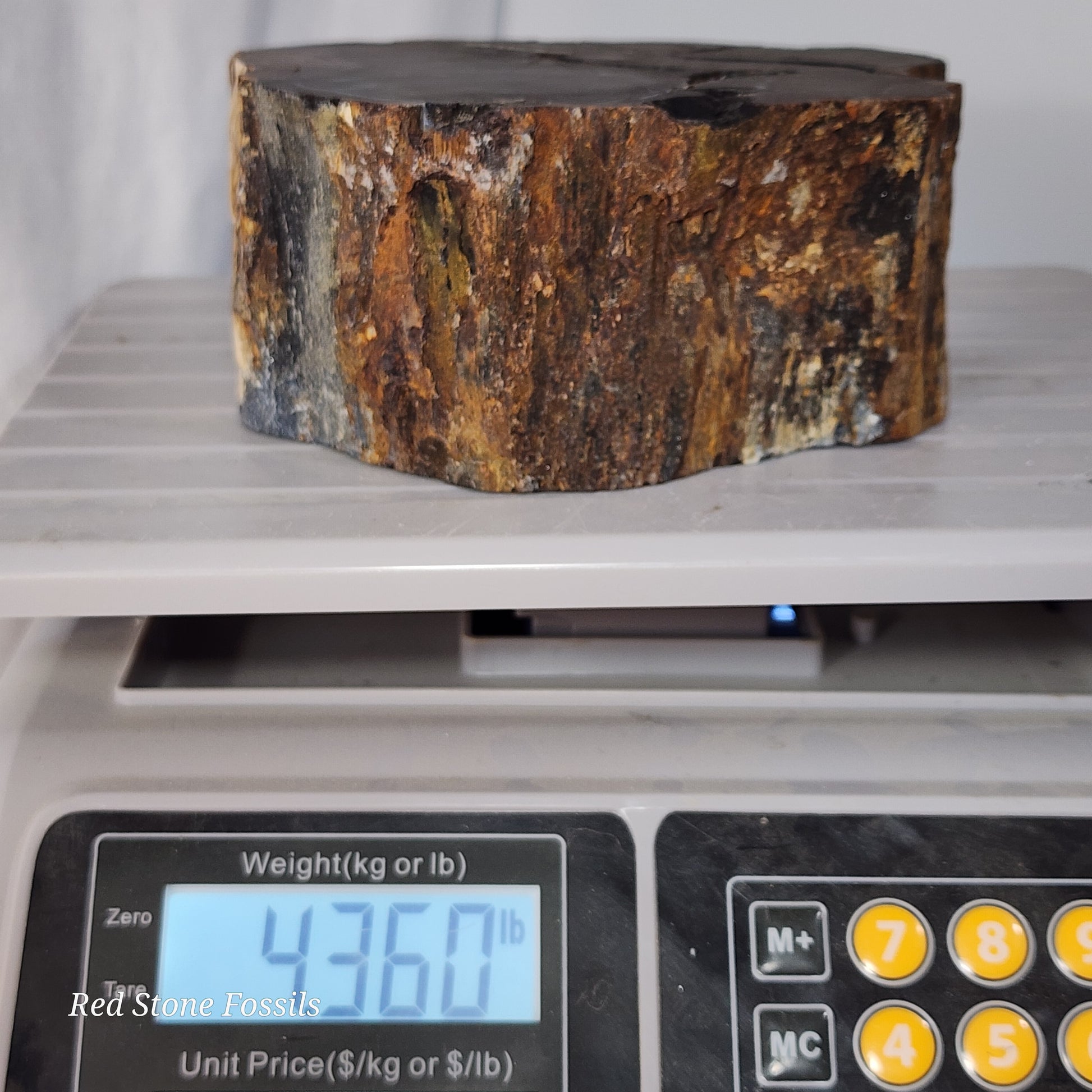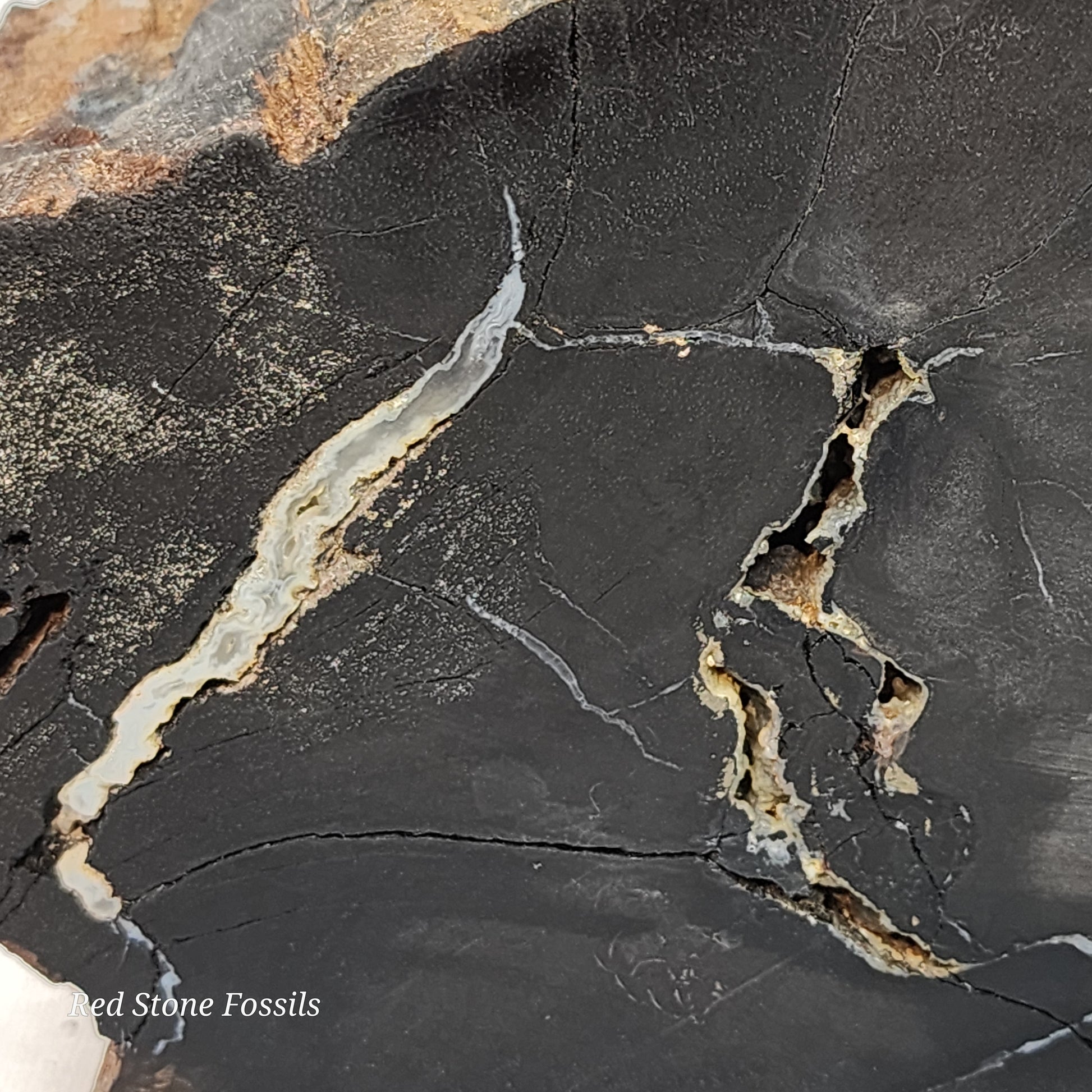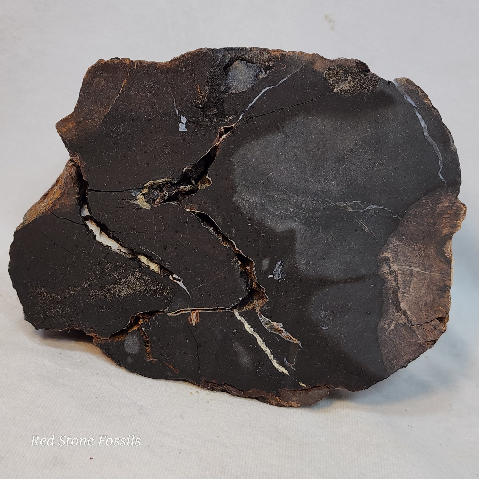 This specific specimen has been polished on each side, but the exterior has been left in its natural state. The gorgeous slab has cracks and crevices that have amazing mineral pockets and the natural exterior is a beautiful deep brown!
