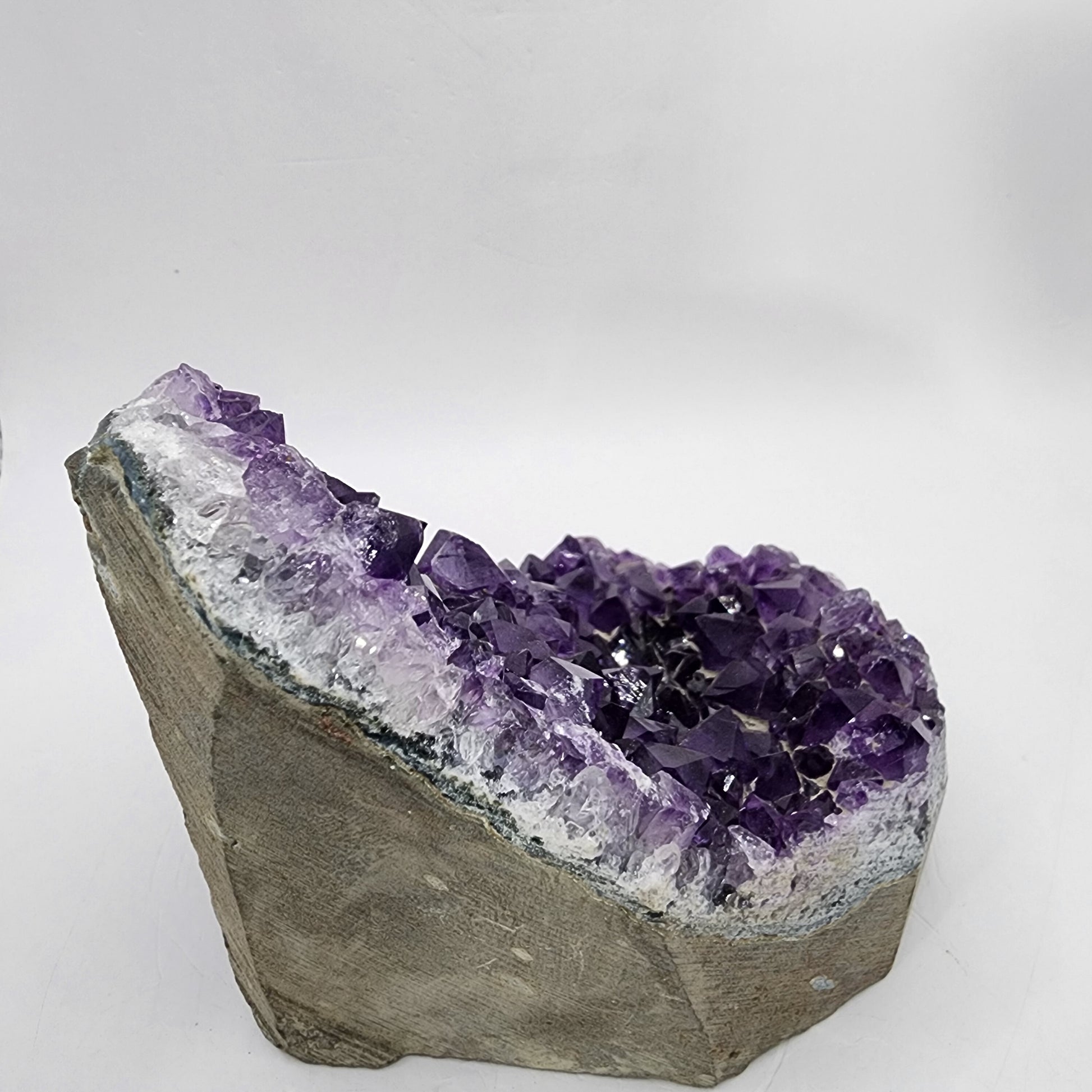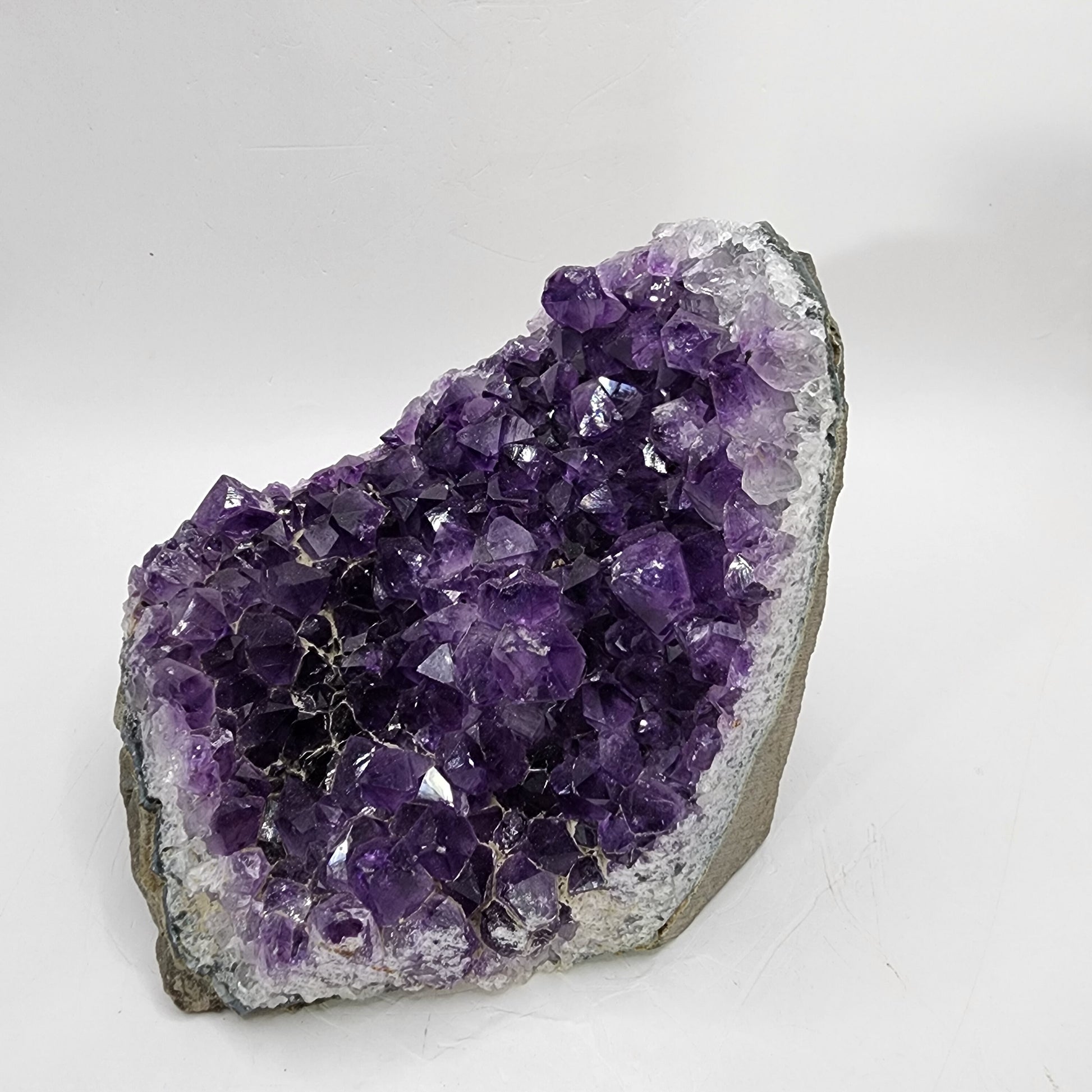 The deep purple crystal clusters really catch your eye as they sparkle and shine. The layers on the base are also stunning.