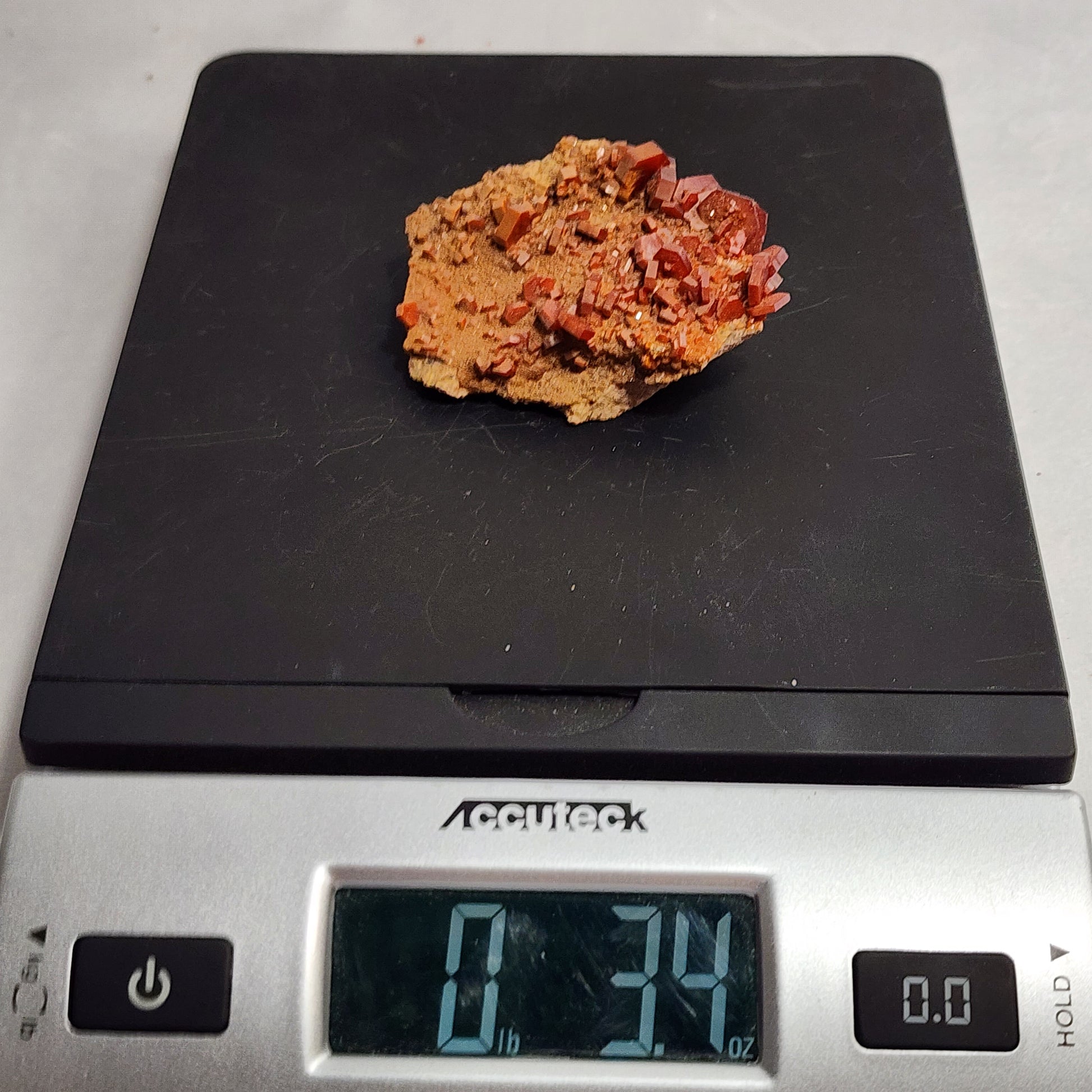 Vanadinite adds a special sparkle to the room! Pair with our Fluorite and Selenite Sphere for a stunning display!