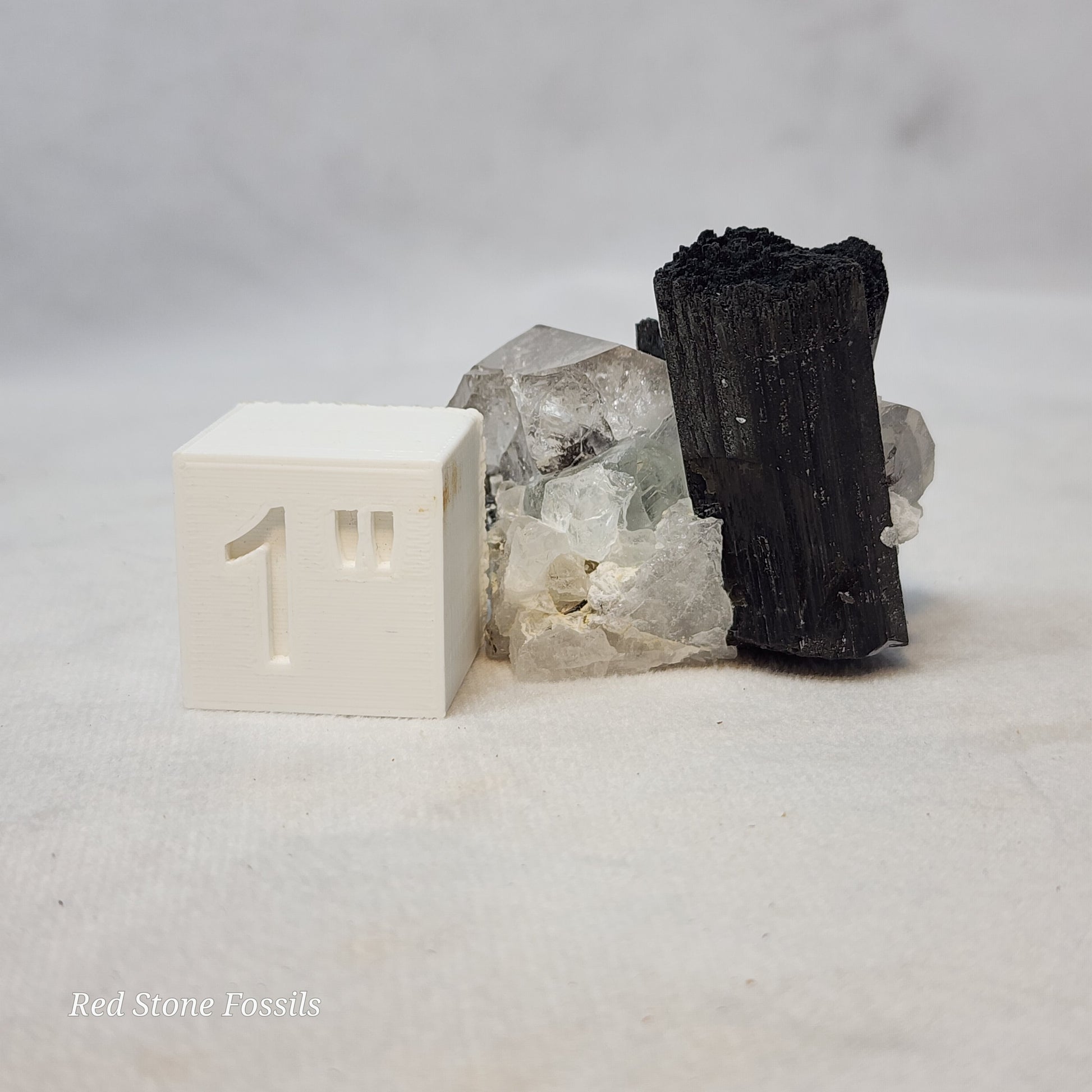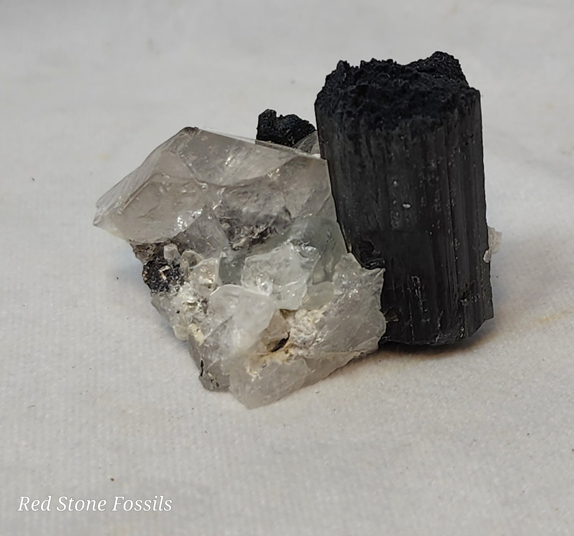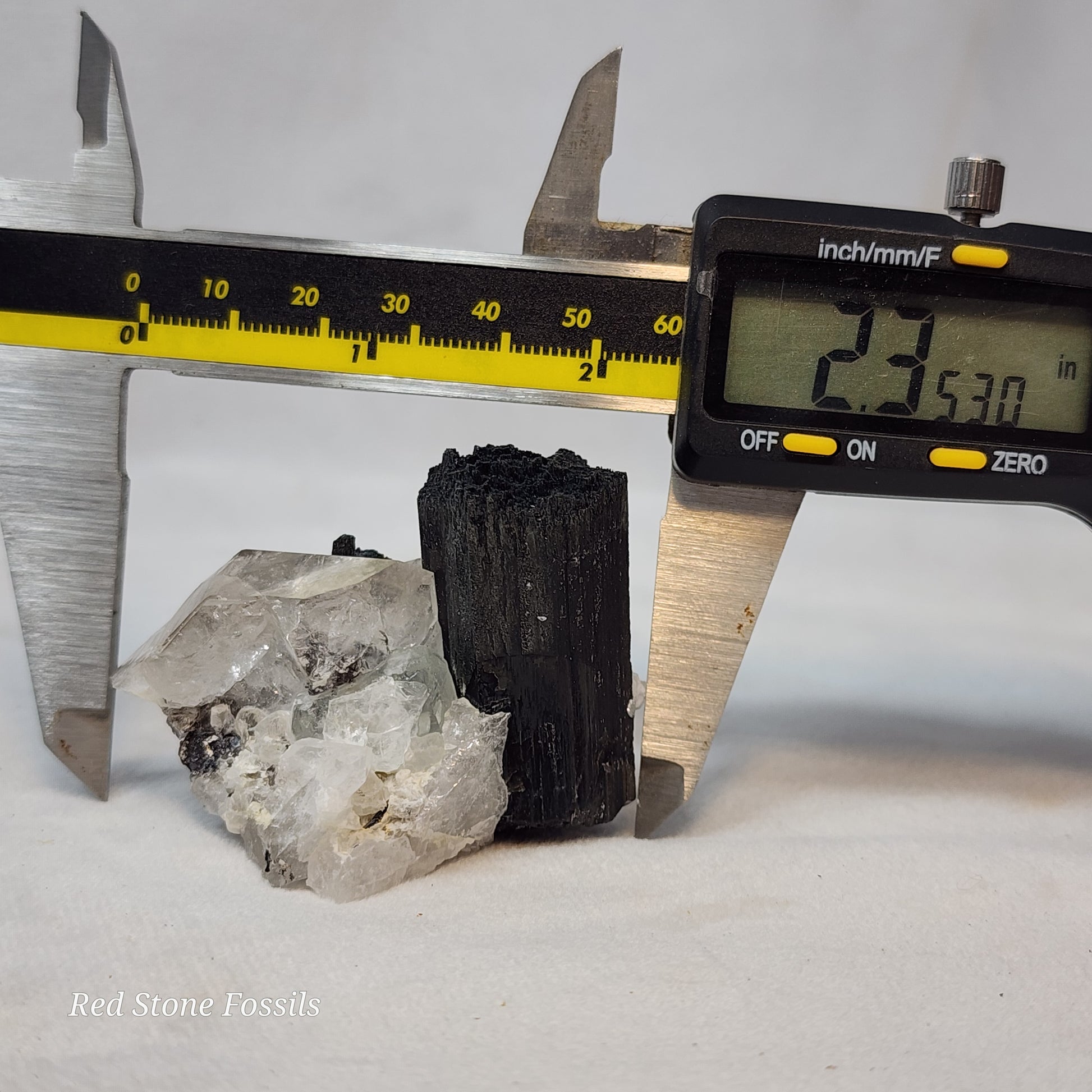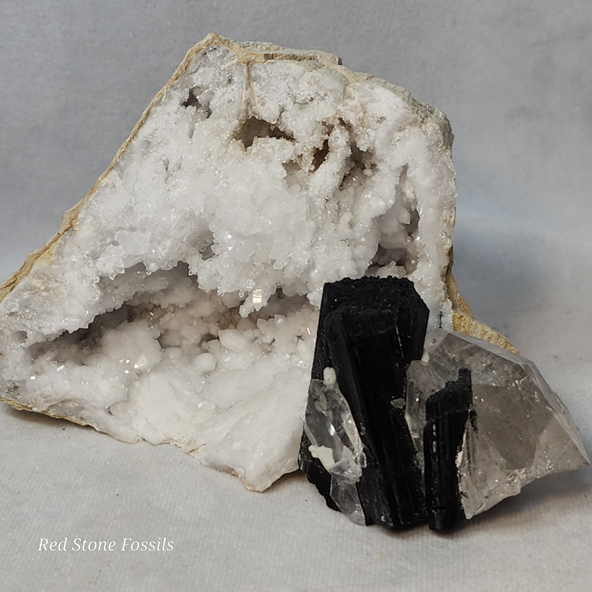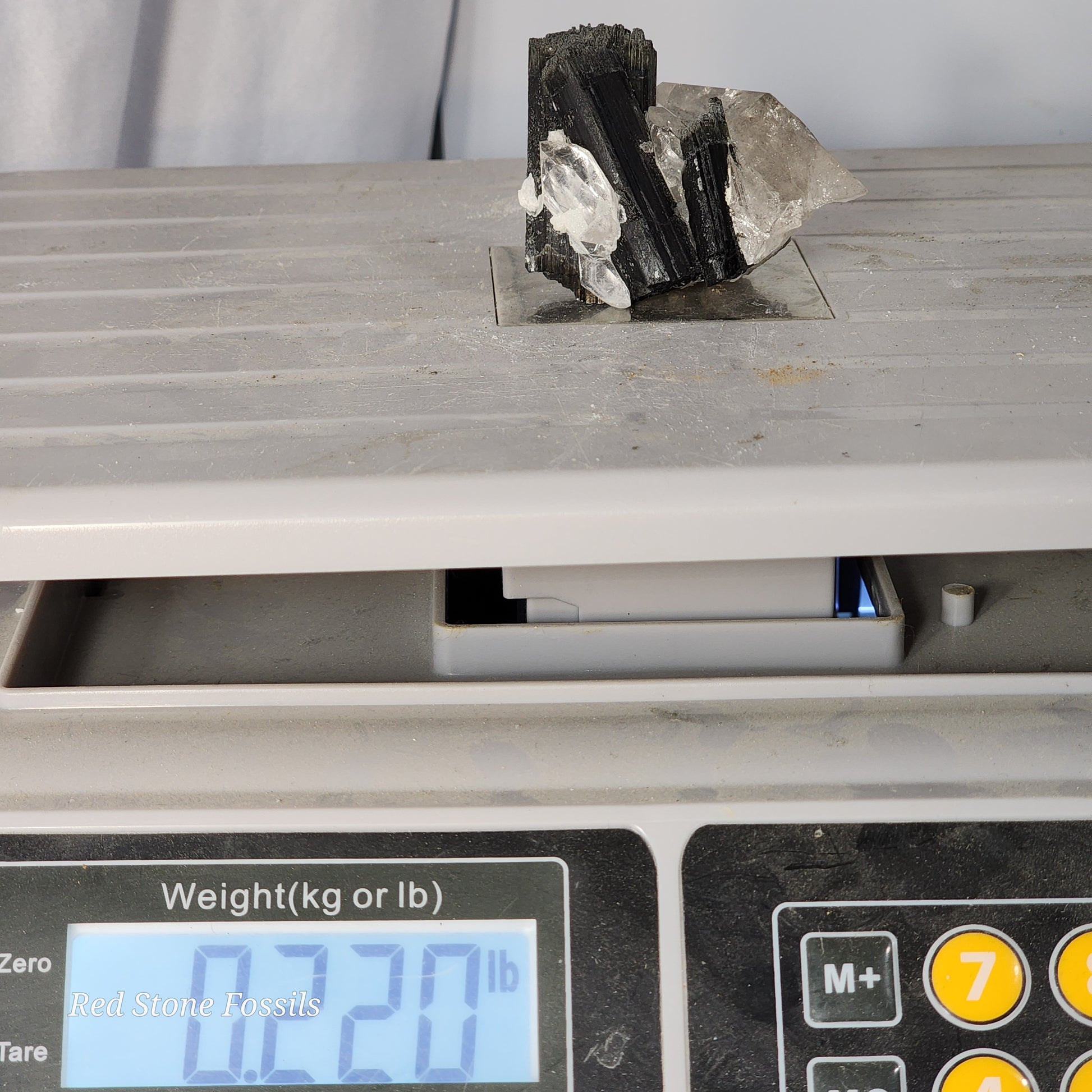 This gorgeous specimen is raw Tourmaline on Albite and Quartz. The spectacular black and white contrast catches the eye and adds such an elegant feature to any room!