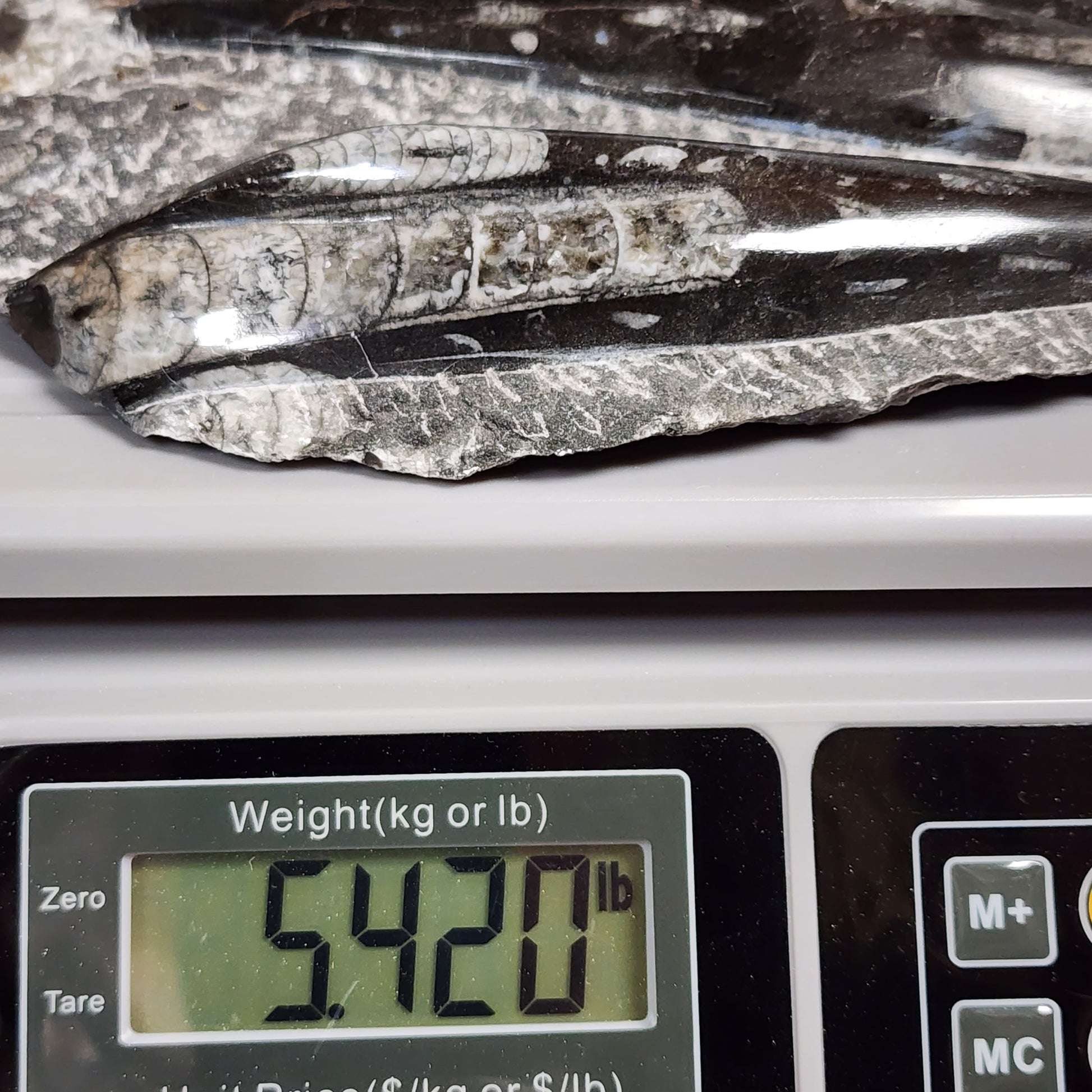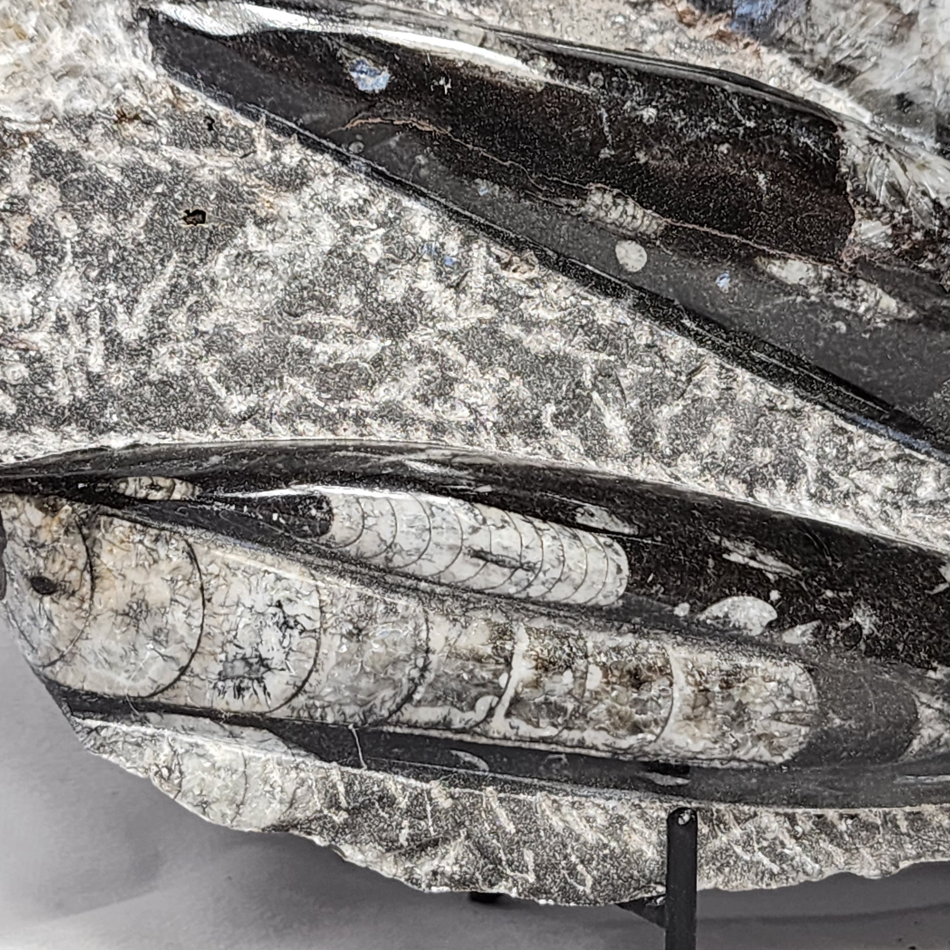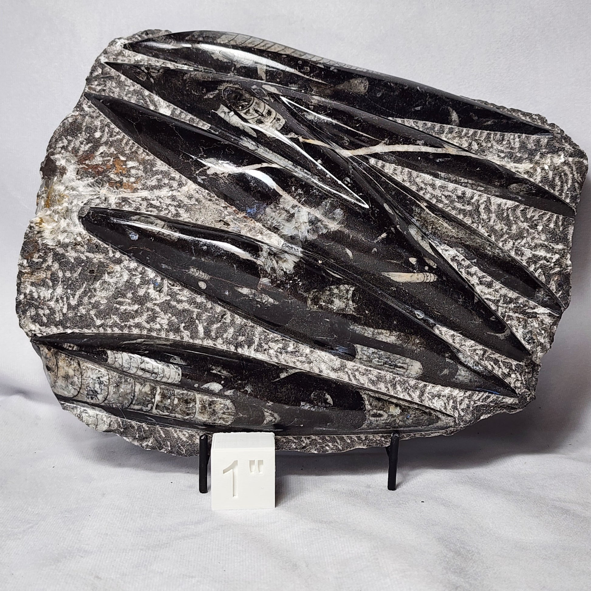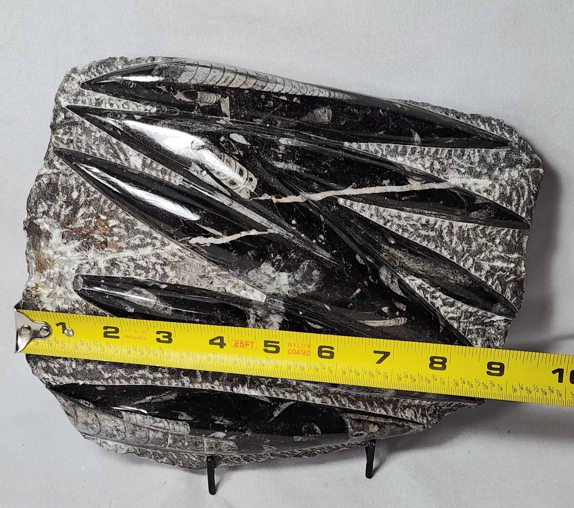 This specimen is from Morocco and has stunning, polished Orthoceras segments that make this plate remarkable!