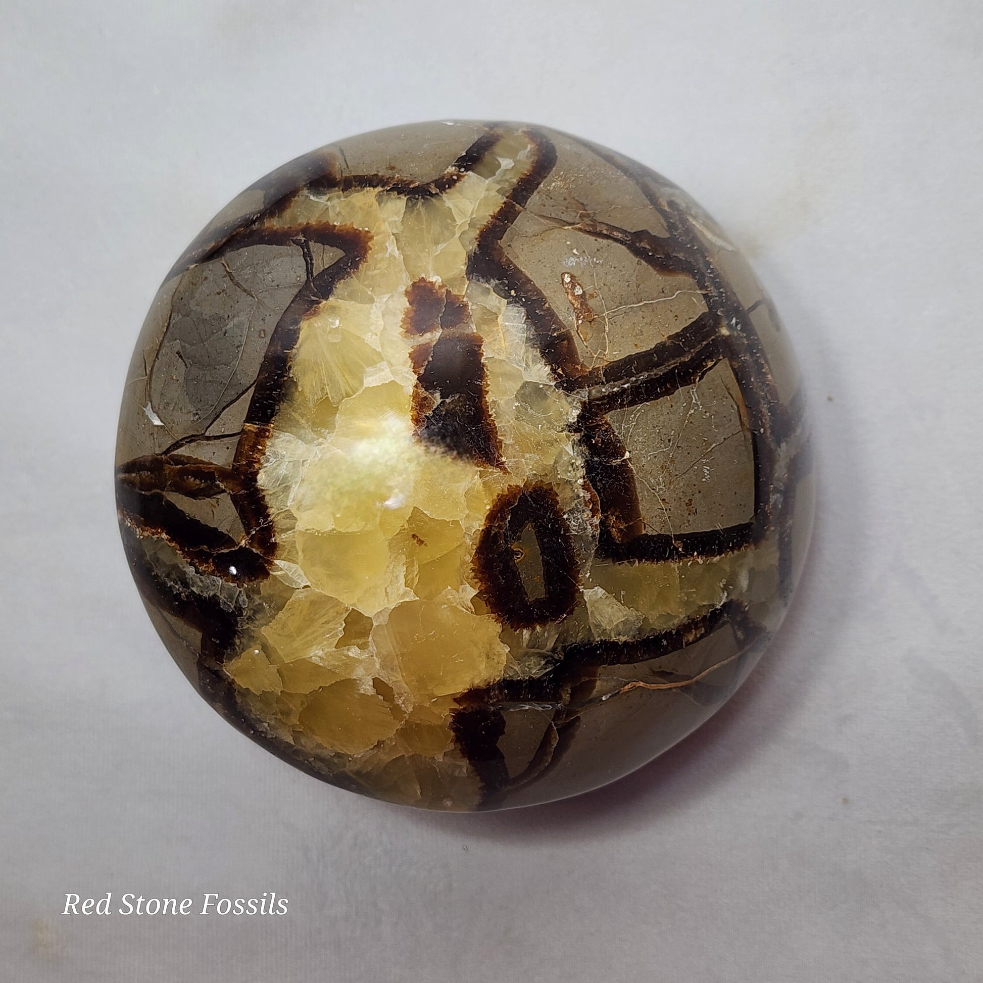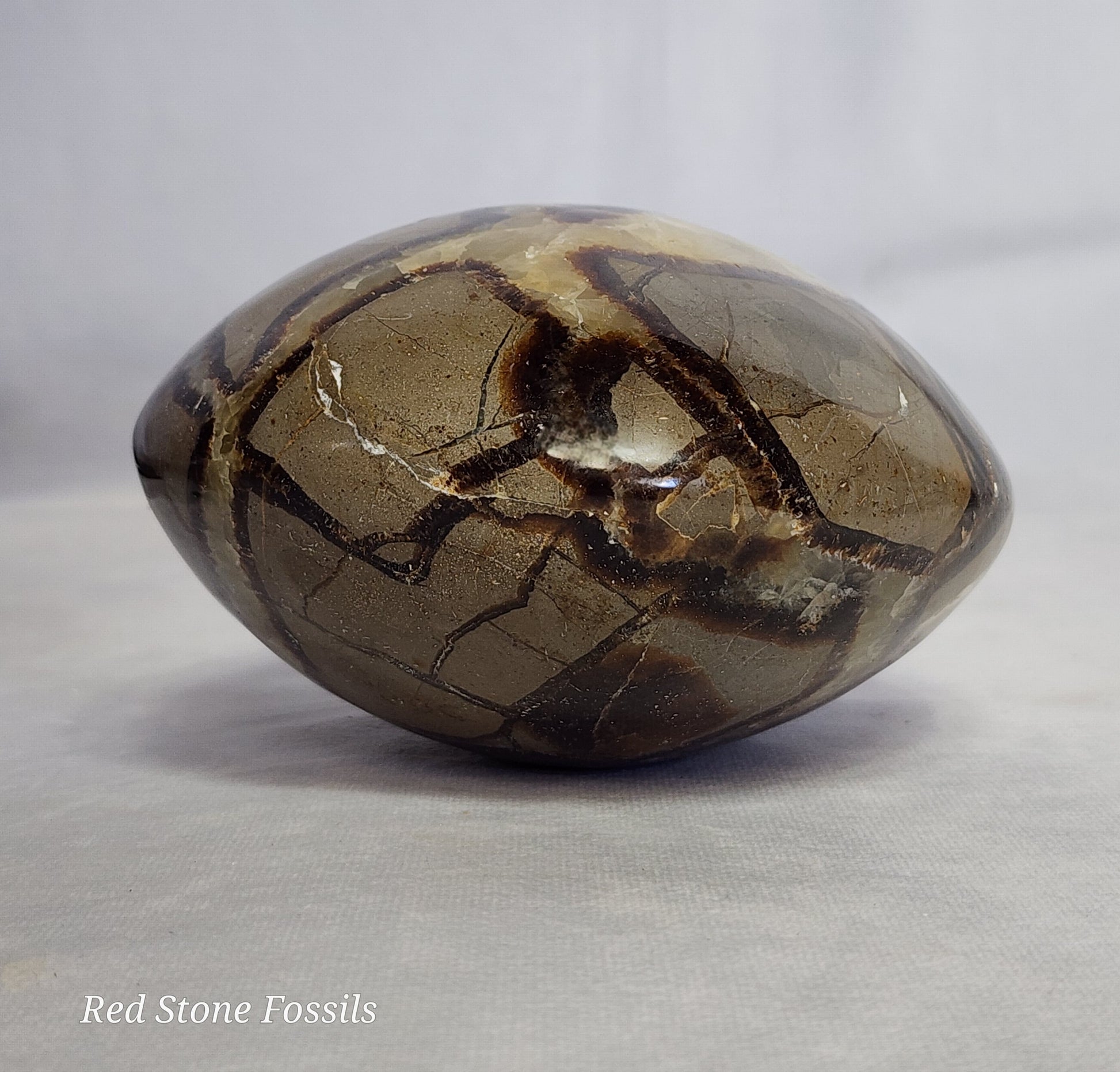 Septarian Spheres are Septarian nodules that have been carved and polished. The natural pattern of the Septarian looks like dragon skin, hence where the name "Dragon Stone" comes from.