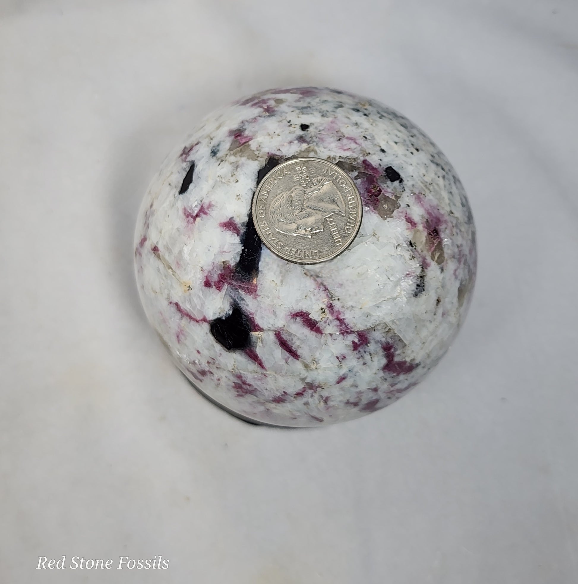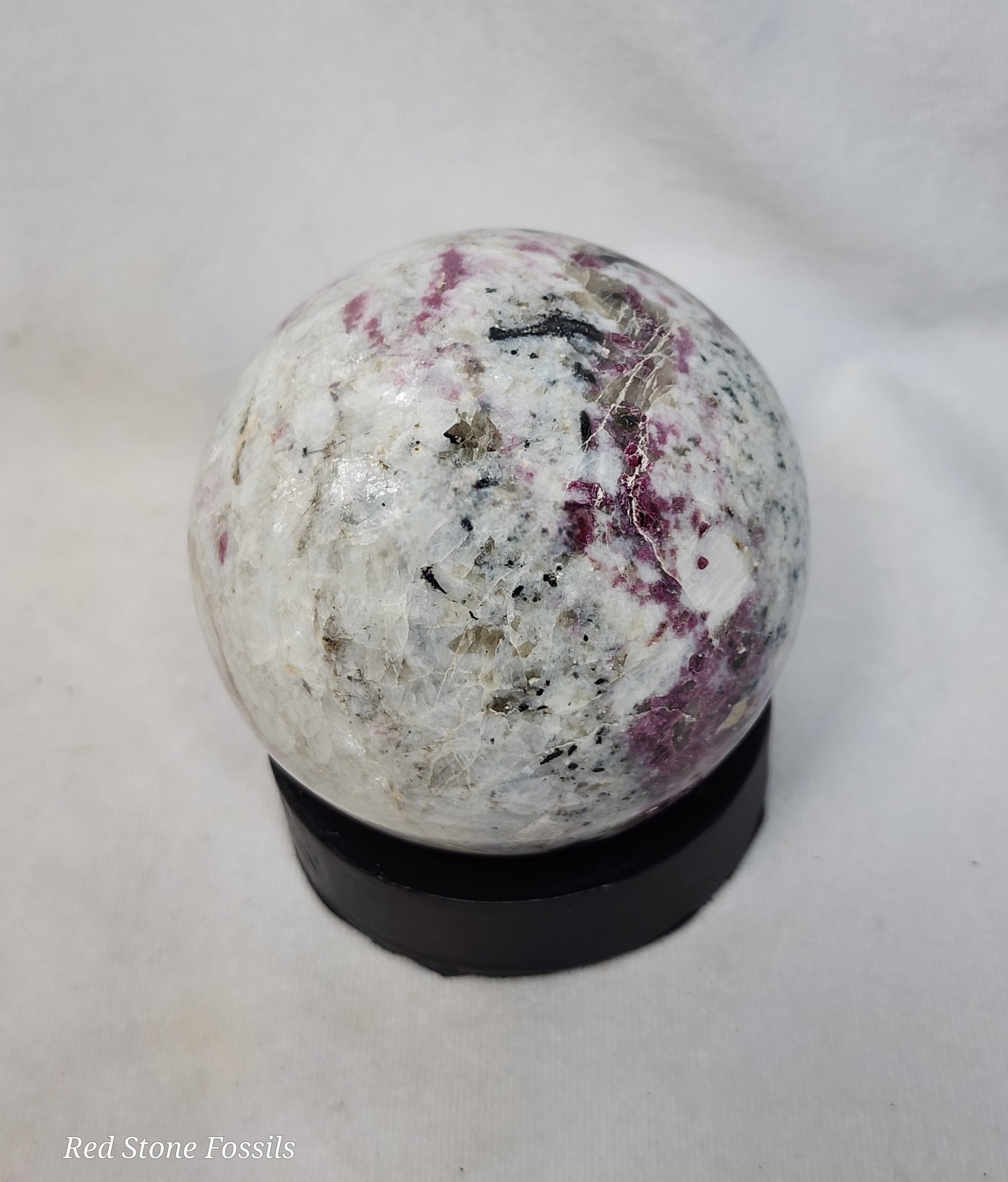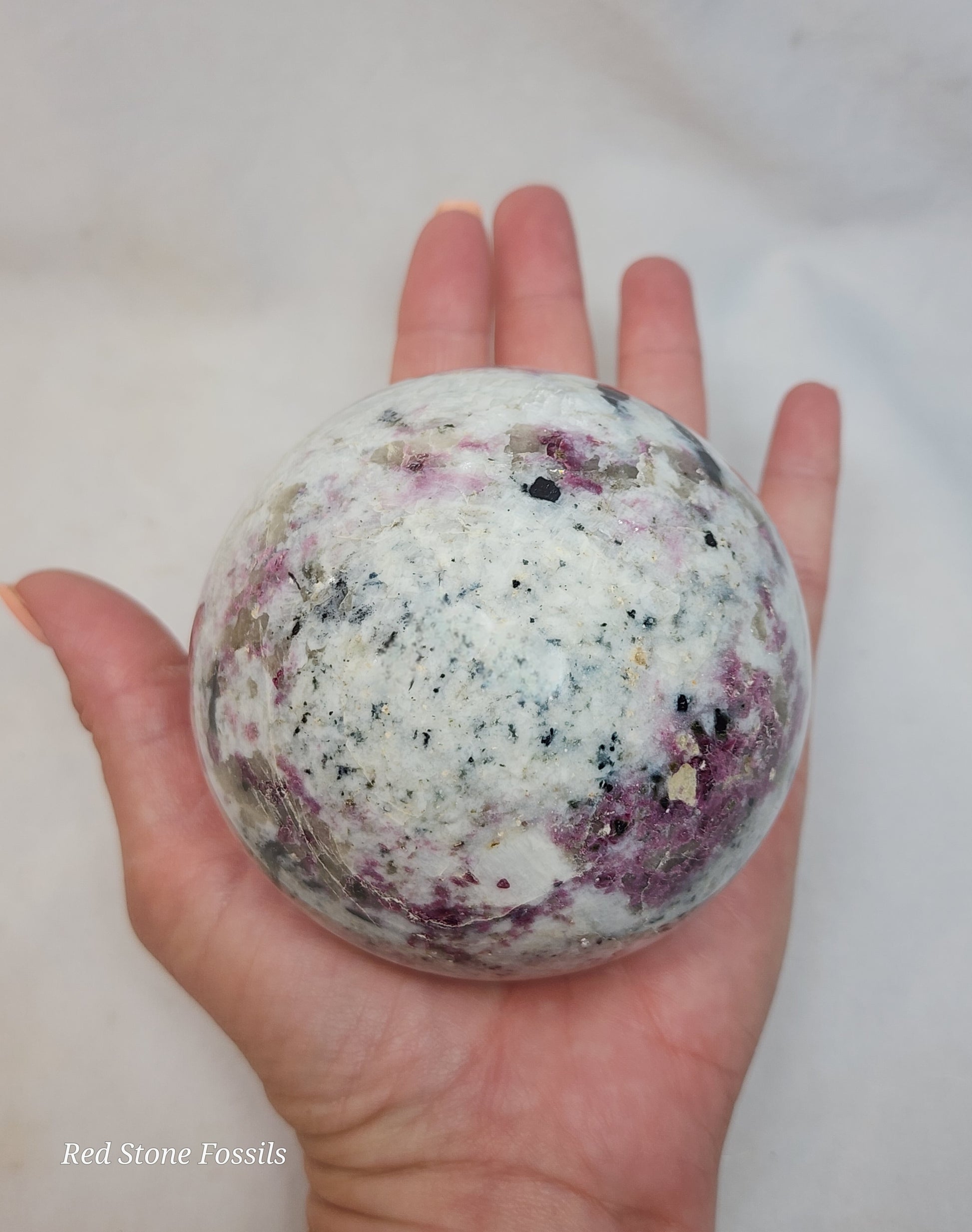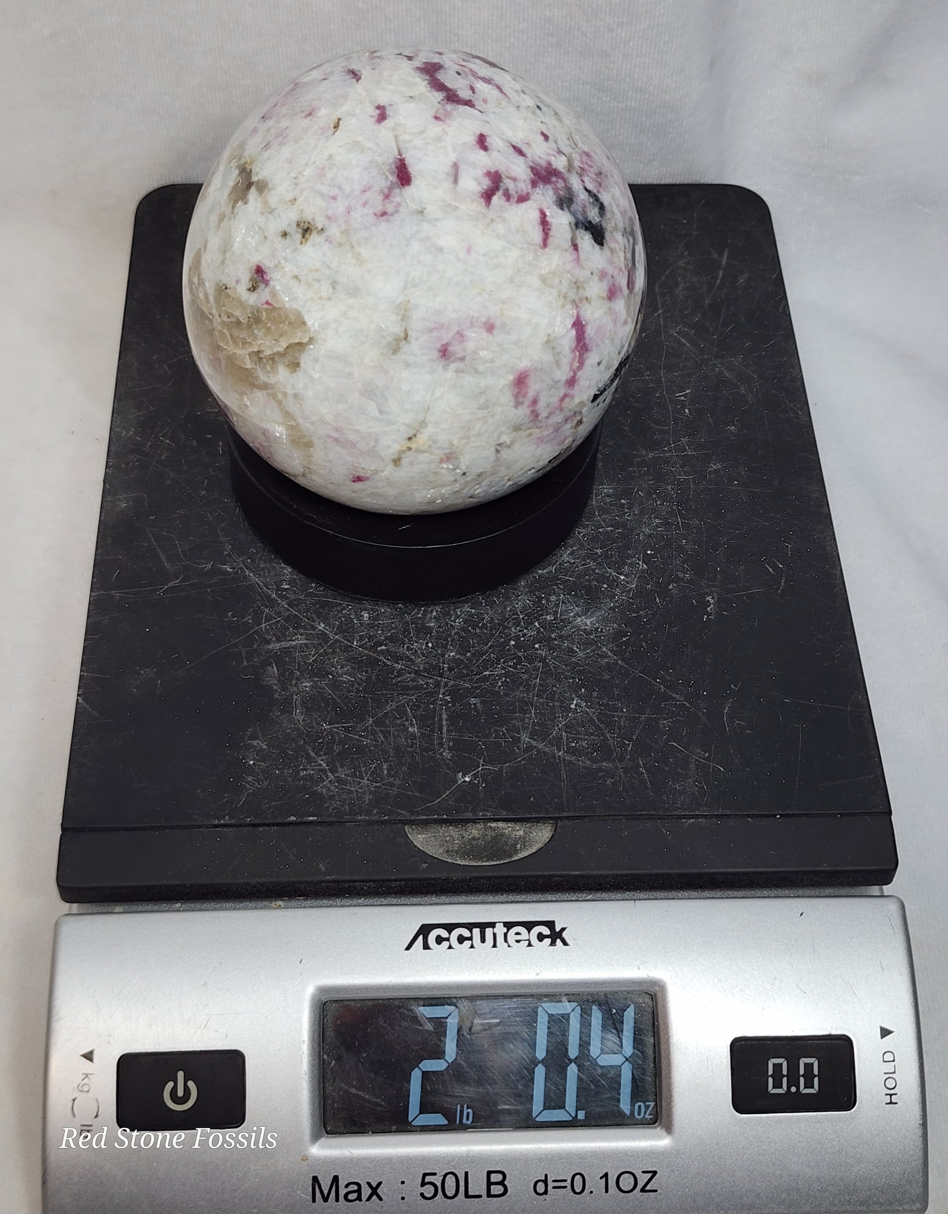 Rubellite is a remarkable pink to red variety of tourmaline. This sphere has beautiful speckles of Pink and Black Tourmaline surrounding it. This piece is perfect for the entry way or living room, a place to show off its natural beauty and stunning features!