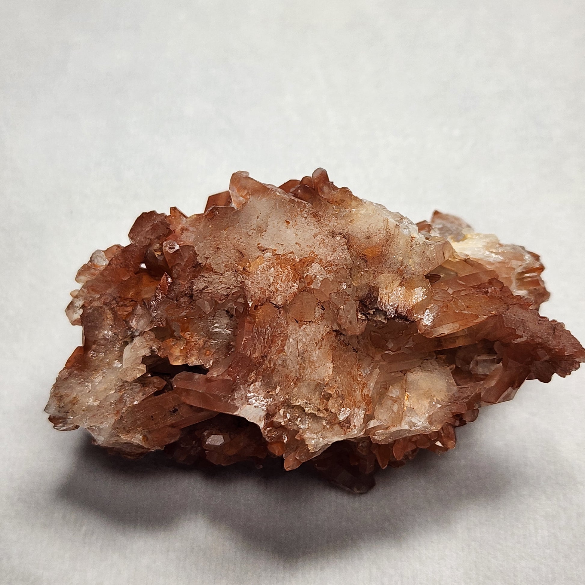 Stunning Red Hematite Quartz cluster from Morocco. The reddish-orange and brown crystal "towers" on this specimen really sparkle under the light!