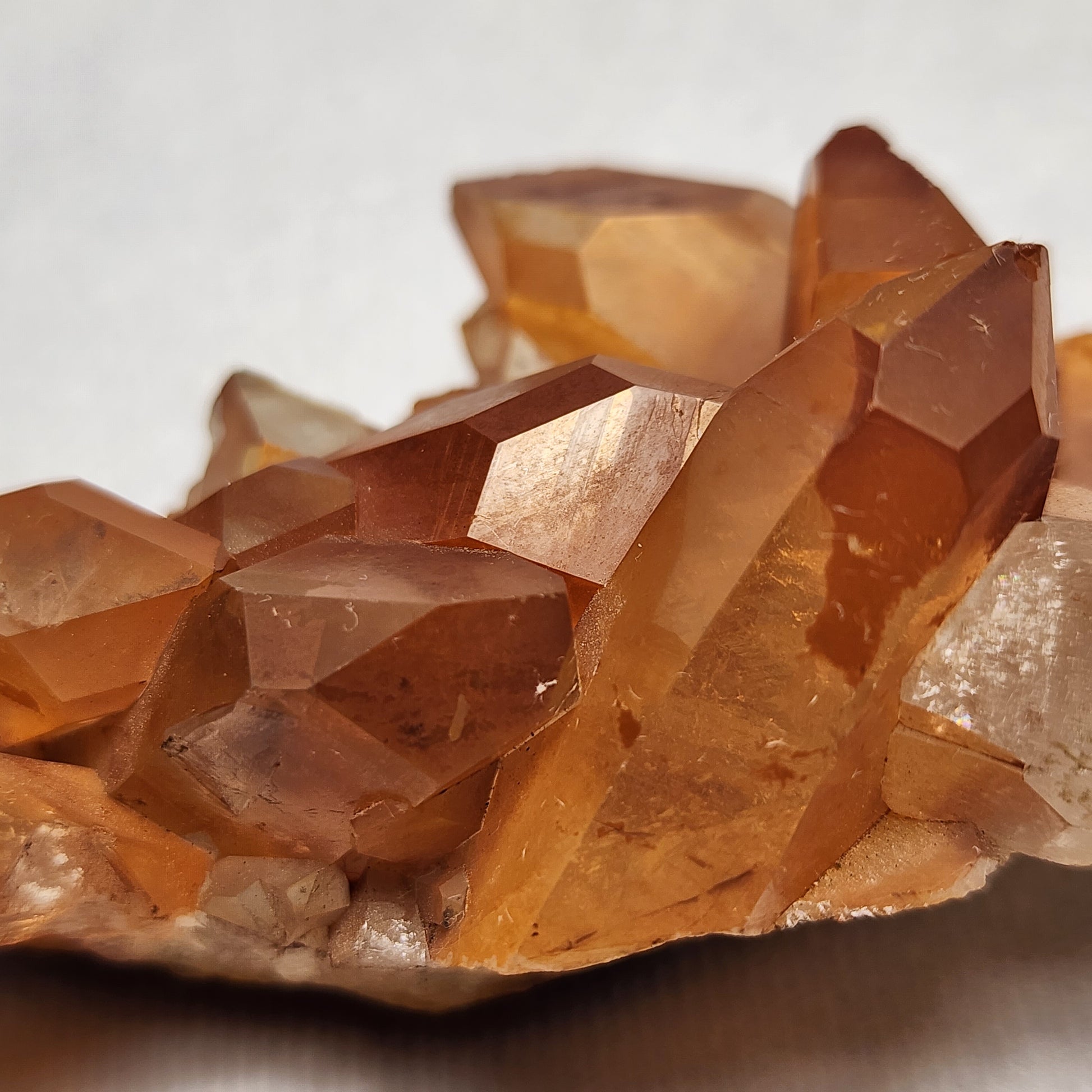 Rusty Red Hematite Quartz cluster from Morocco. The reddish-orange and brown crystal "towers" on this specimen really sparkle under the light!