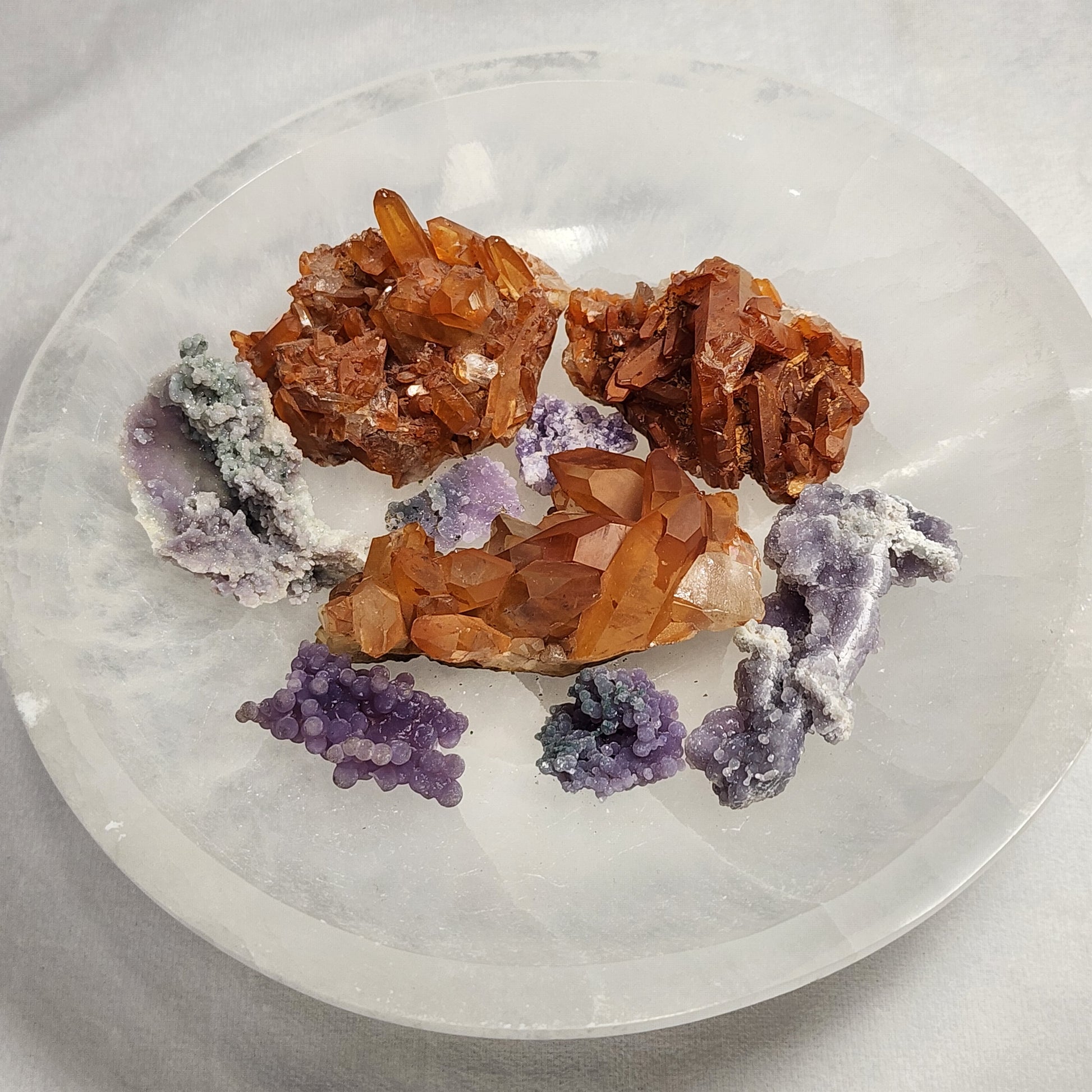 Pair on our Selenite Bowl with some Grape Agate to add a dazzling splash of rustic flair to the room!