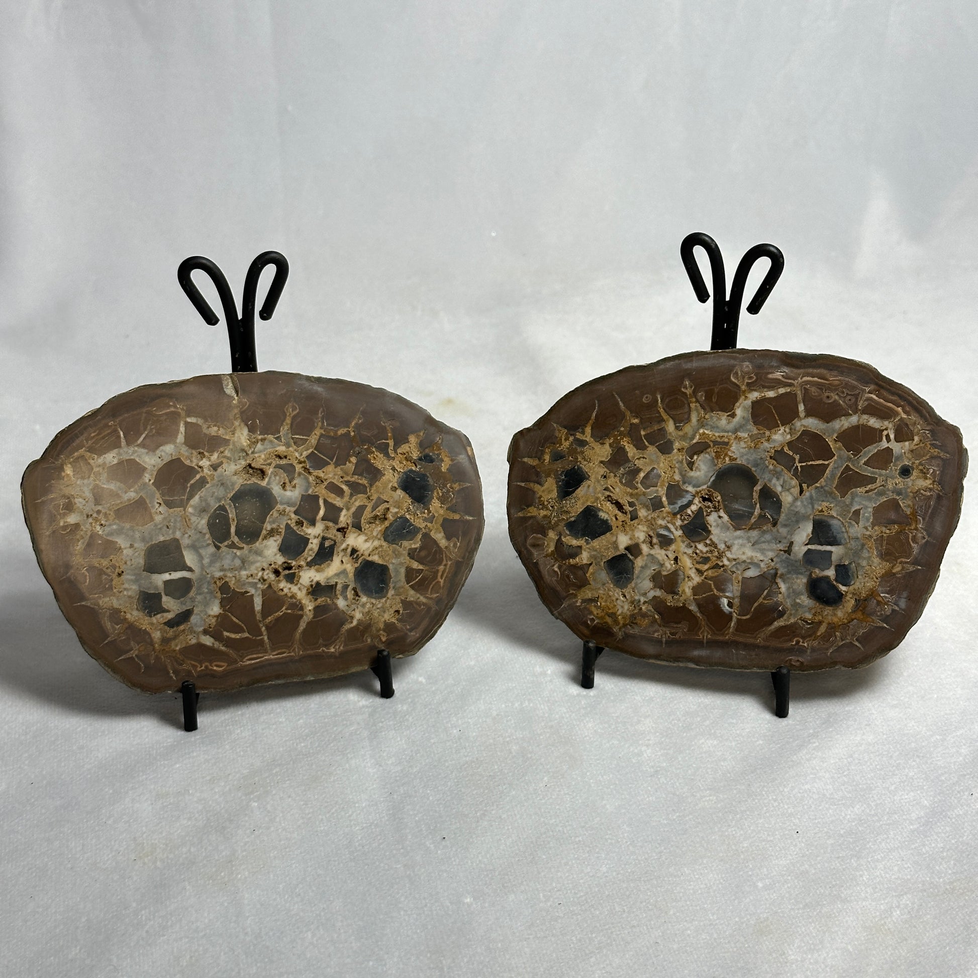 Split Polished Septarian Nodules make a very interesting display piece! Display them side by side for a great conversation starter! Pair with our Agate Spheres for a gorgeous display!