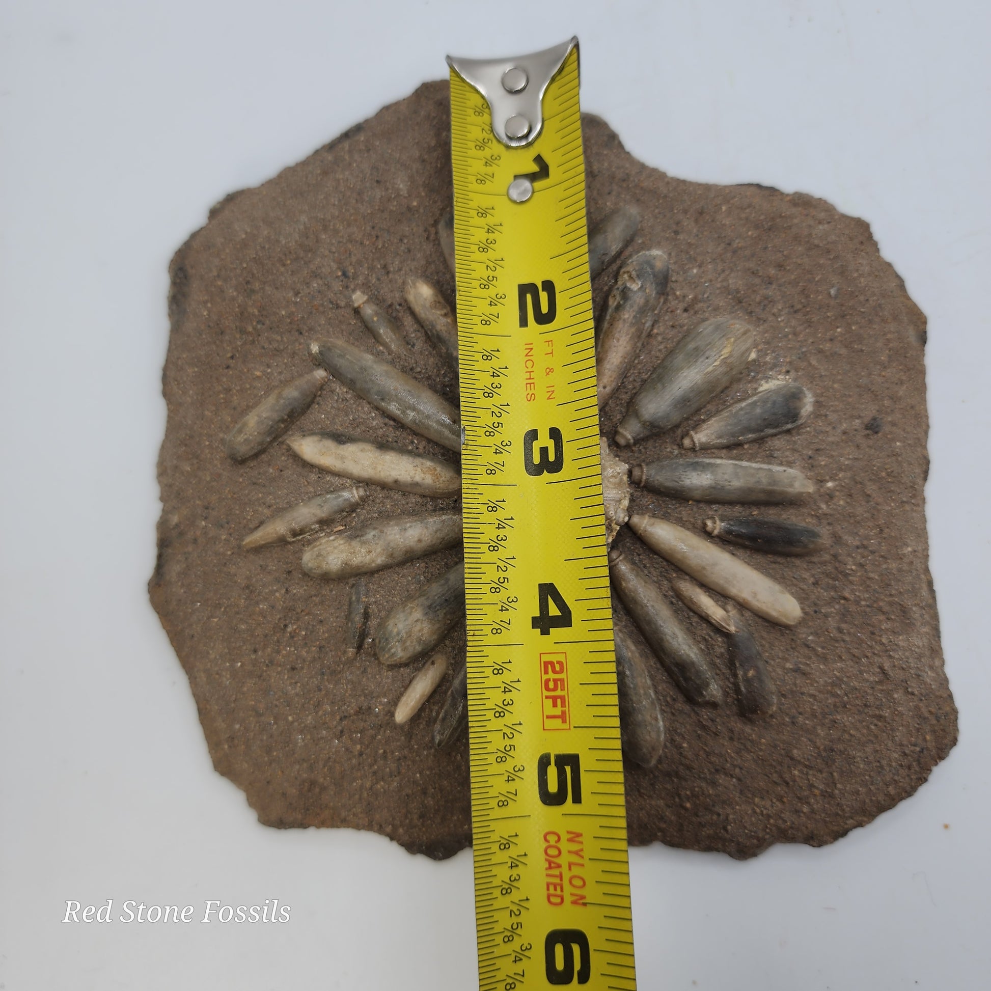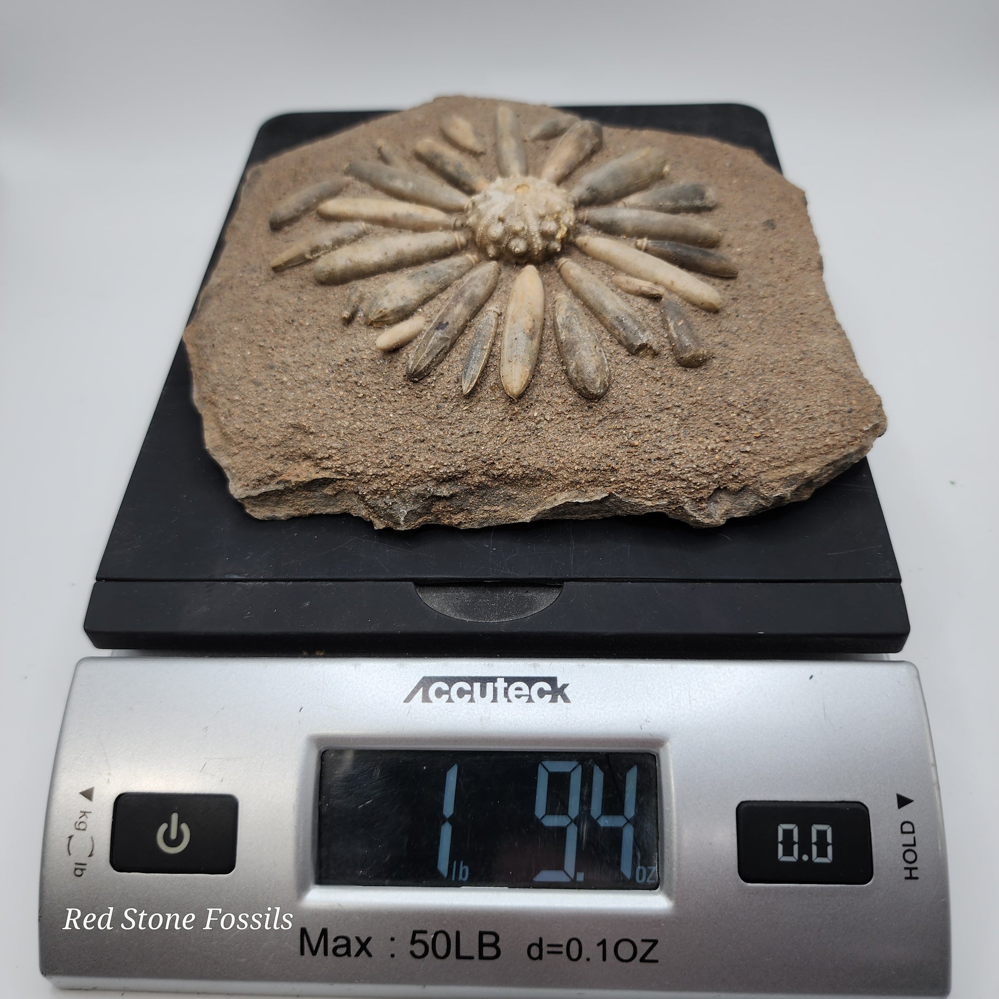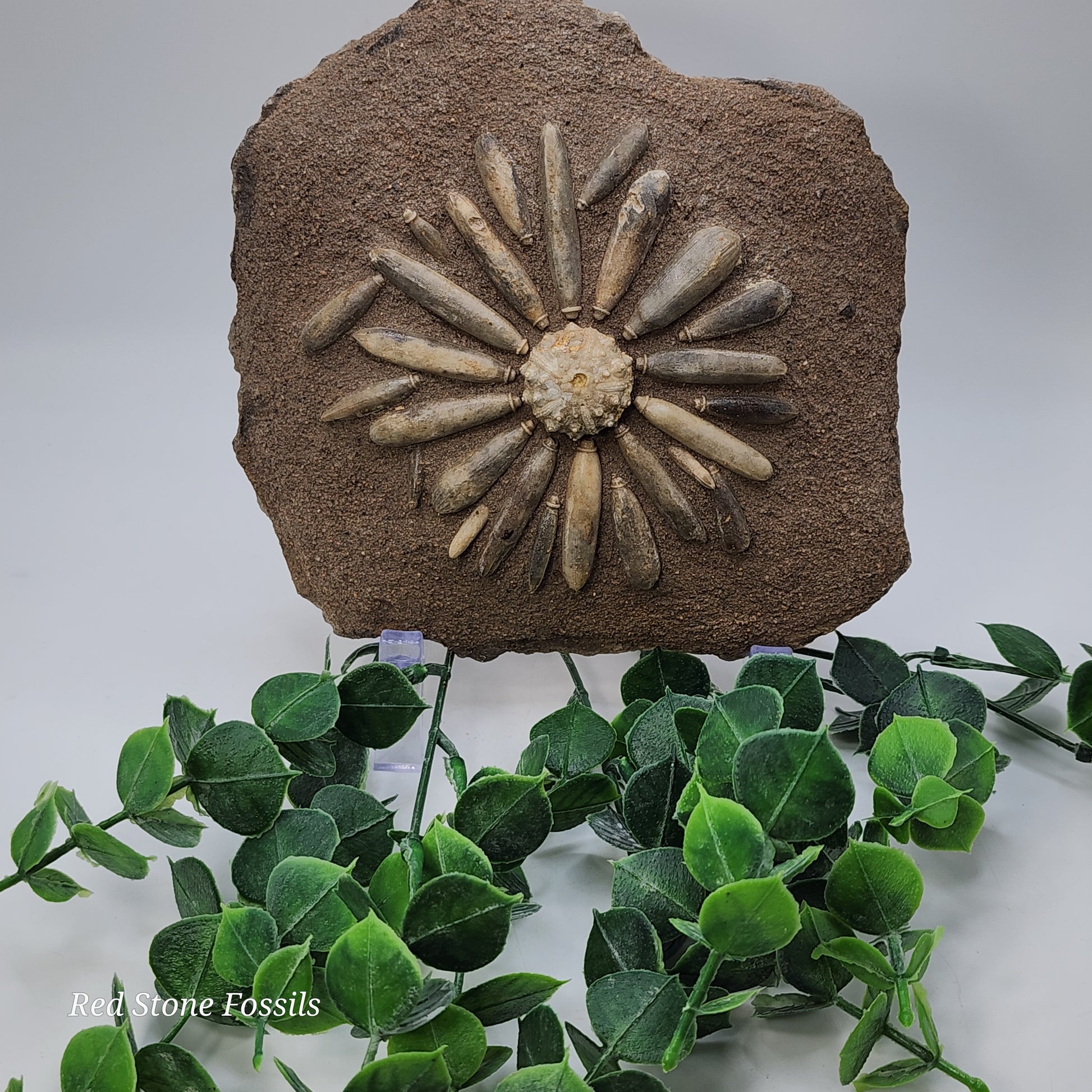 This is a restored Sea Urchin from Morocco. All of the spines have been prepared individually on this matrix in a lifelike position. These urchins are always composites because the spines break off very quickly after they die.