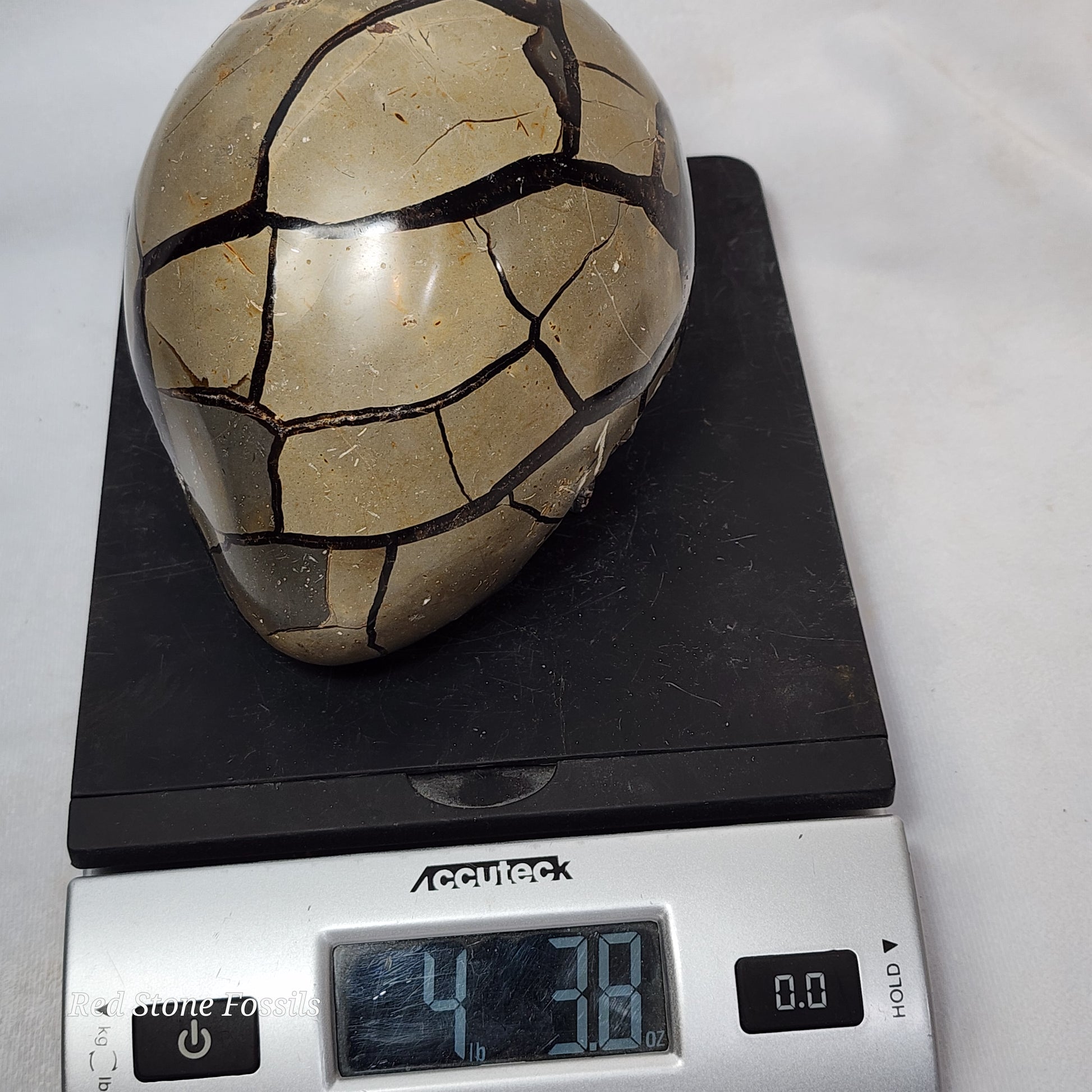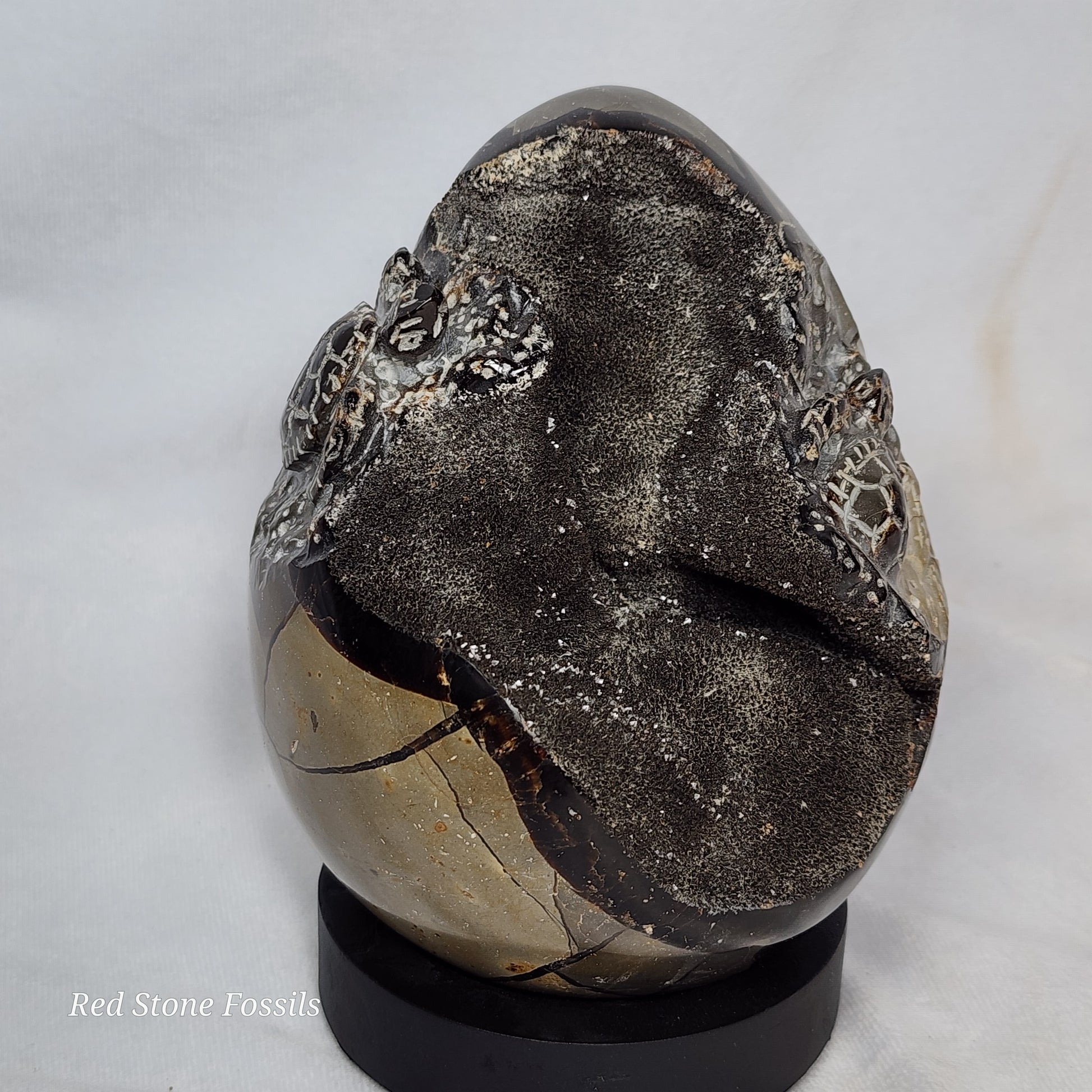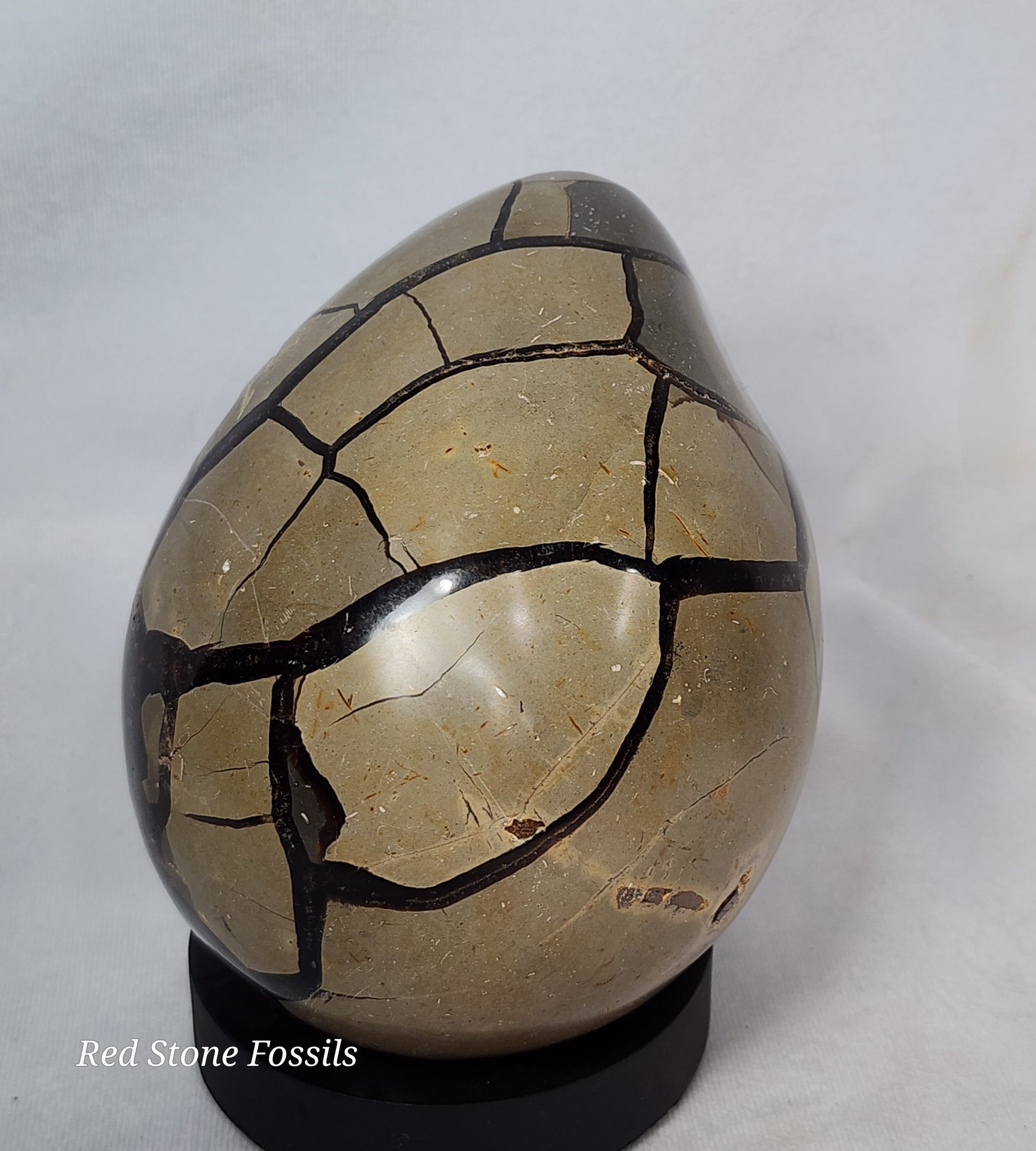 Fascinating hand carved Septarian Egg from Madagascar! Septarian eggs are Septarian nodules that have been carved and polished. The natural pattern of the Septarian looks like dragon skin, hence where the name "Dragon Egg" comes from.