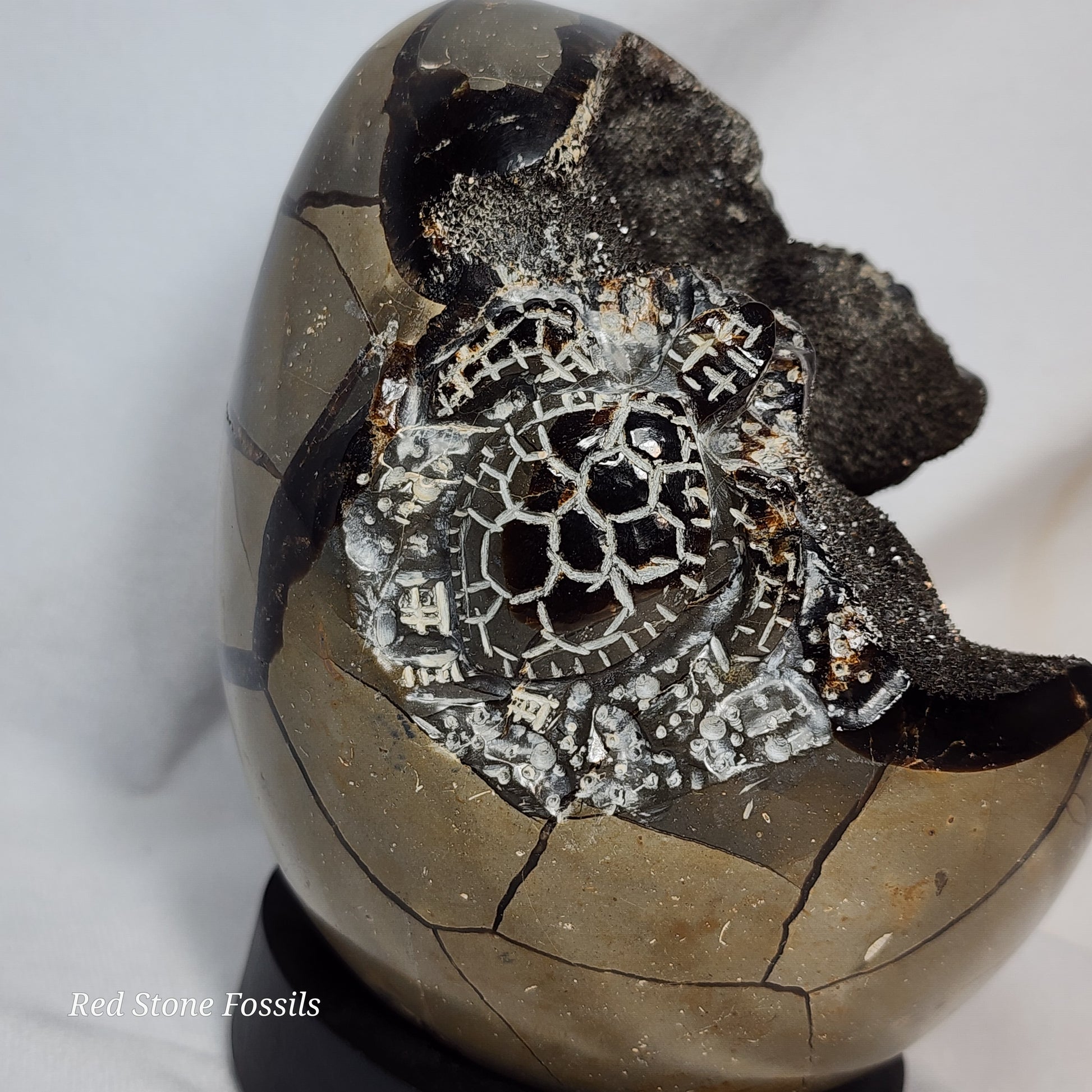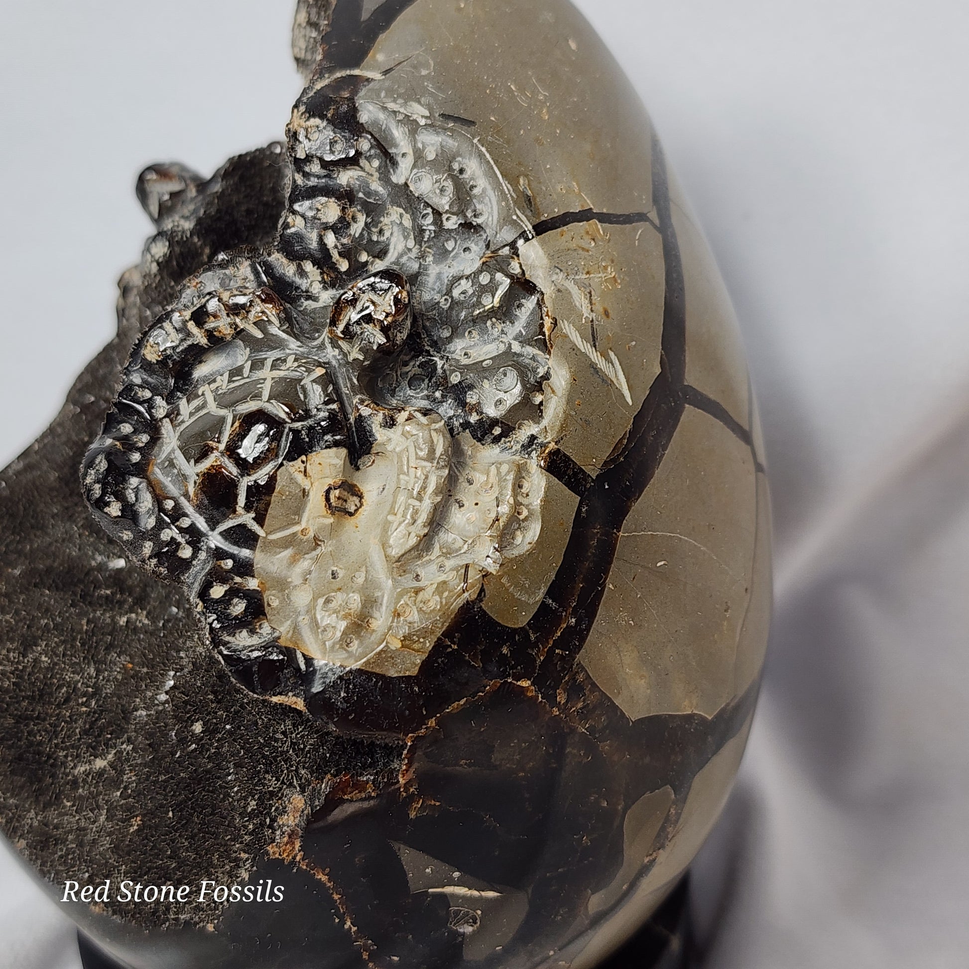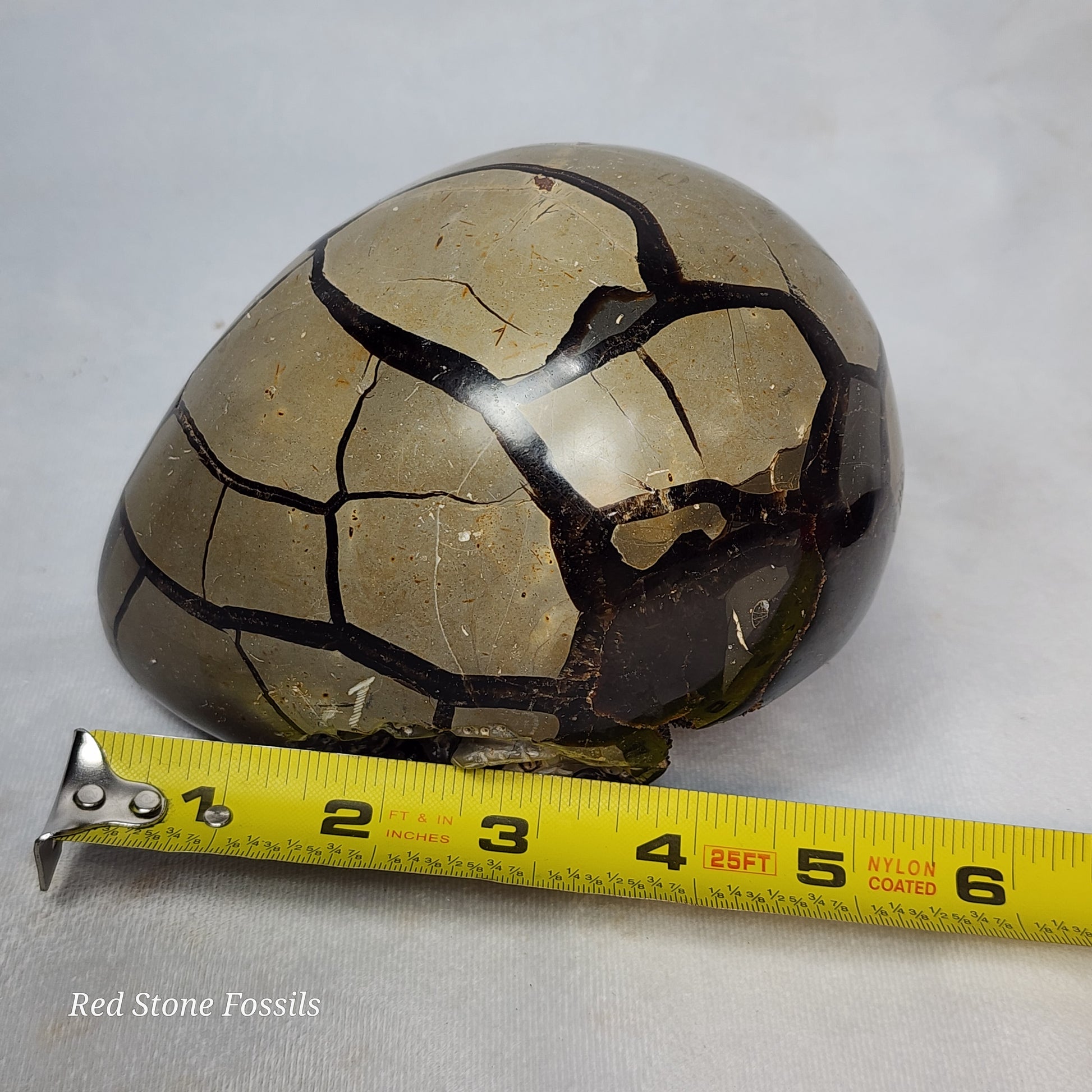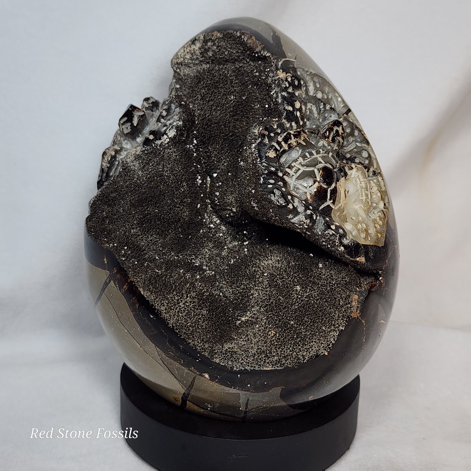 Fascinating hand carved Septarian Egg from Madagascar! Septarian eggs are Septarian nodules that have been carved and polished. The natural pattern of the Septarian looks like dragon skin, hence where the name "Dragon Egg" comes from.