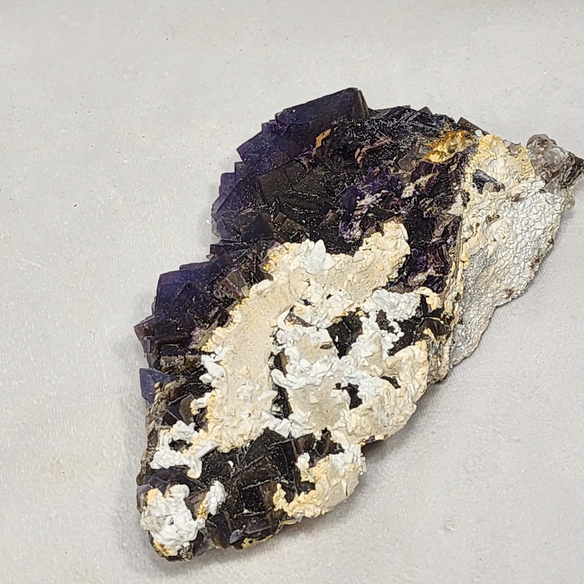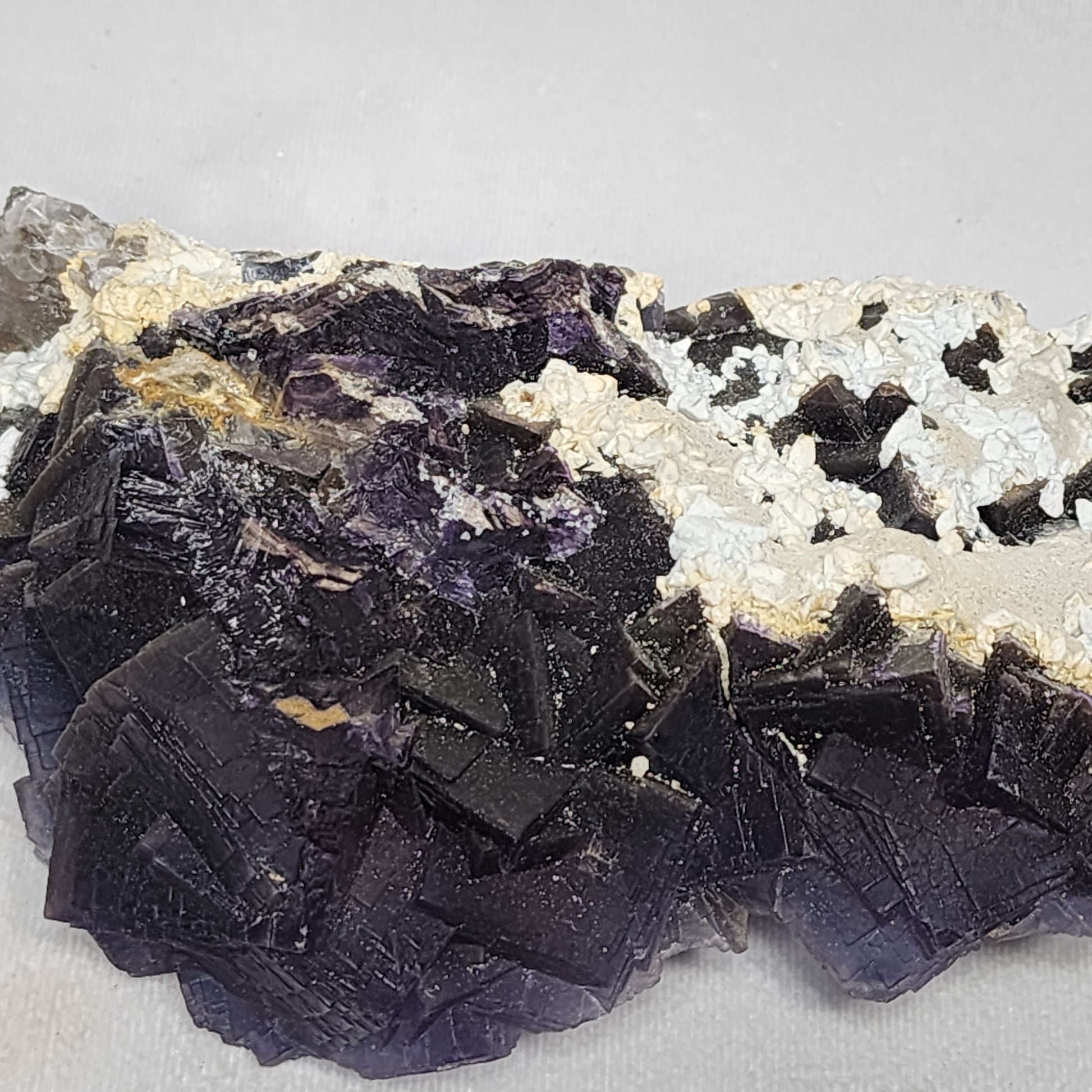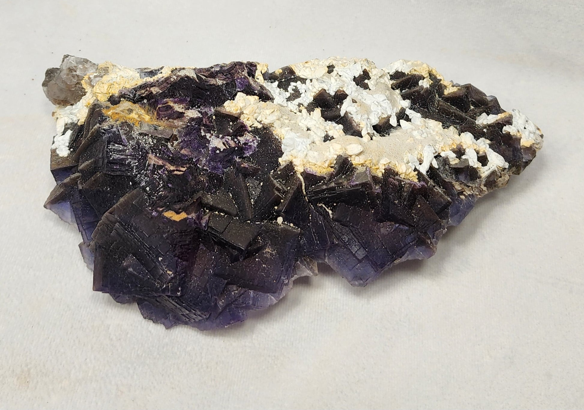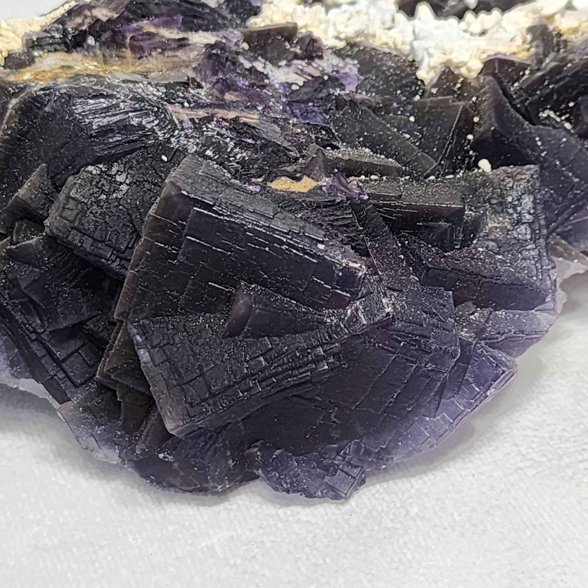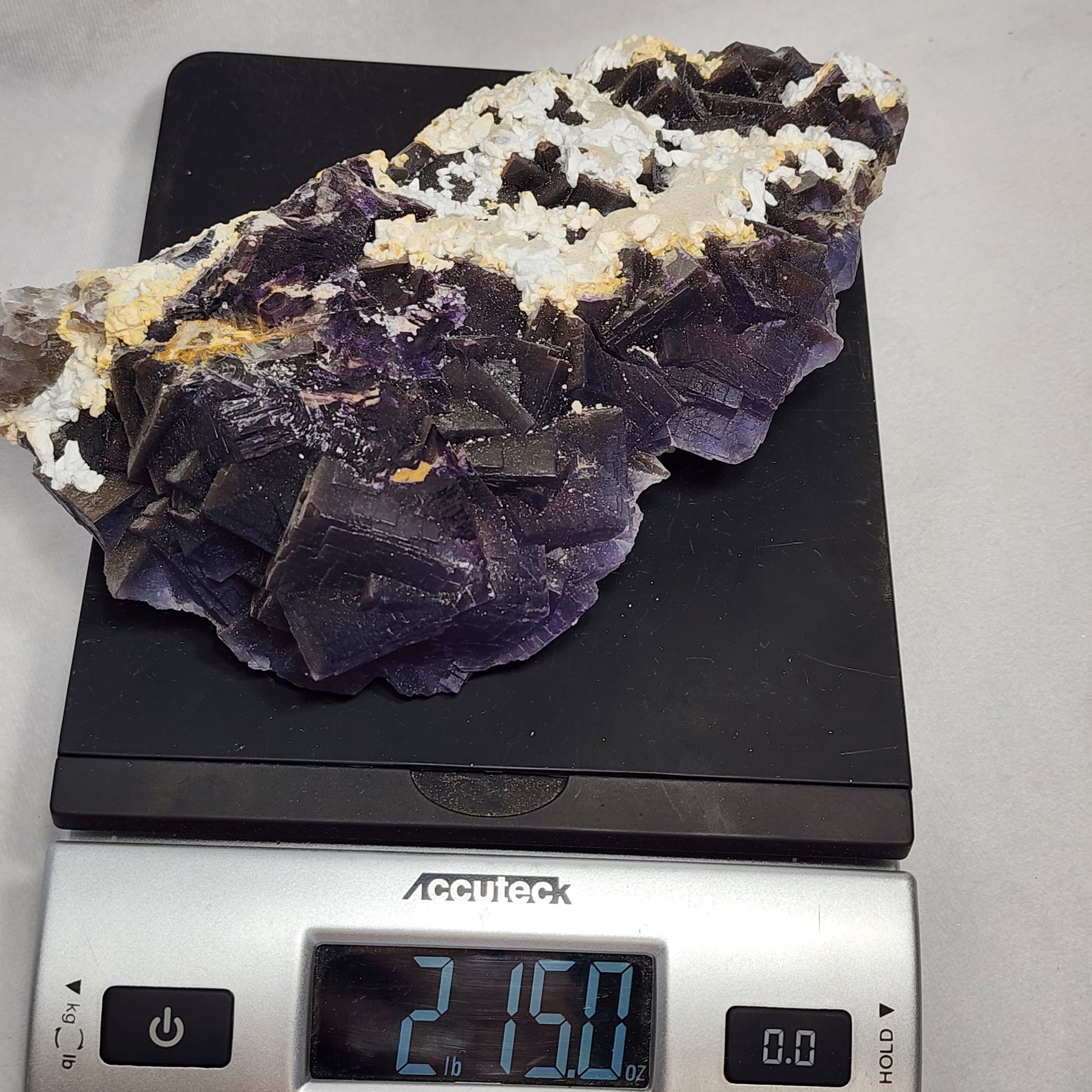 This Fluorite specimen is remarkable! It has many deep purple cubed layers as well as small Dogtooth Calcite around it!