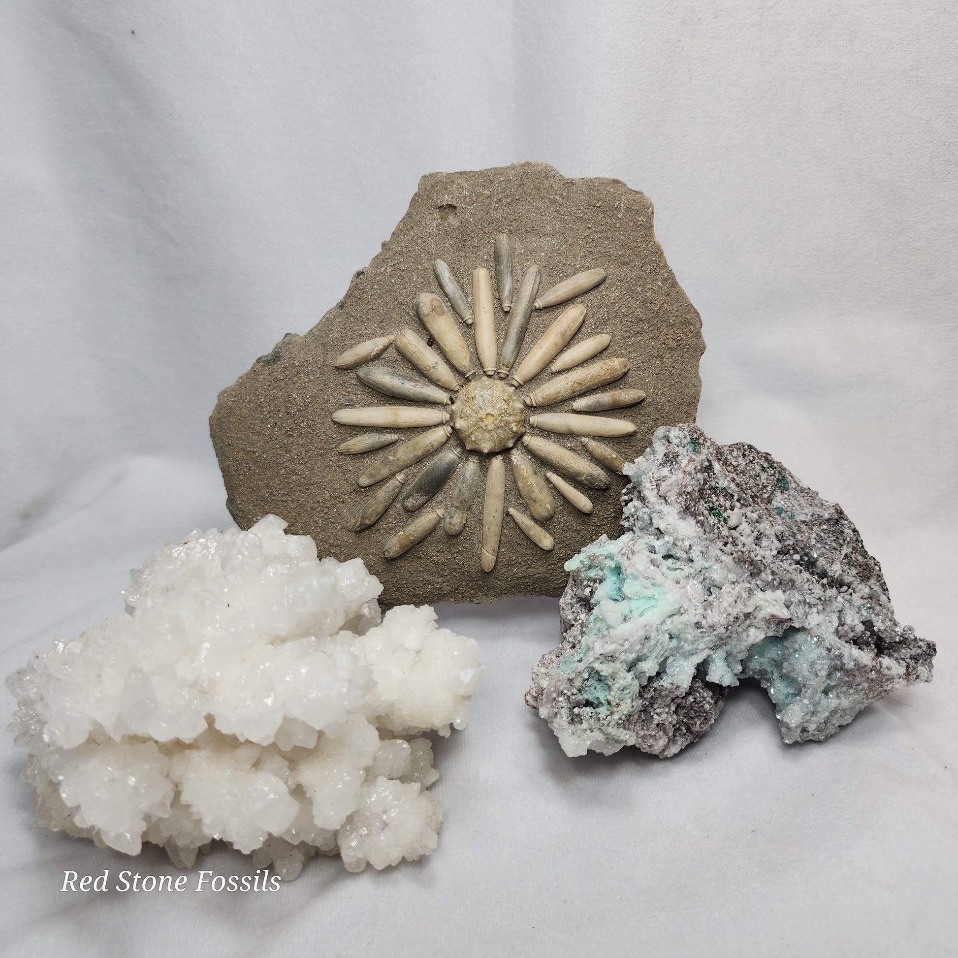 Pair with our white aragonite cluster and Moroccan sea urchin for a stunning display!