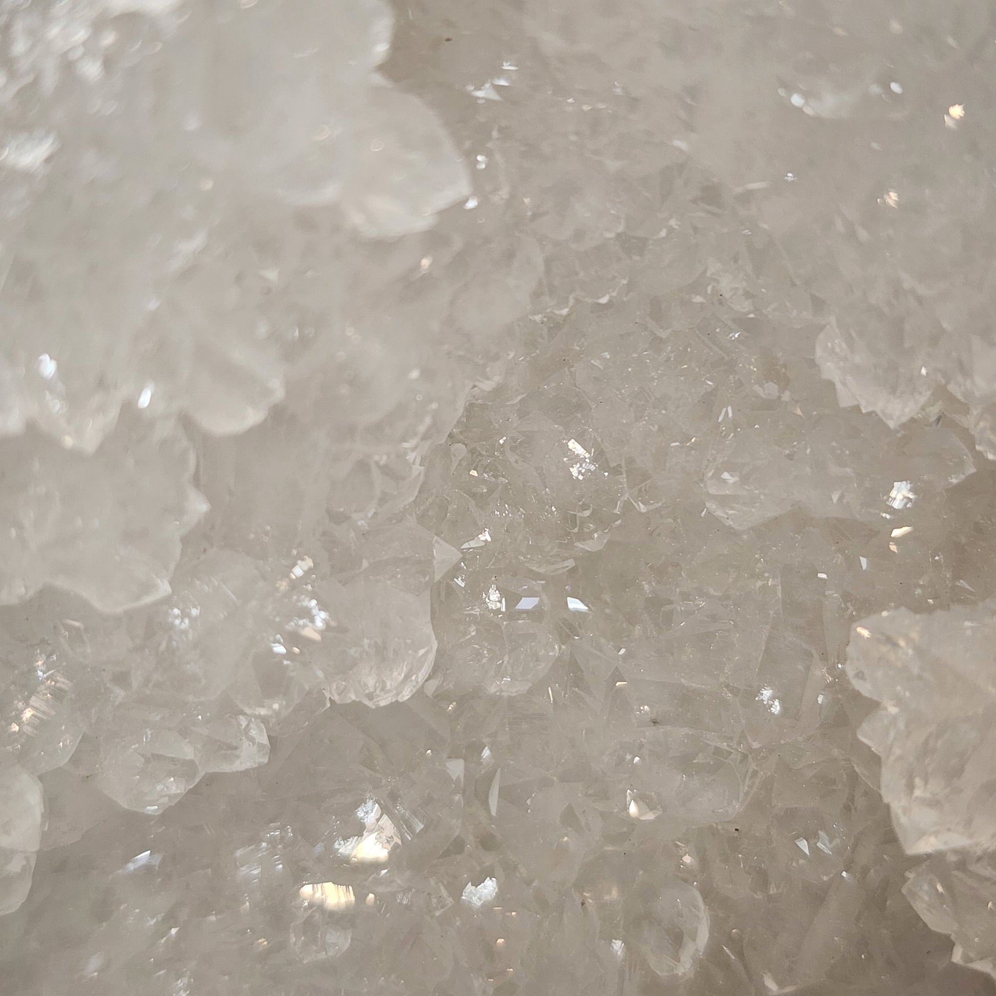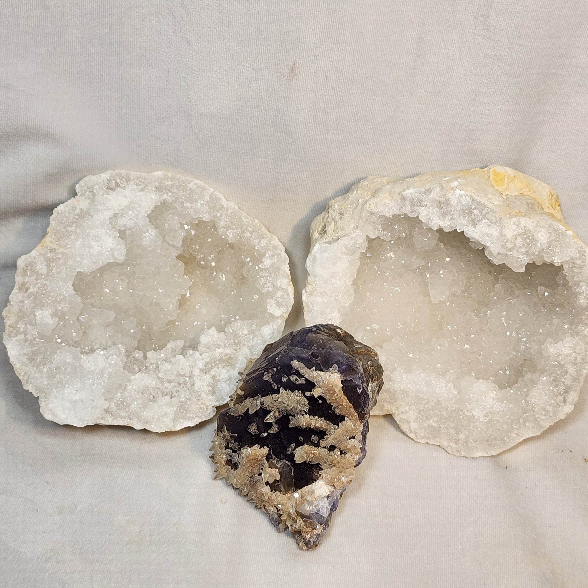This gorgeous geode pair is split open to show off the sparkling crystals inside! These crystals are stunning and add such an elegant touch to any display!