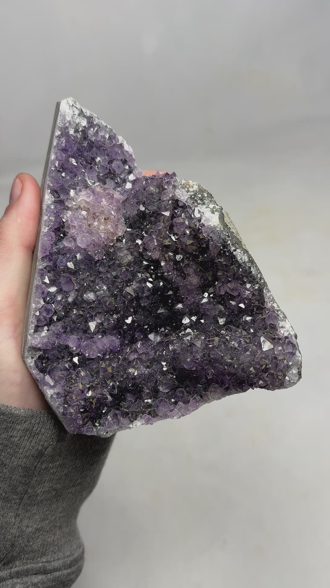 Amethyst Cut Base from Uruguay. The deep purple crystal clusters are just stunning as they sparkle and shine. The flat base is perfect to help this stand up for display!