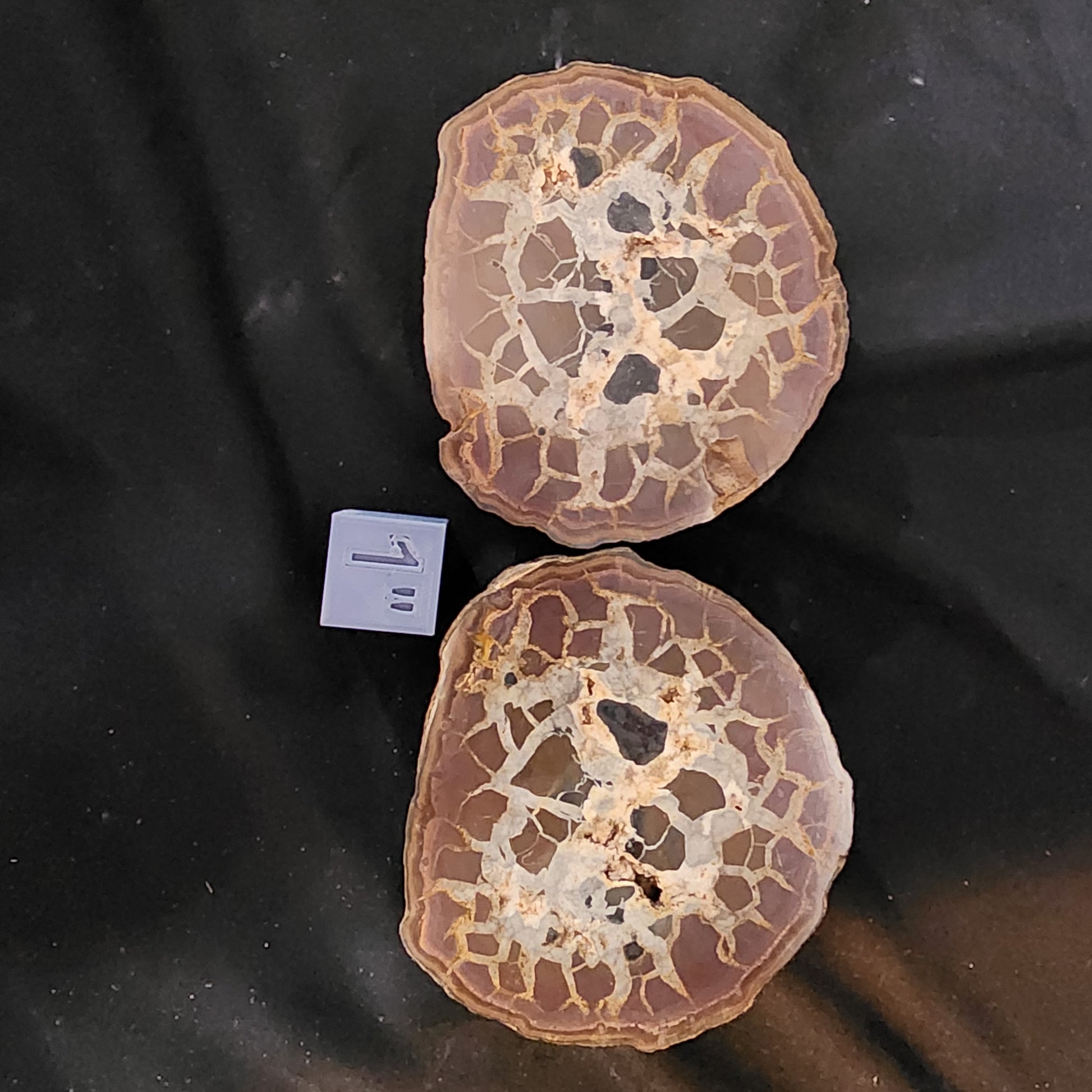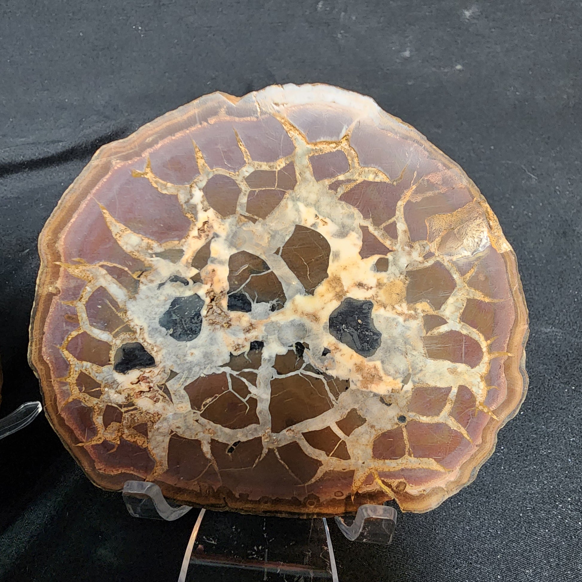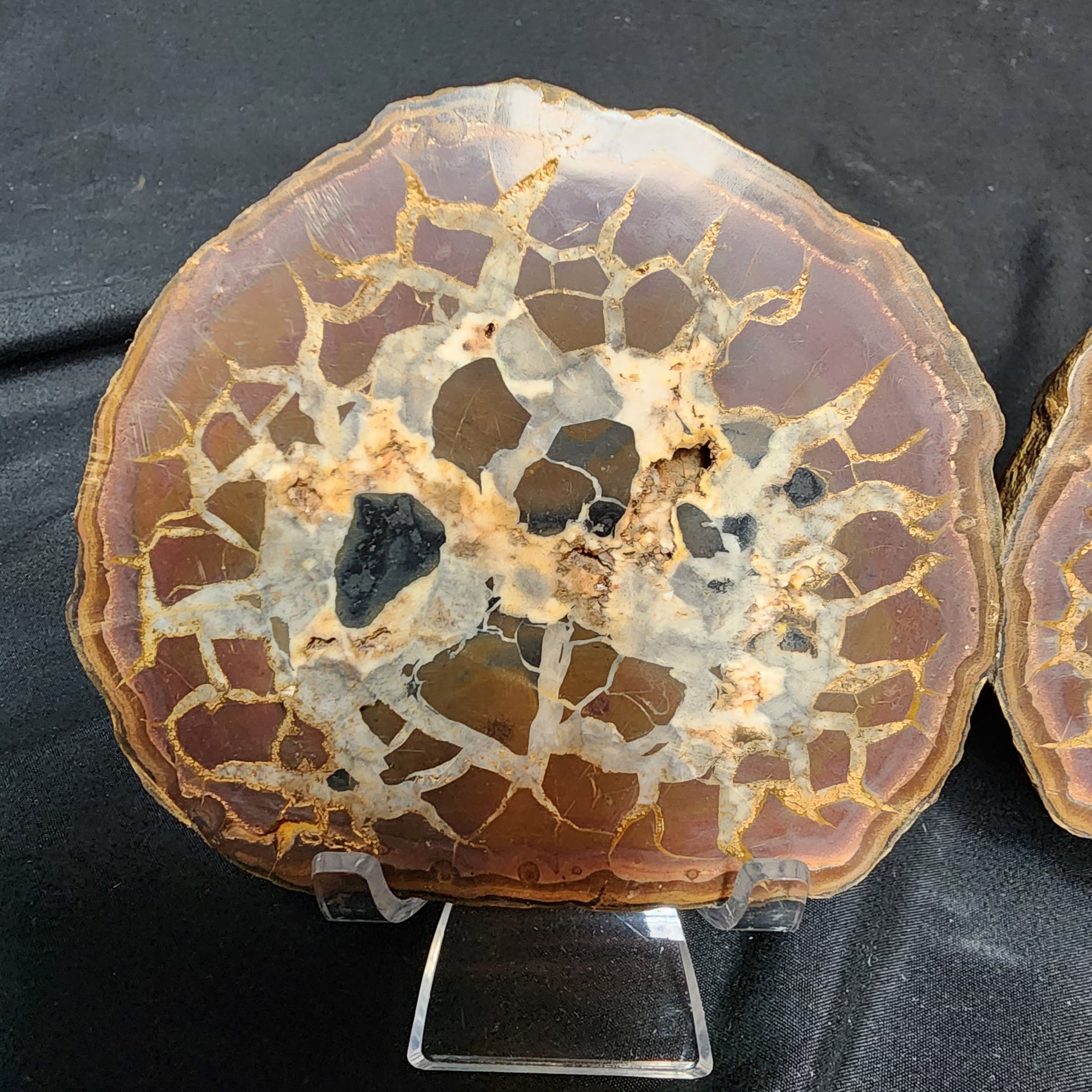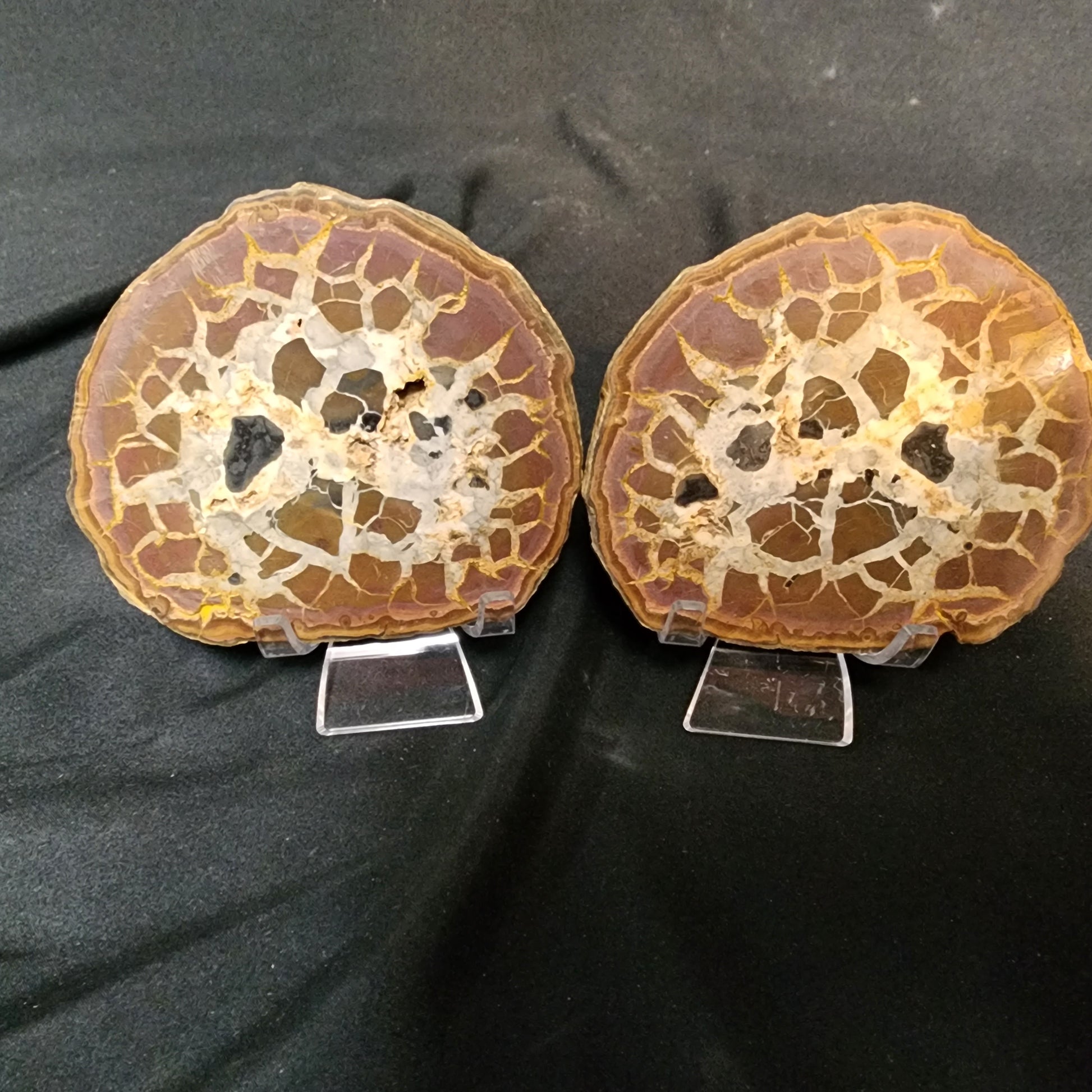 Split Polished Septarian Nodules make a very interesting display piece! Display them side by side for a great conversation starter! Pair with our Selenite Lamps, Aragonite bowls or even our Calcite for a gorgeous display!