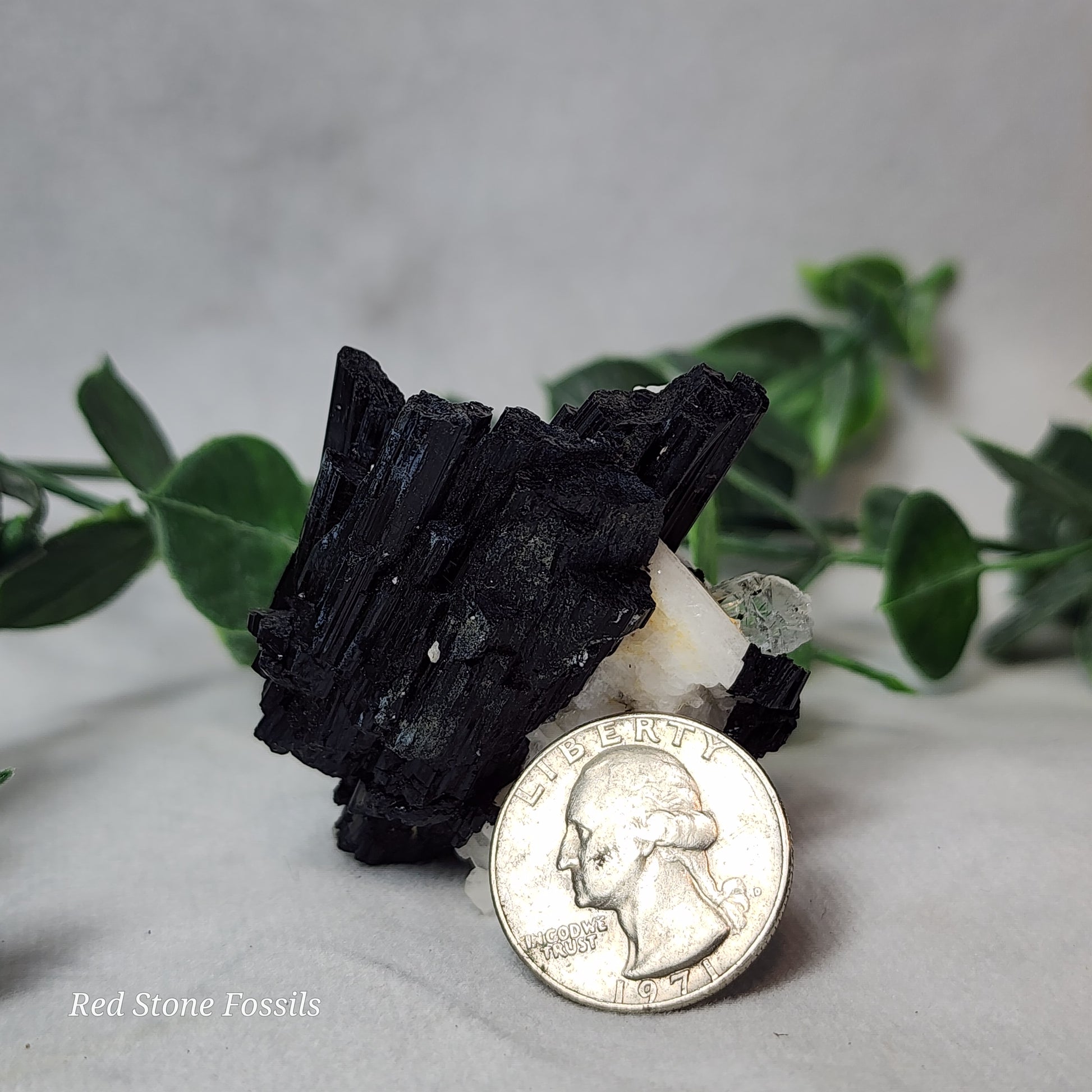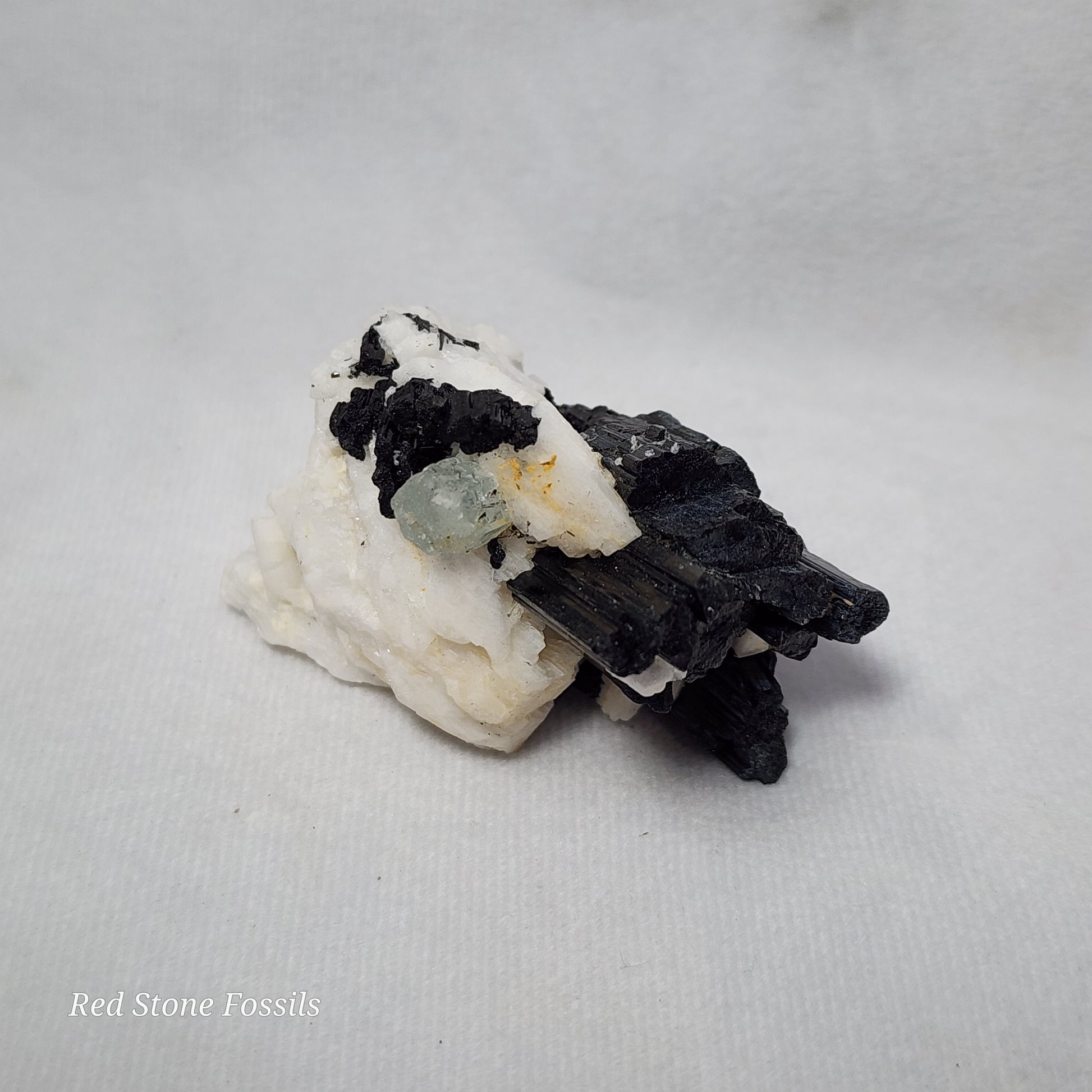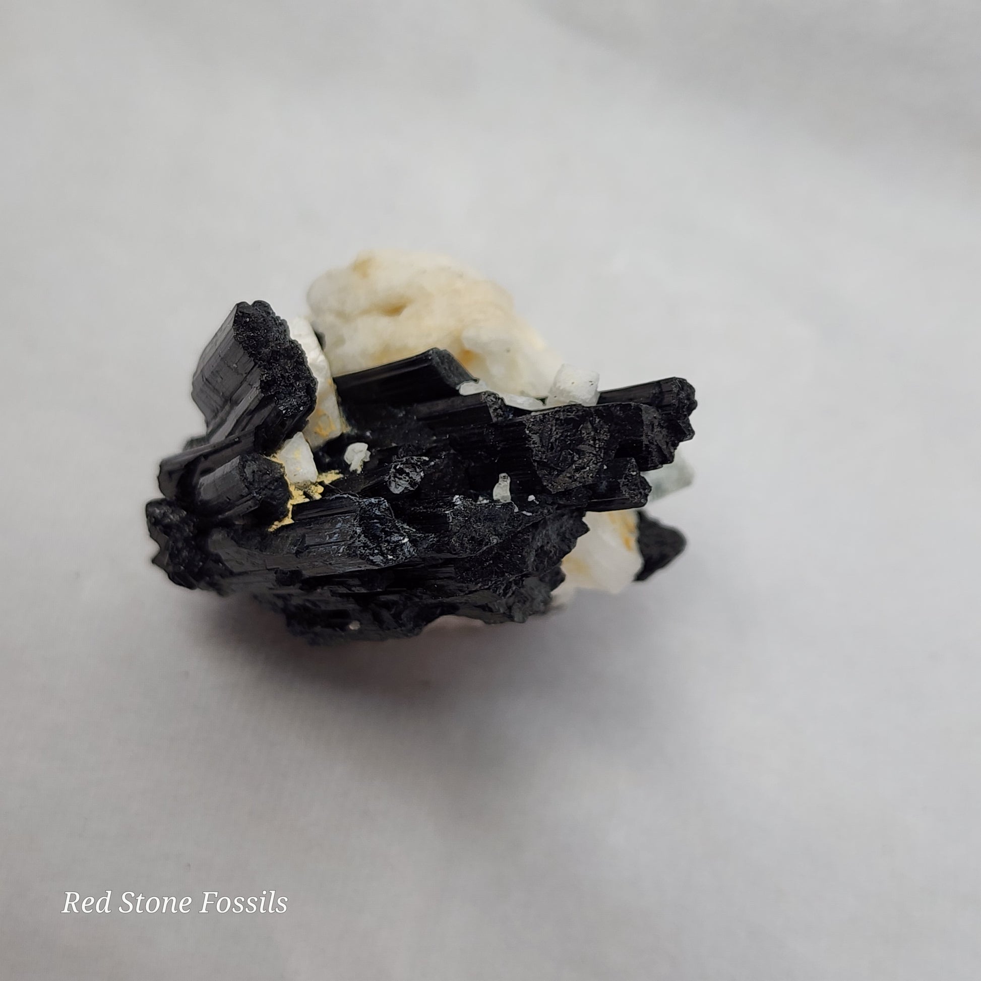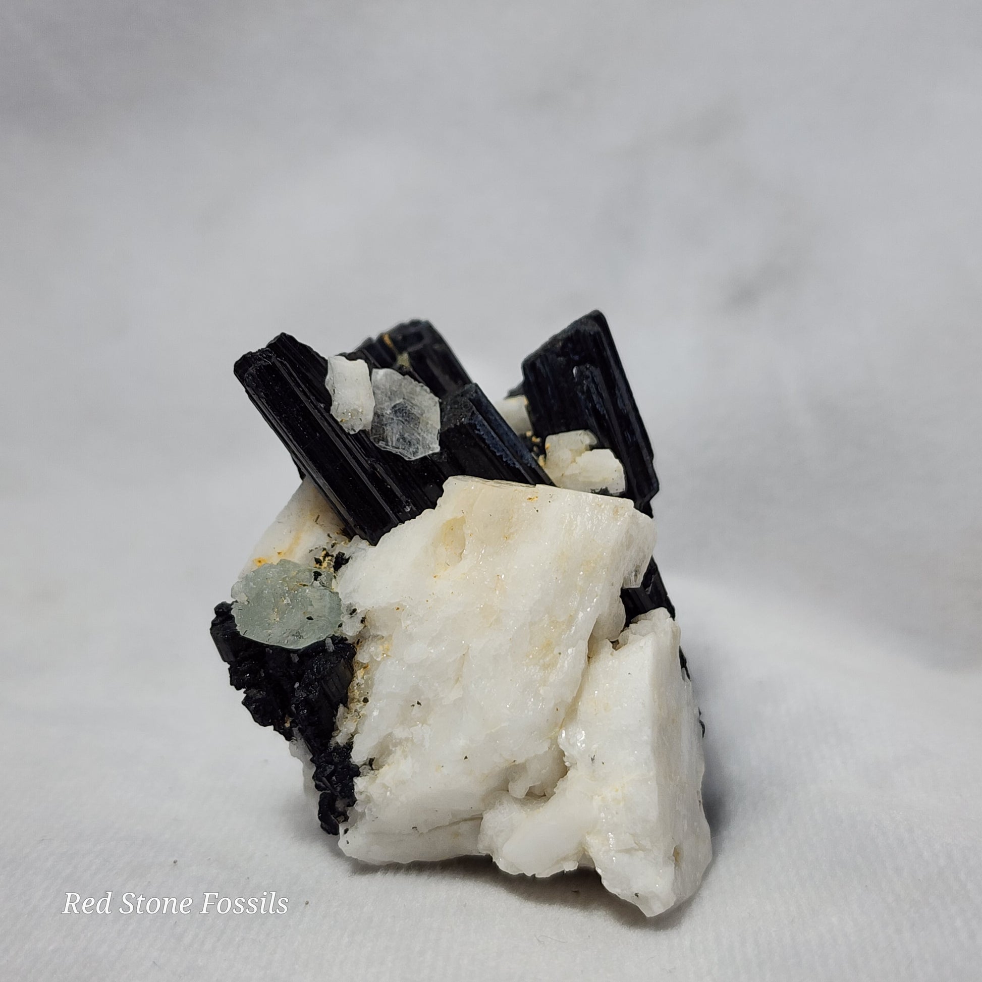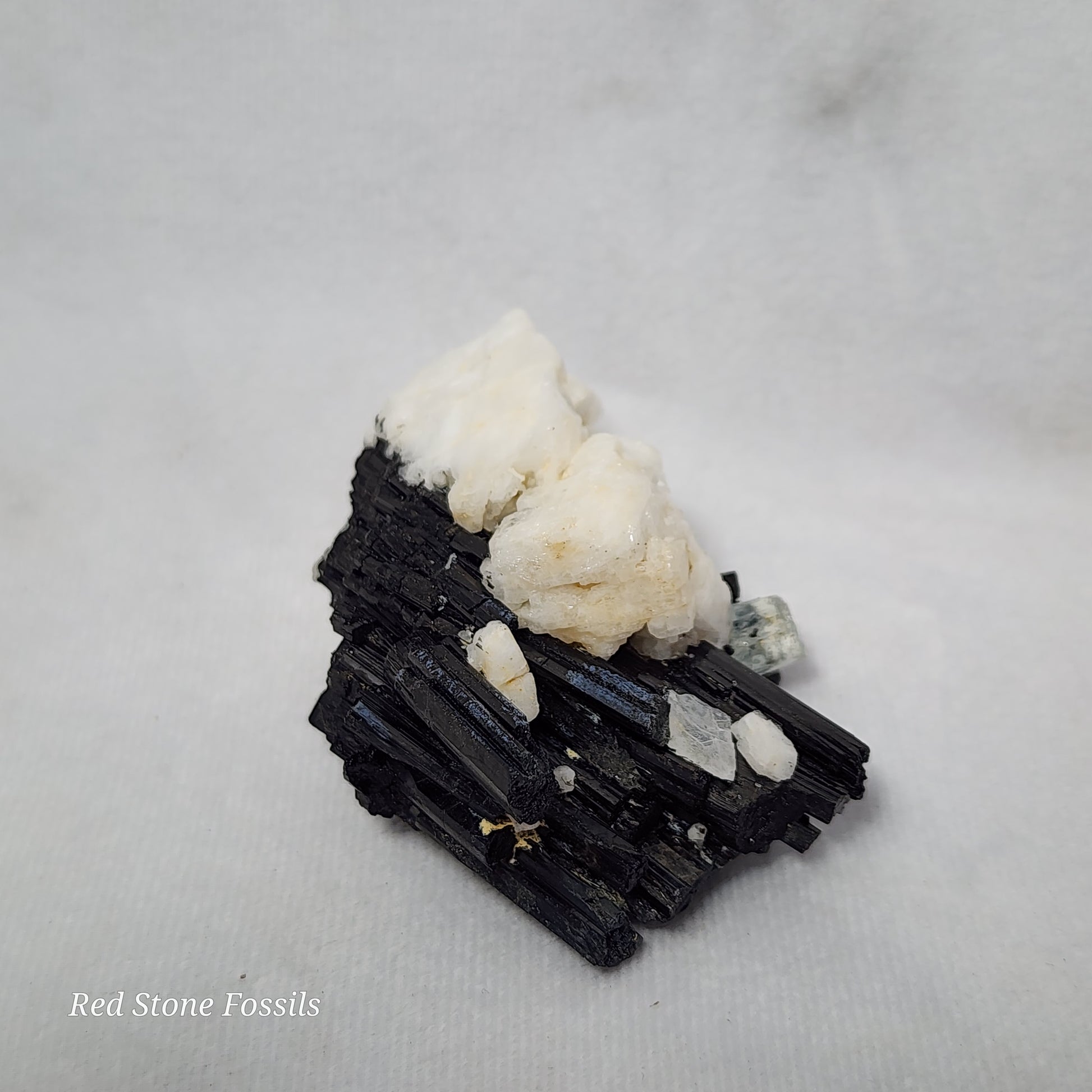 This amazing specimen is raw Tourmaline on Albite and Quartz. The spectacular black and white contrast catches the eye and adds such an elegant feature to any room!