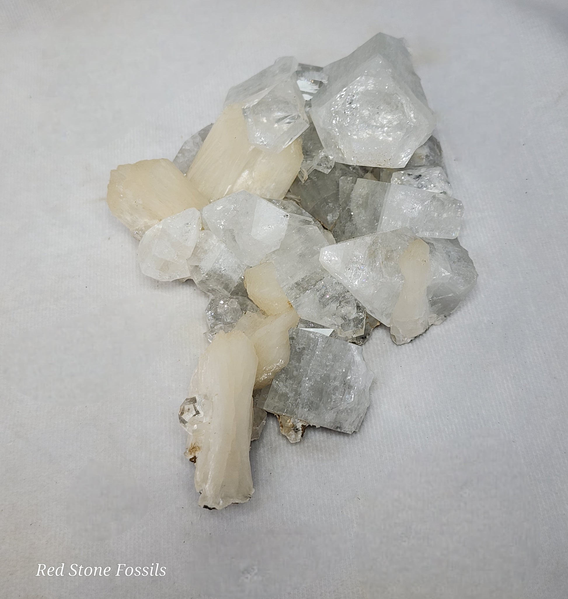 This special specimen from India has light peach Stilbite on a bed of gorgeous, sparkling Apophyllite crystal points!