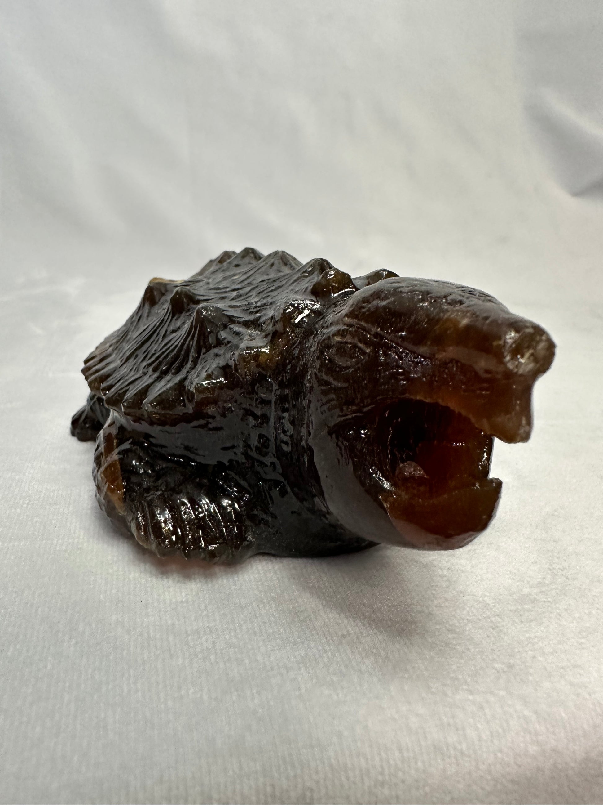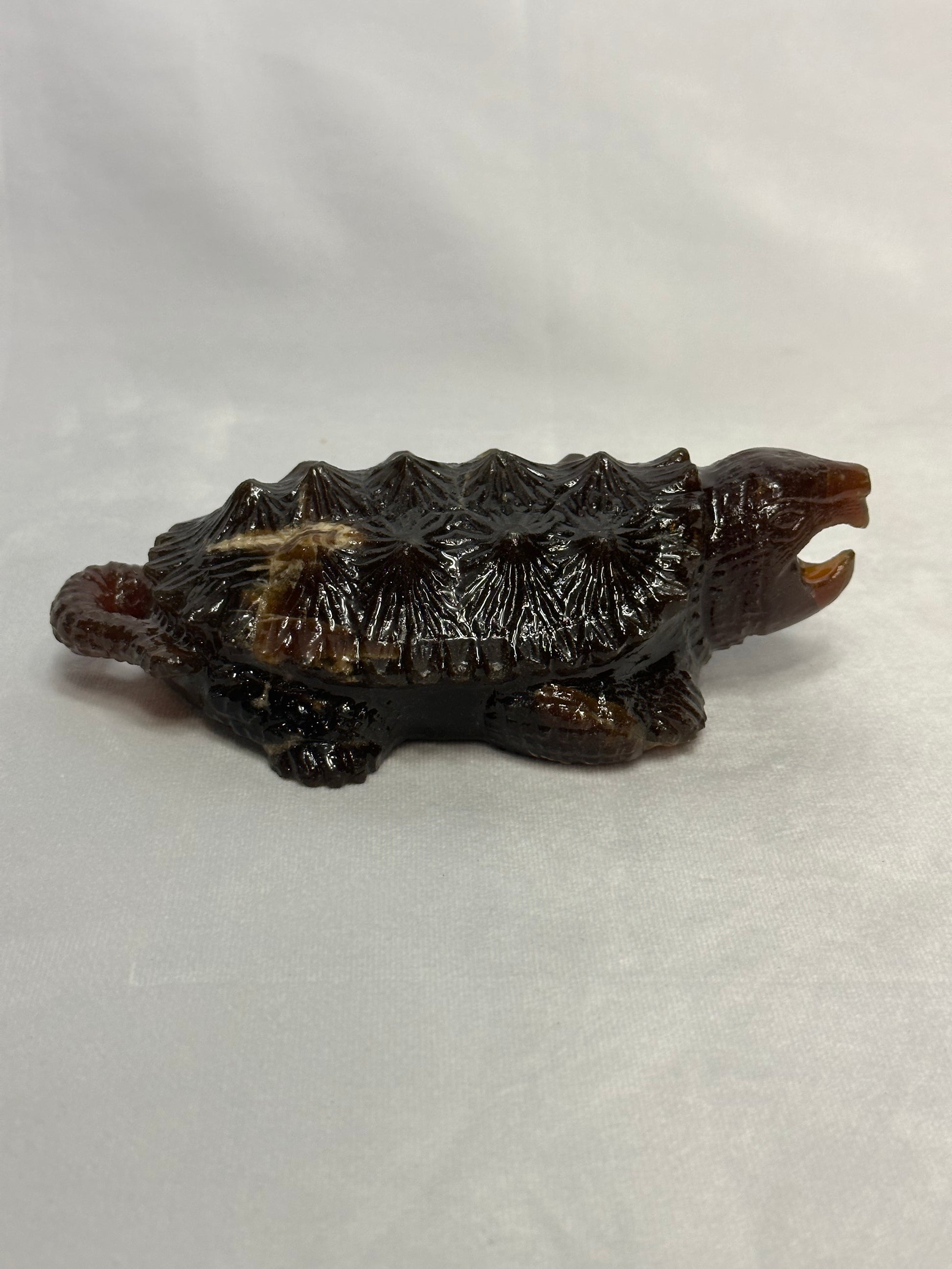 This is a high-quality specimen of Sumatran Amber sculpted to resemble a Snapping Turtle.