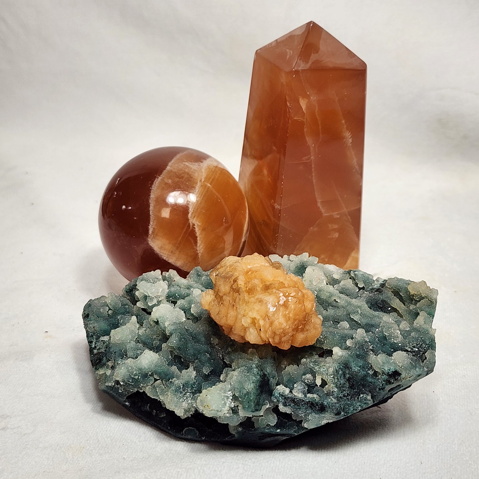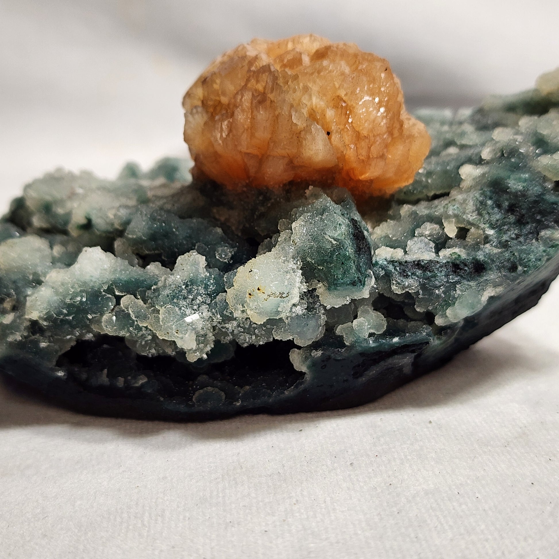 Stilbite belongs to the zeolite family of minerals and is often found with other minerals such as chalcedony, calcite, apophyllite, etc.