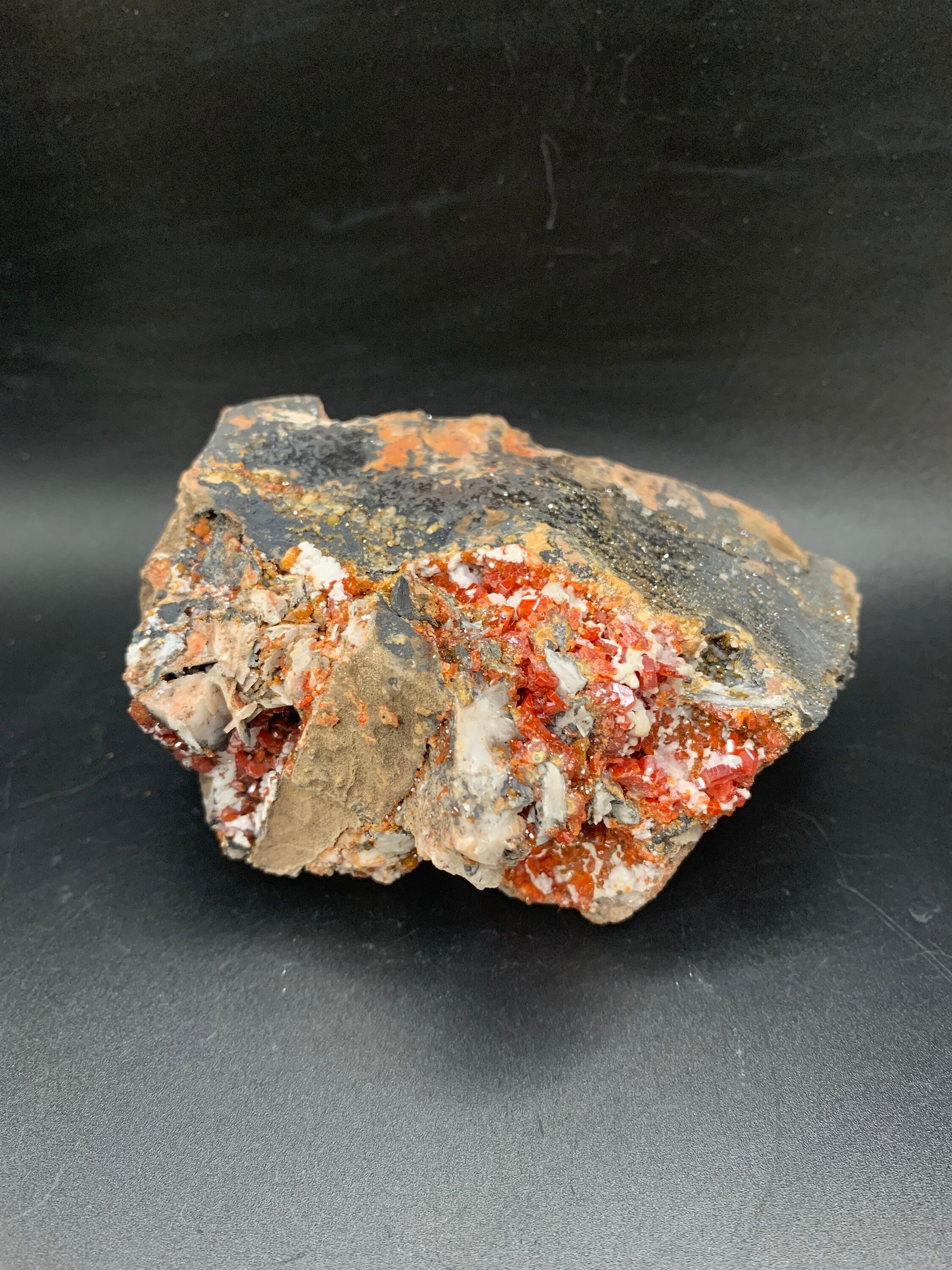This particular piece is so stunning with the bright red vanadinite complimented by dazzling black barite crystals!