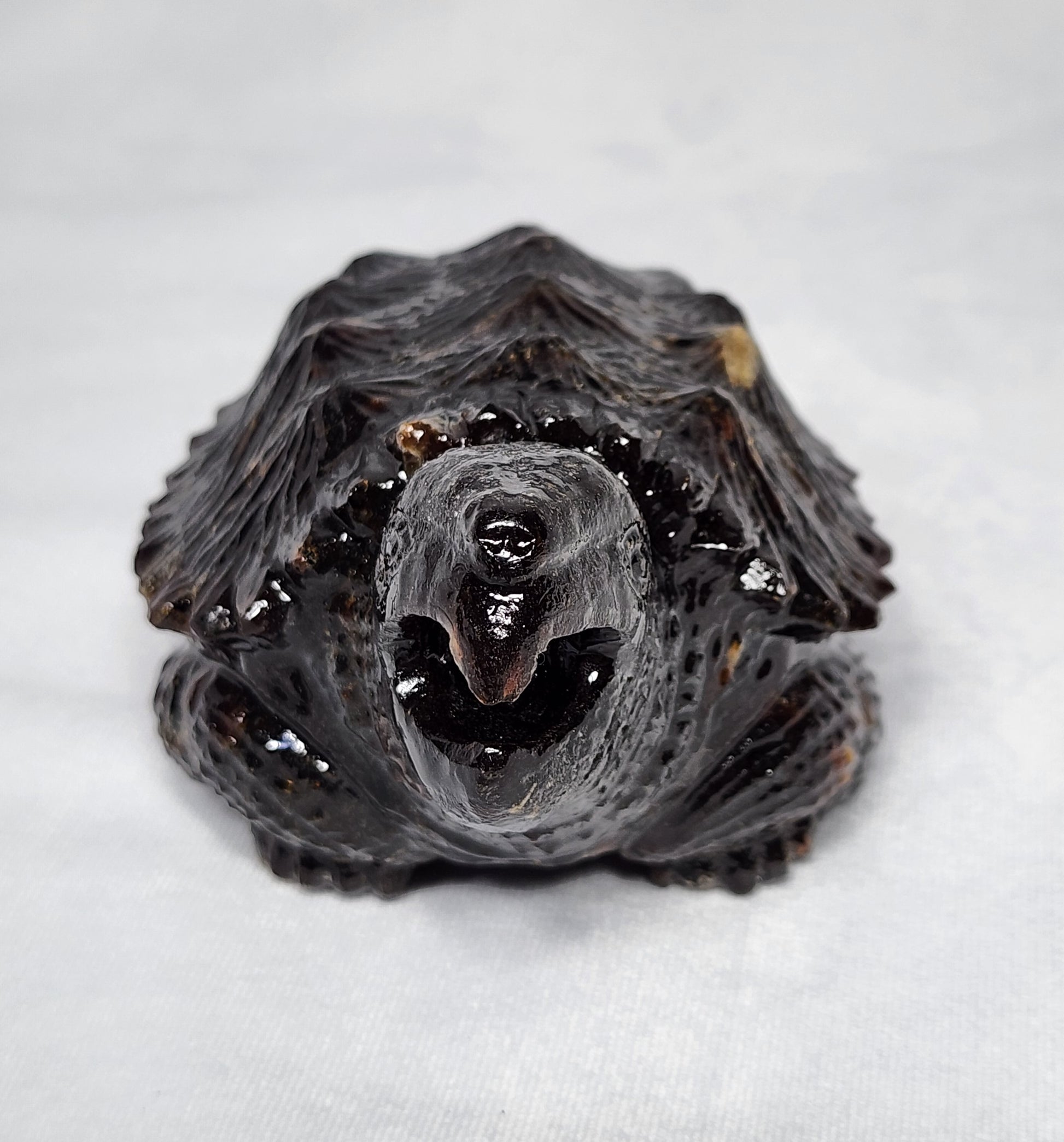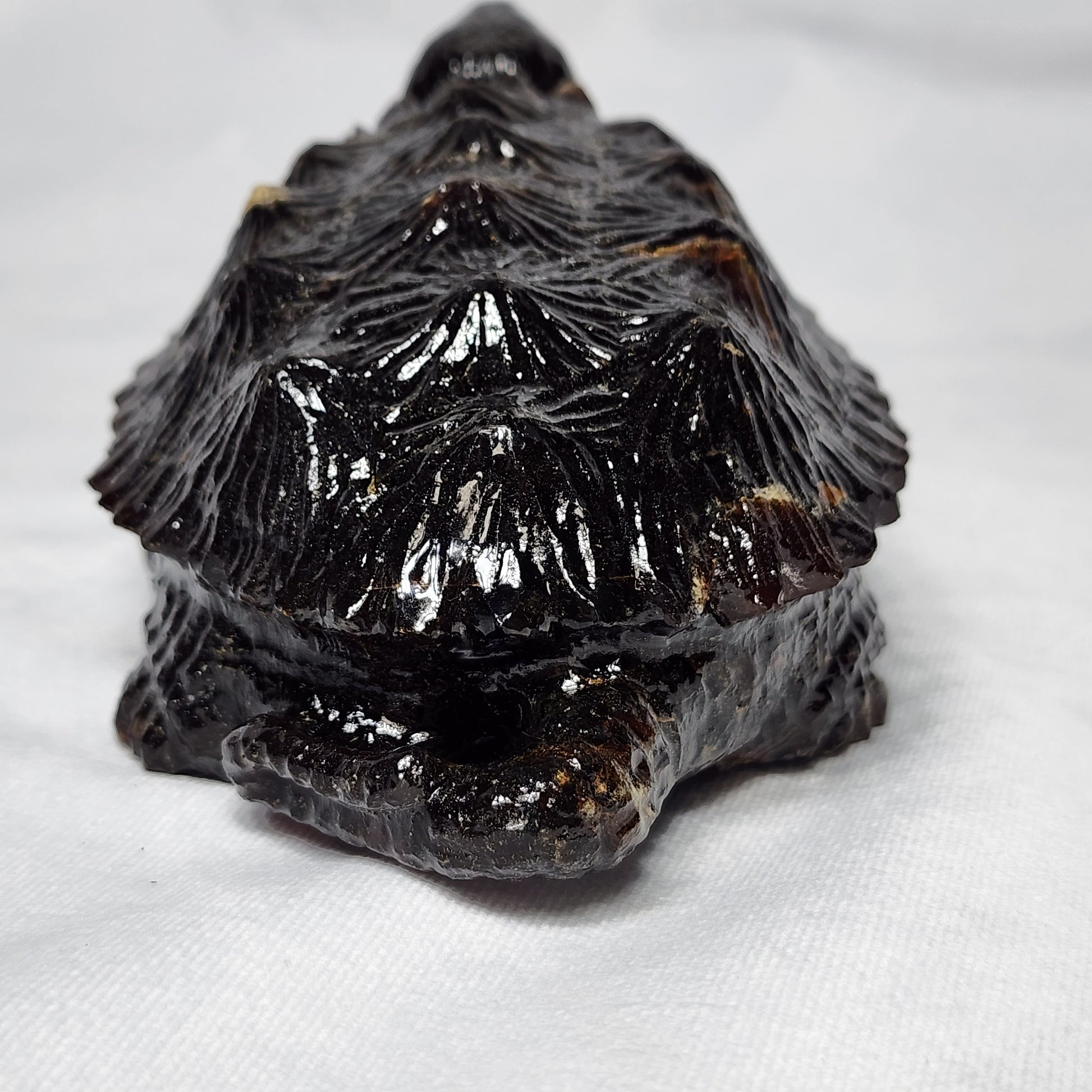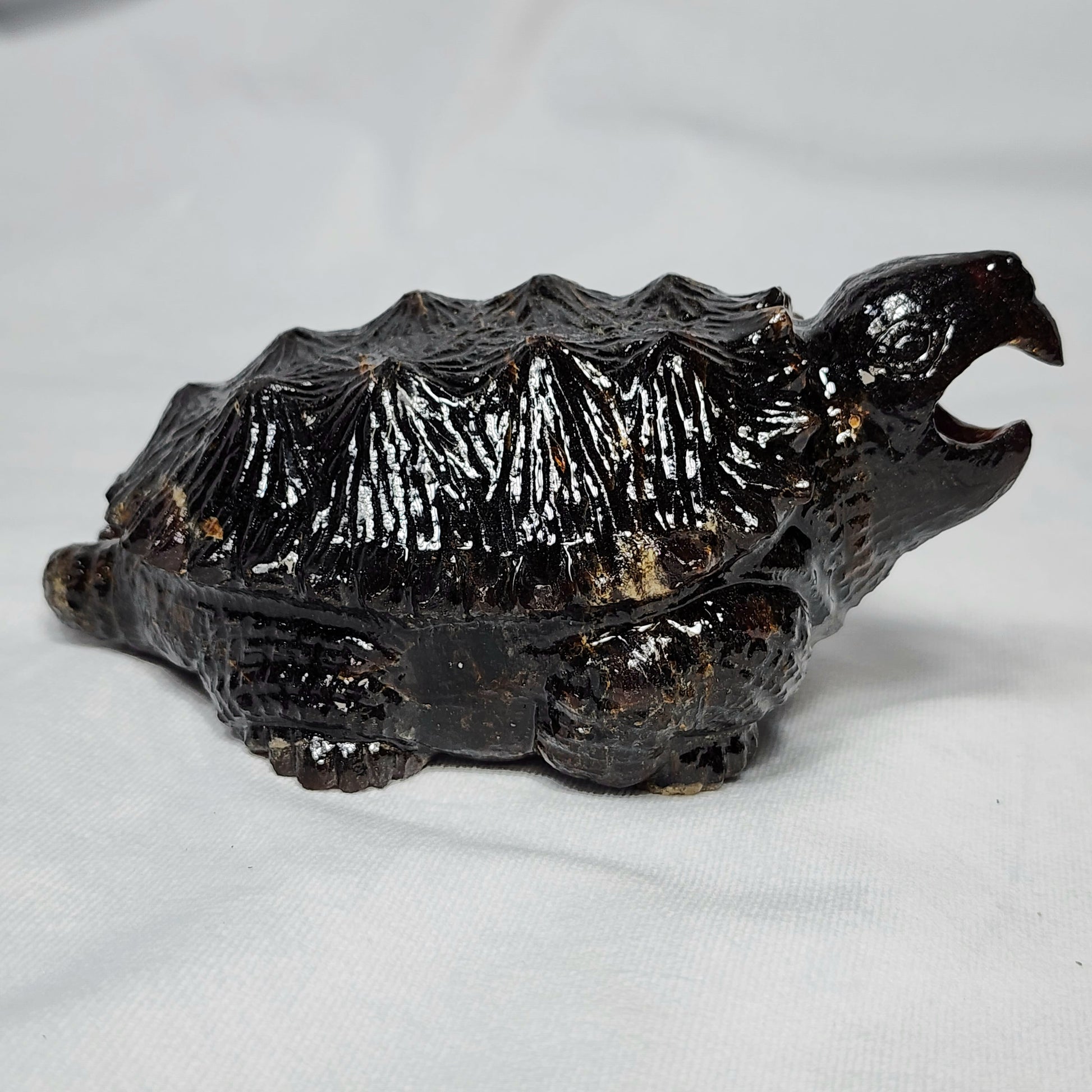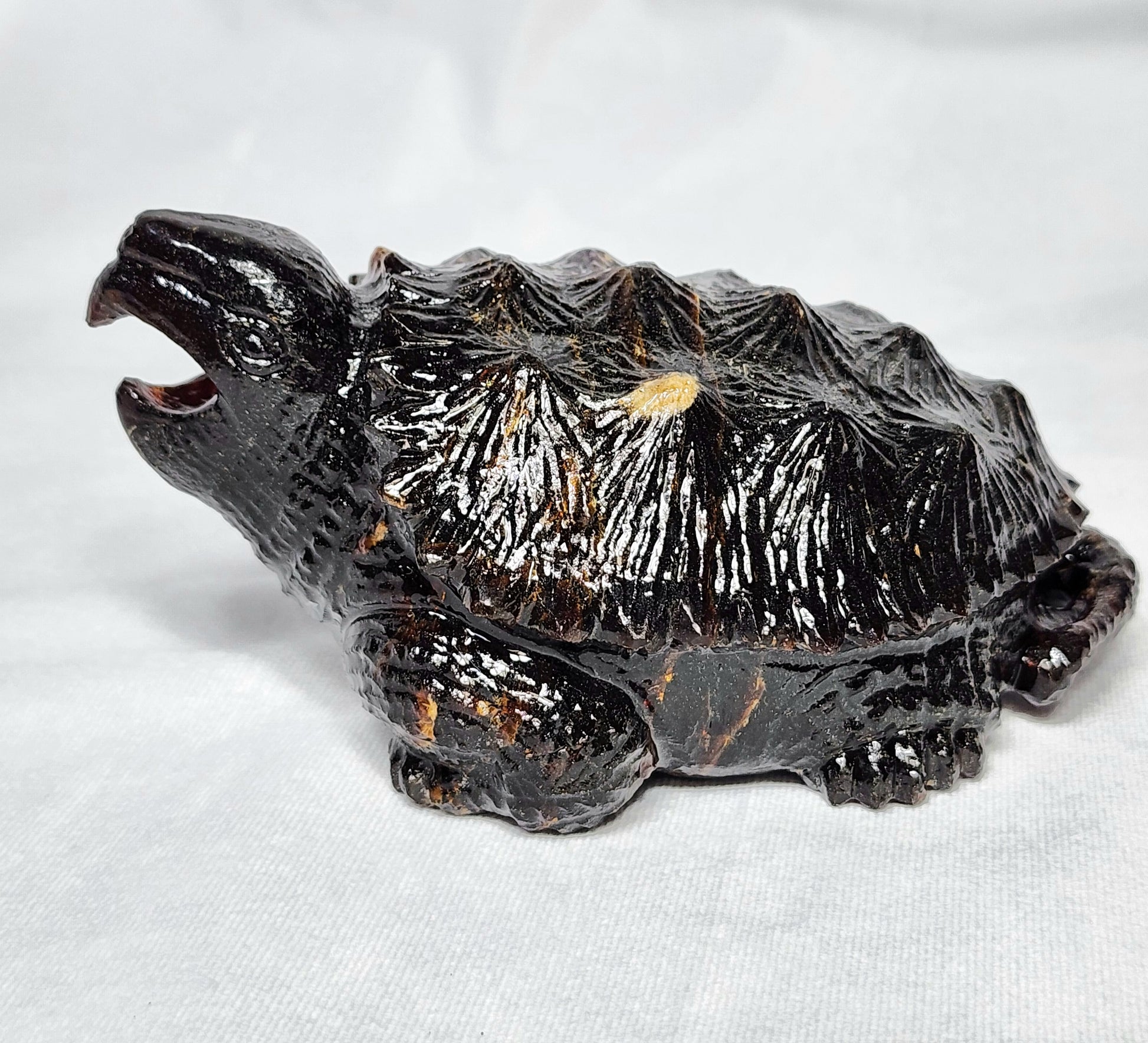This is a high-quality specimen of Sumatran Amber sculpted to resemble a Snapping Turtle.