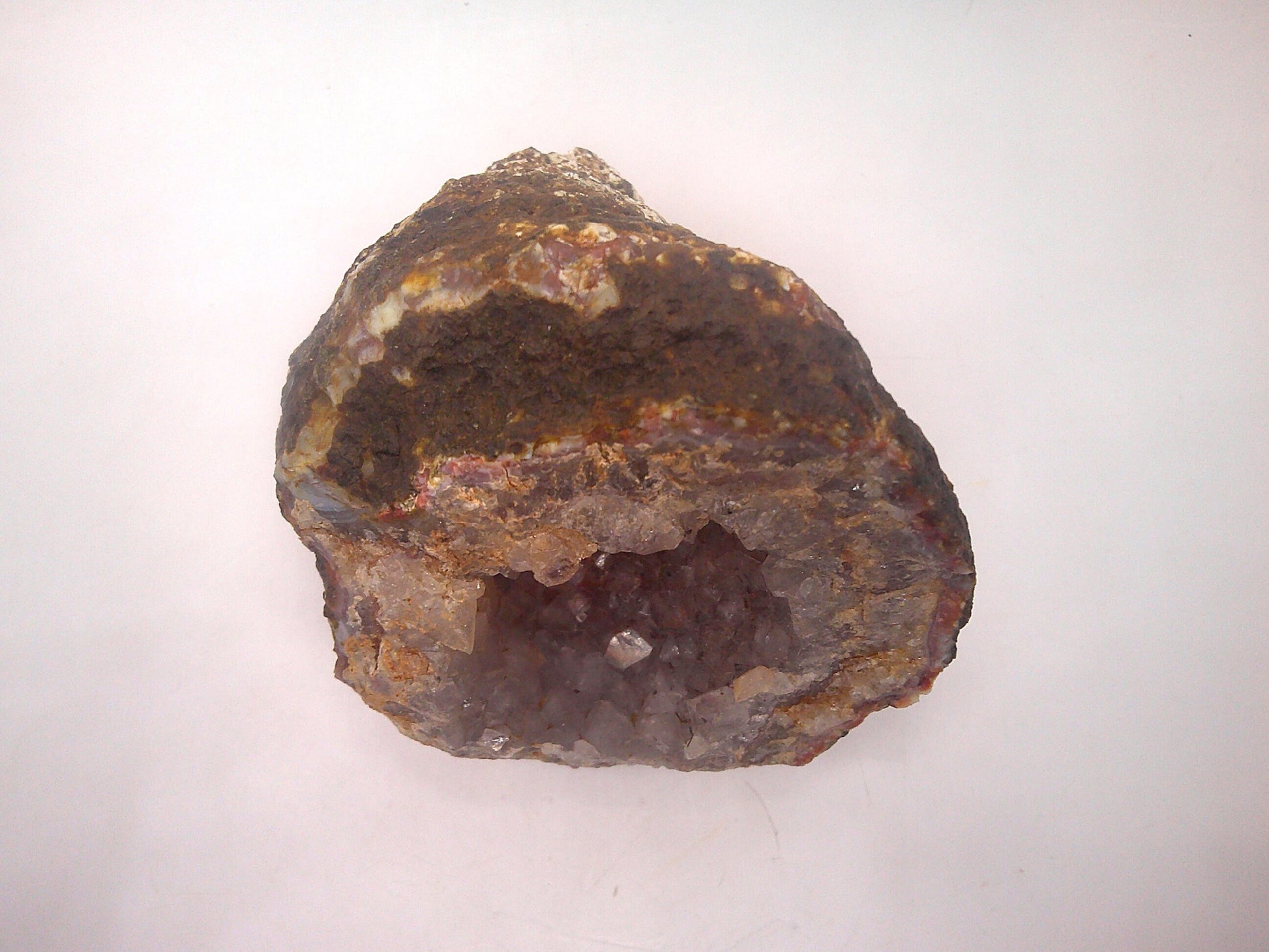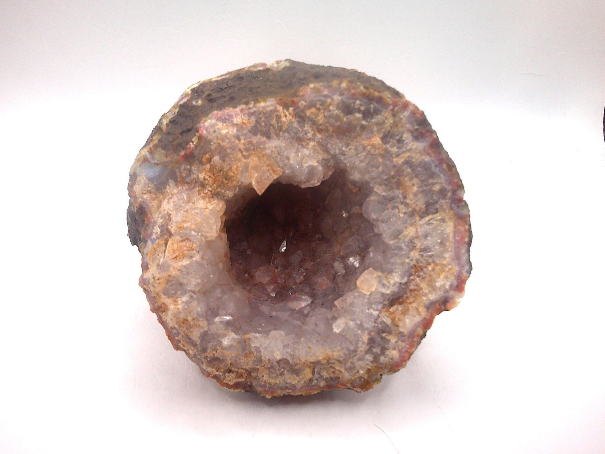 This geode has fun colors and a unique cornucopia shape!