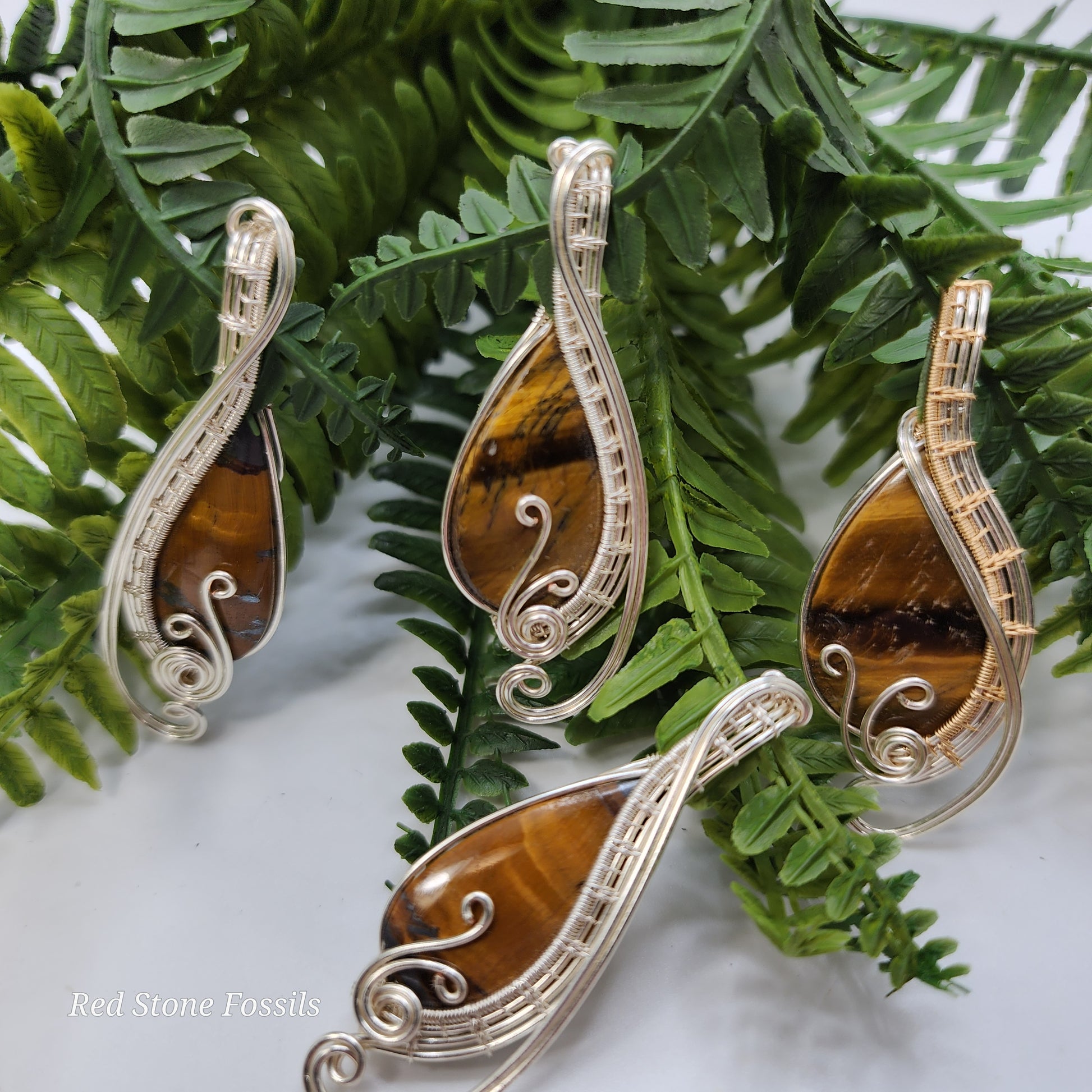 Tiger's eye has a golden to red-brown color and a silky luster! These Tiger Eye pendants make a gorgeous statement to any outfit!