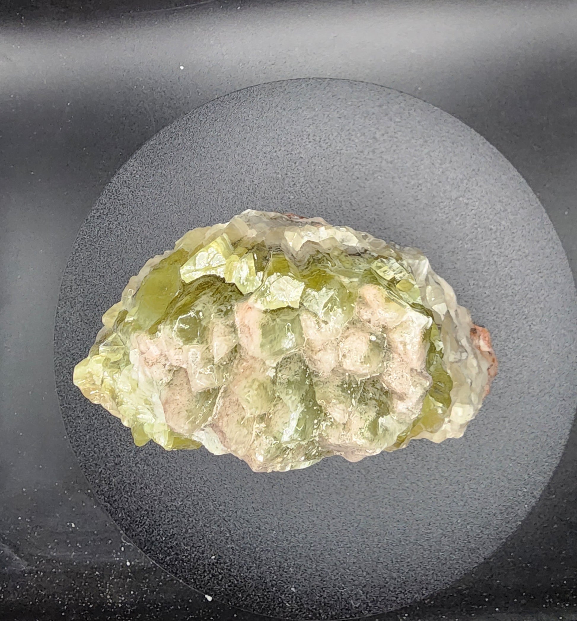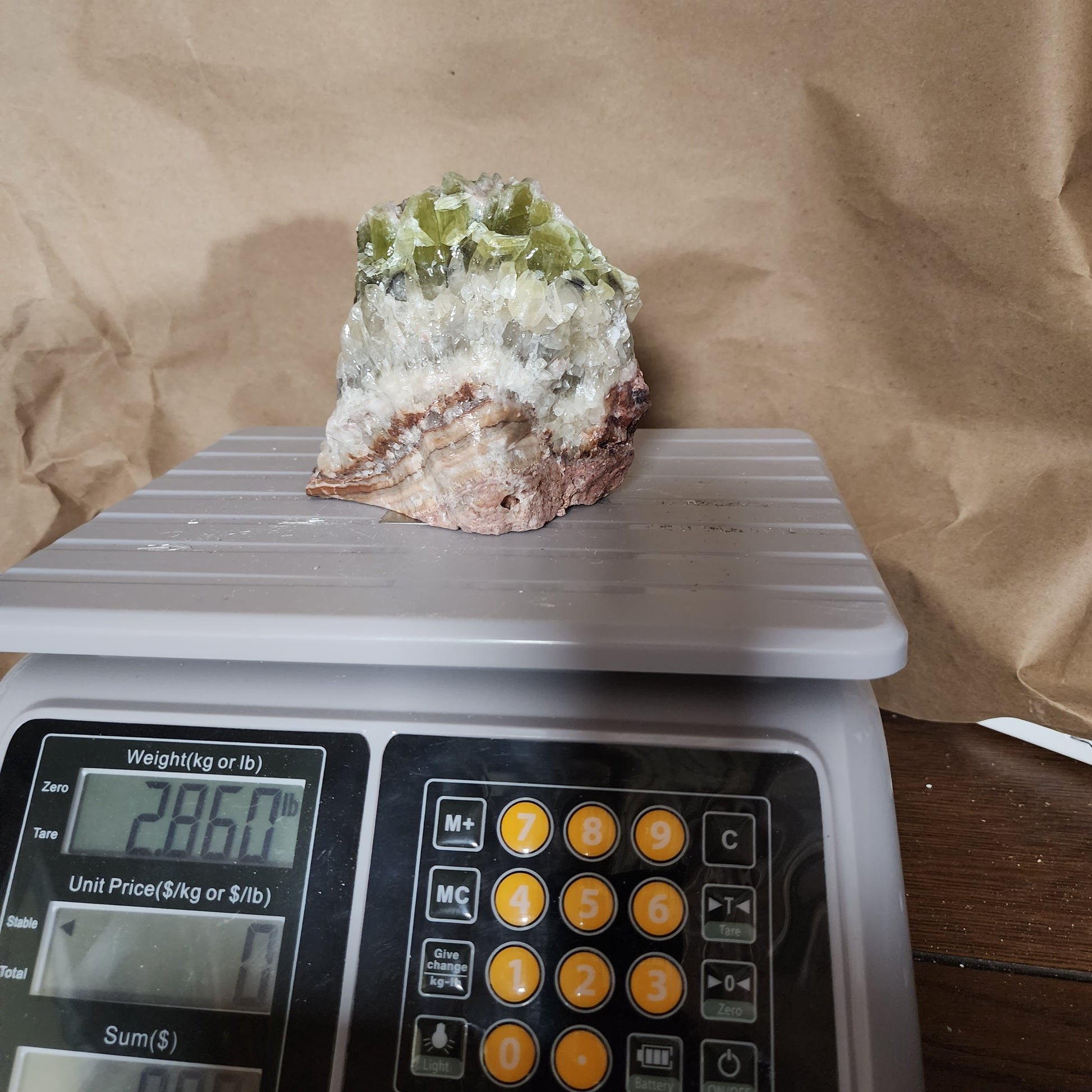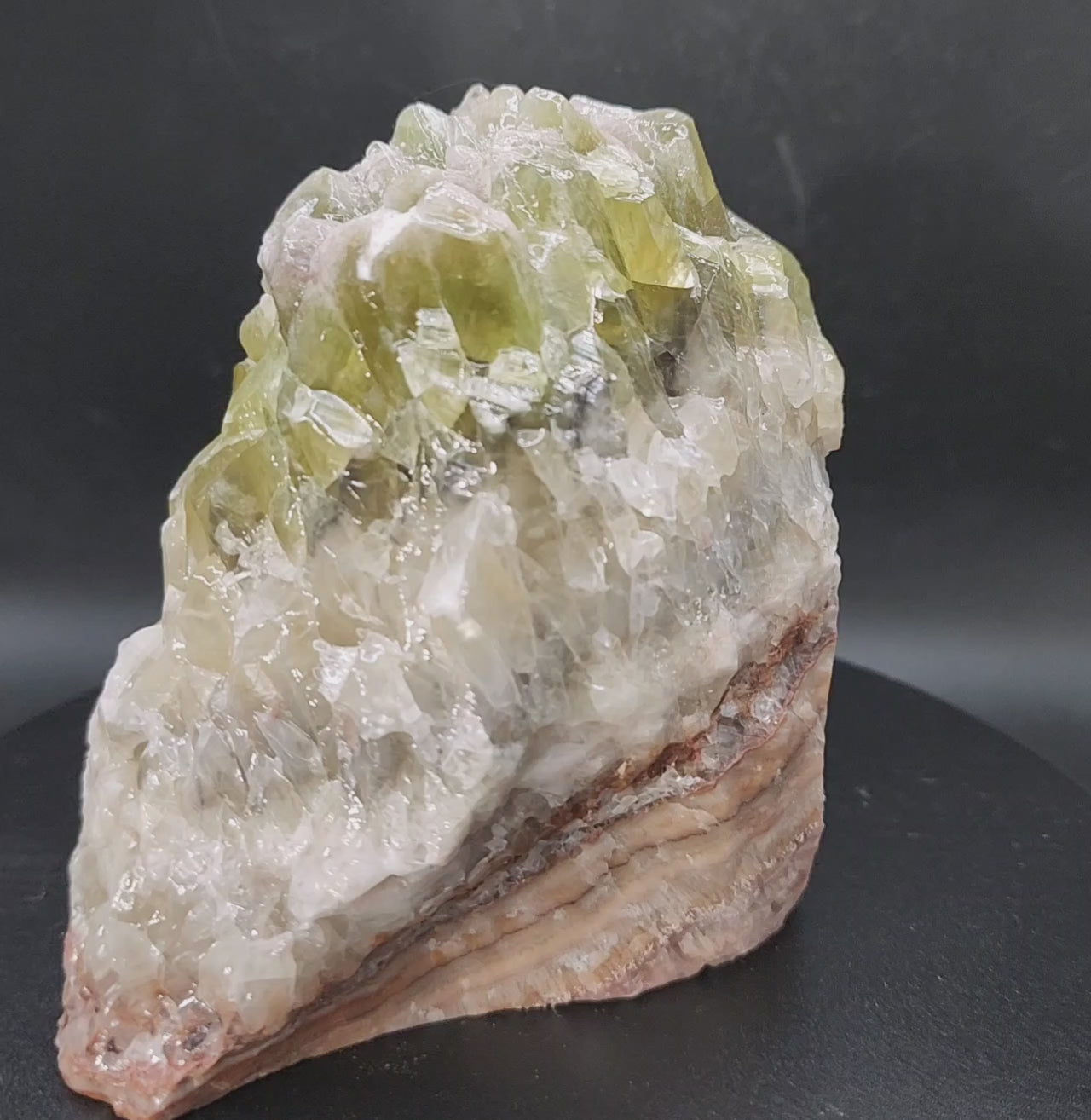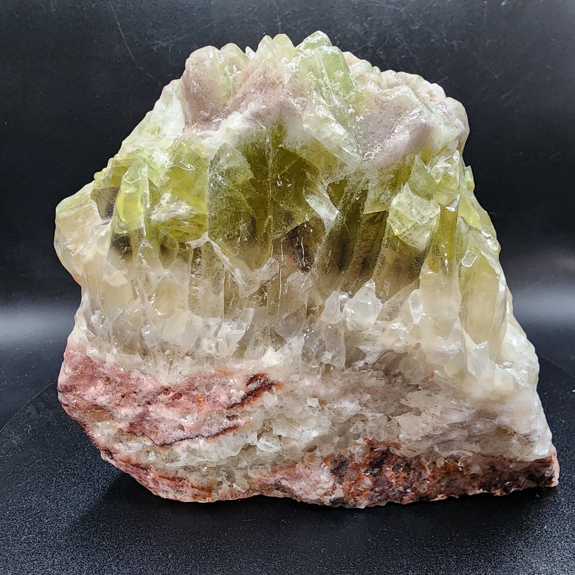 Beautiful Tri-Colored Calcite from Mexico. Each layer has a different, vibrant color from red, white, and green! Display this piece where it can be seen and admired!