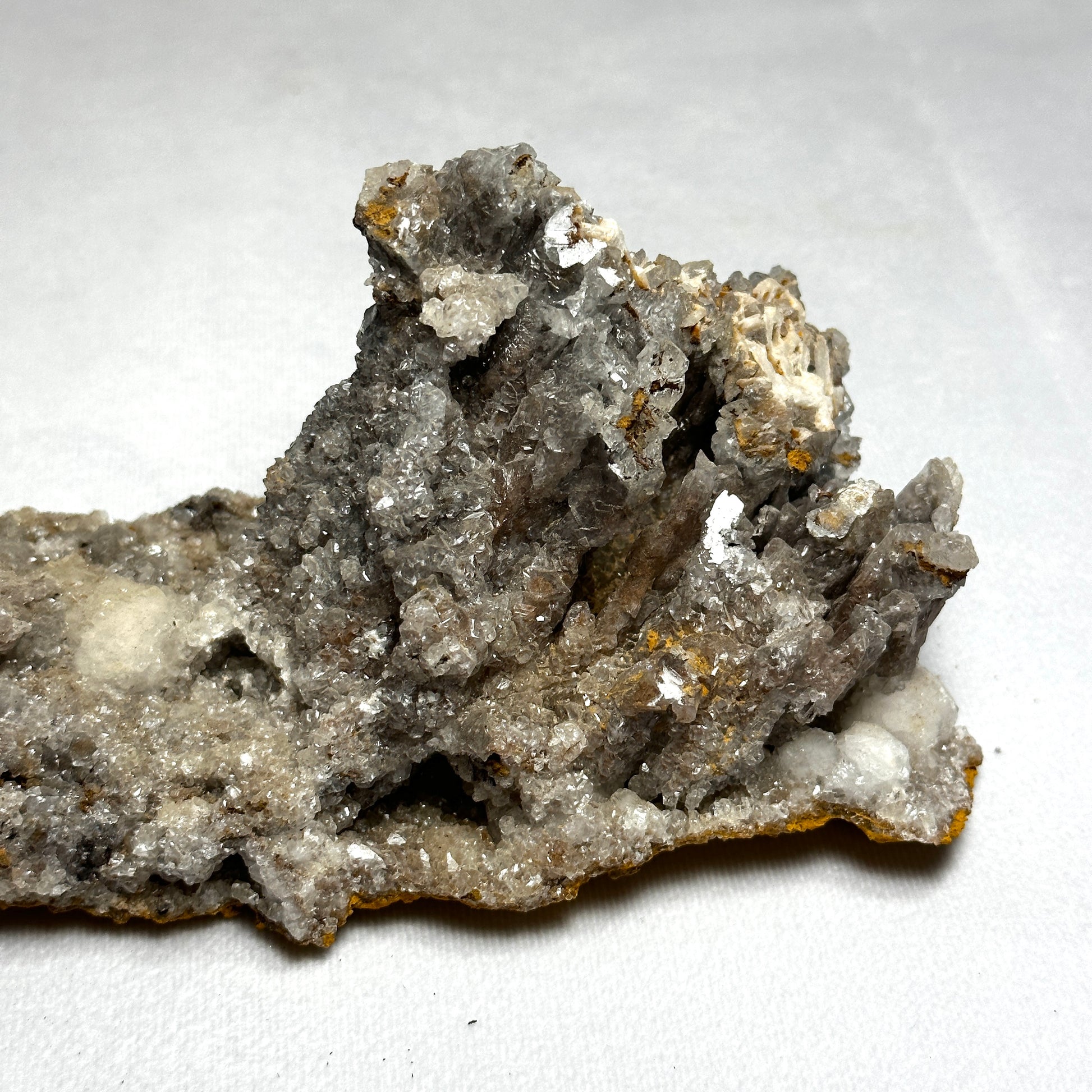 This is a gorgeous Cave Calcite Cluster from Morocco. The black and white coloring, the perfect sparkles and fun detail on this specimen is eye-catching!